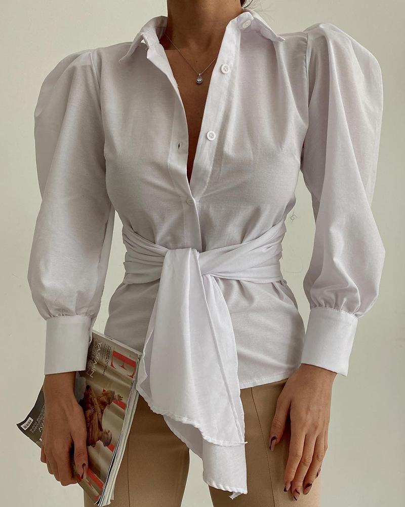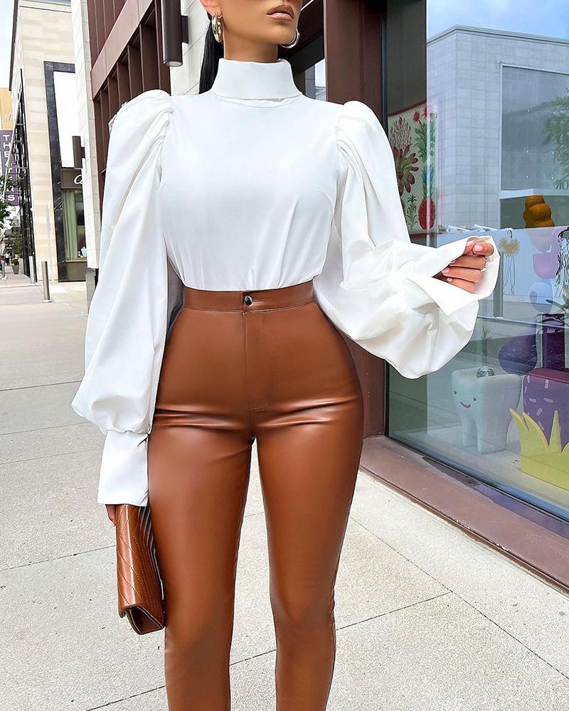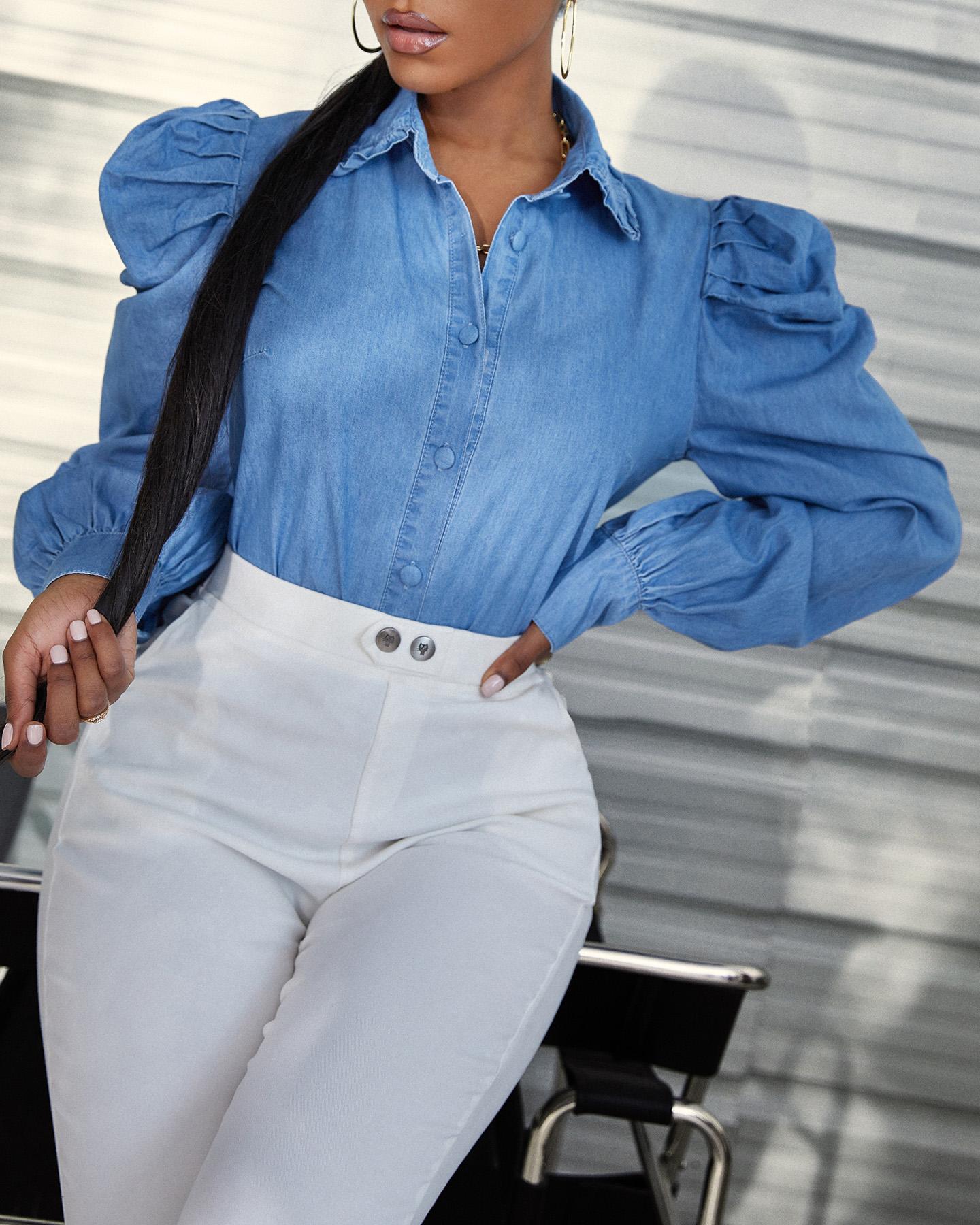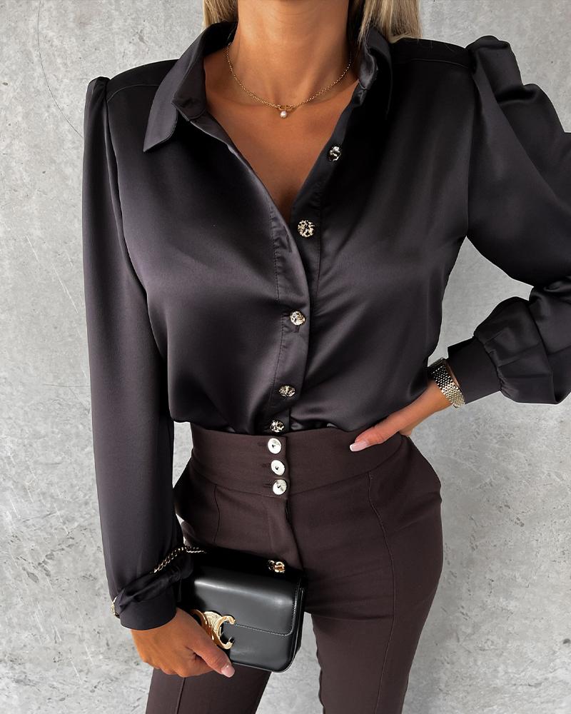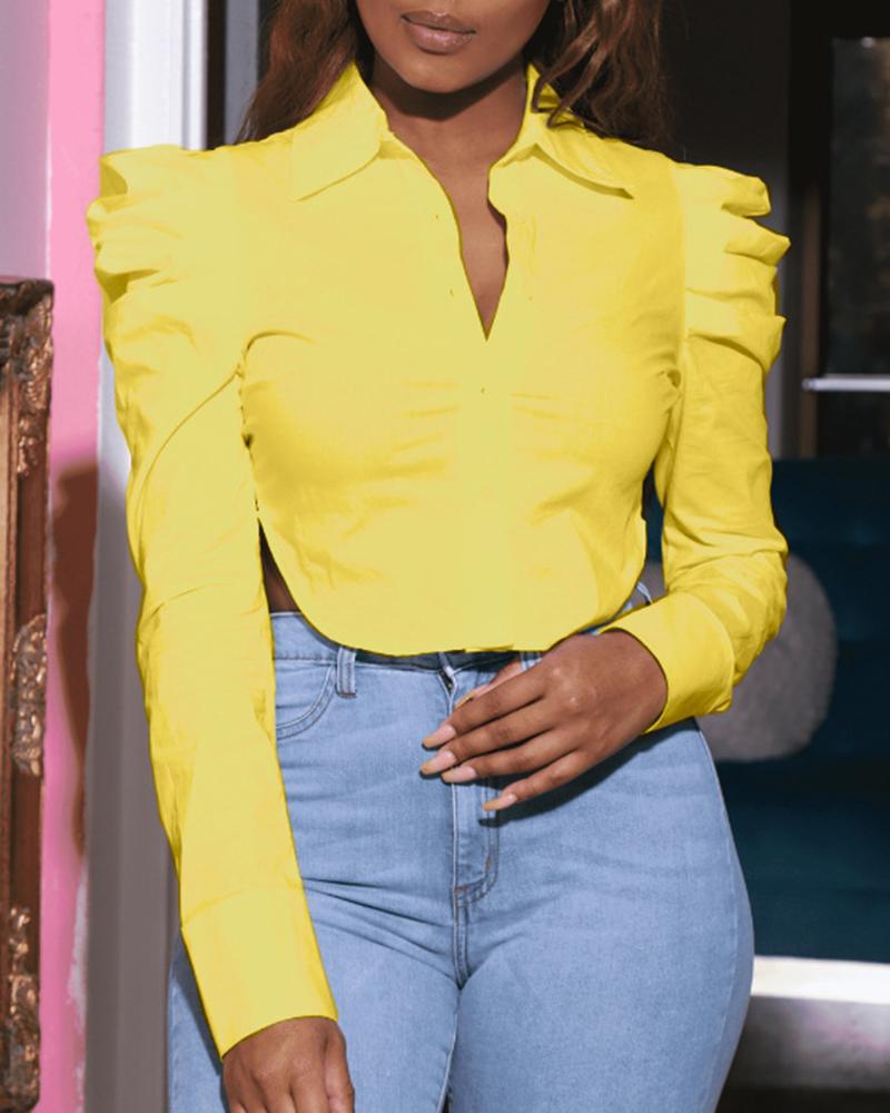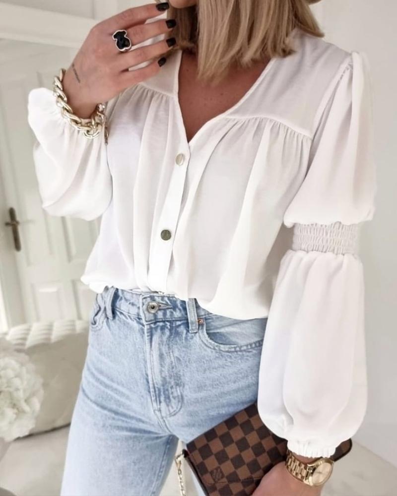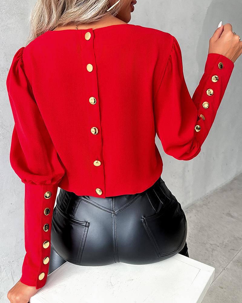 Button Front Puff Lantern Sleeve Top |