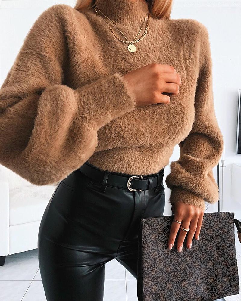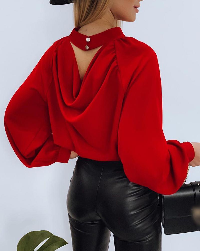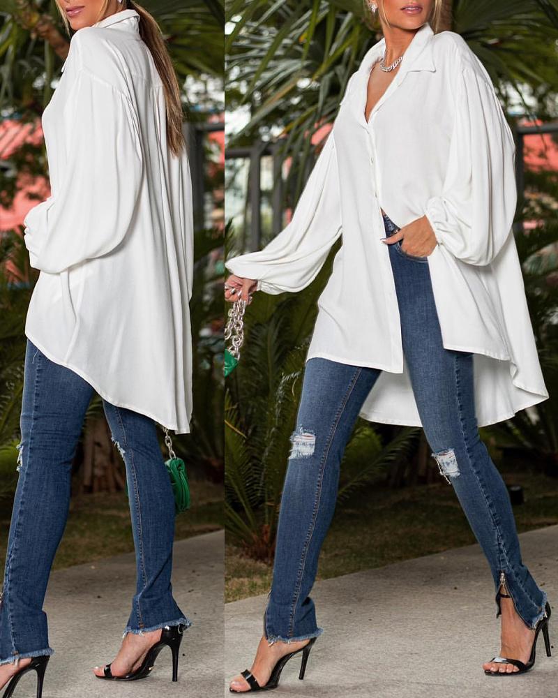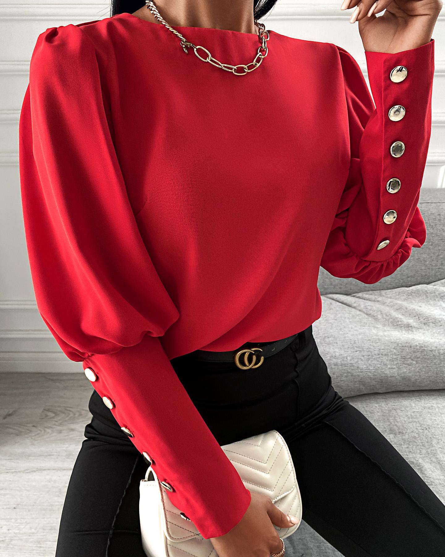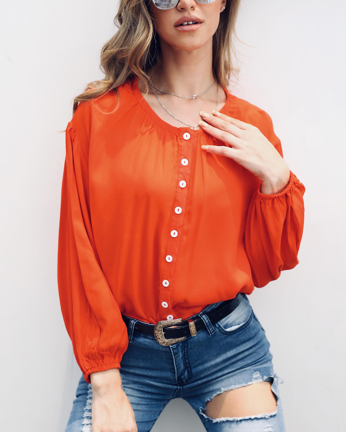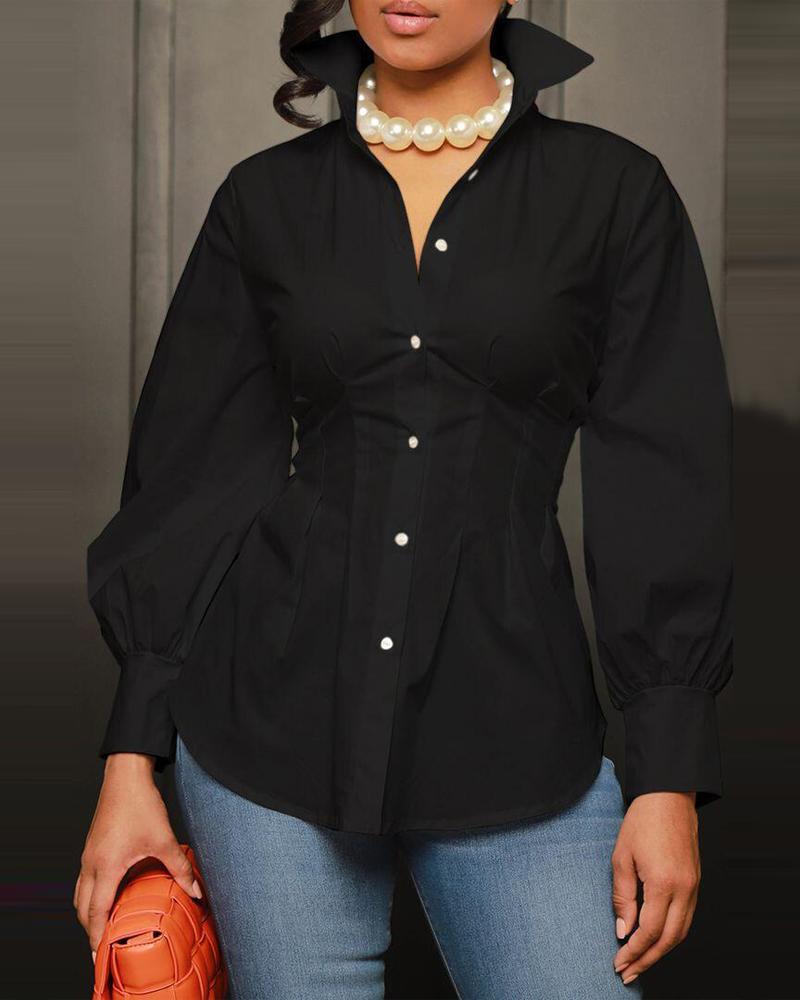 Button Front Puff Lantern Sleeve Top |