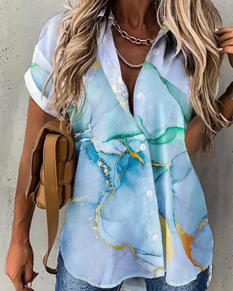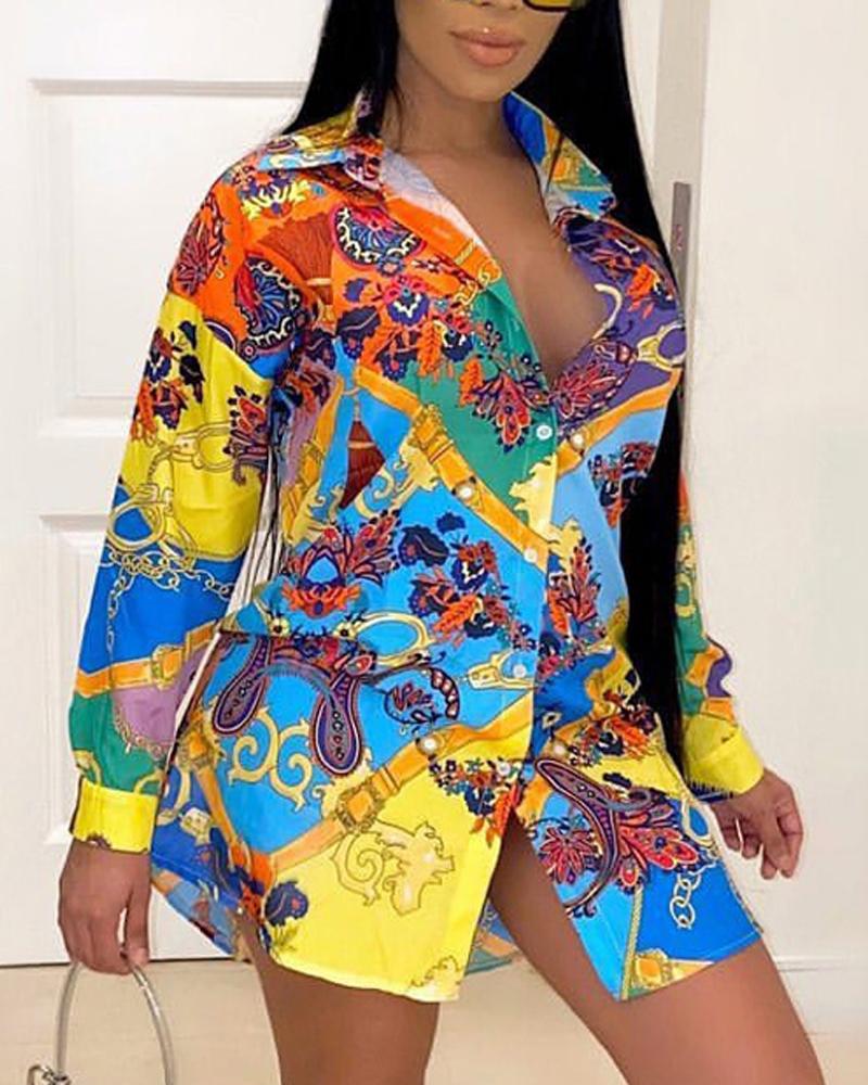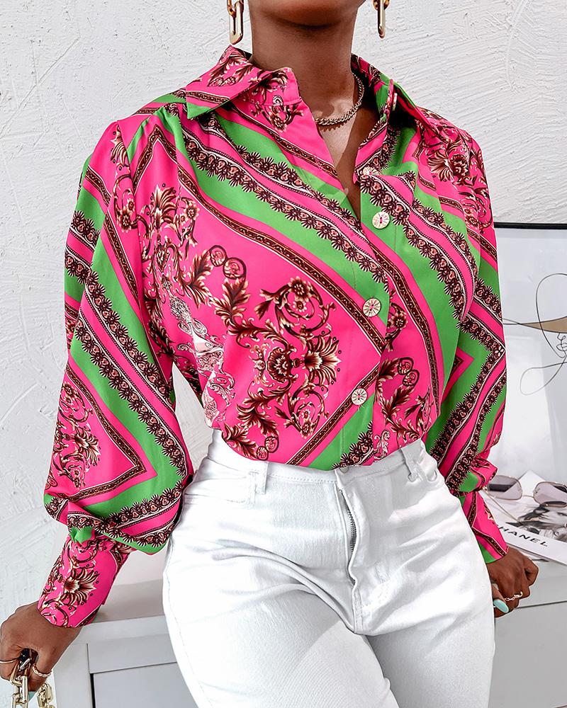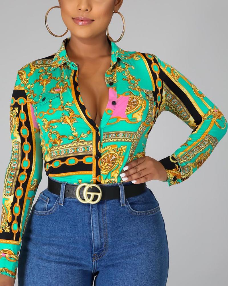 Plus Size Baroque Scarf Print Button Down Shirt |