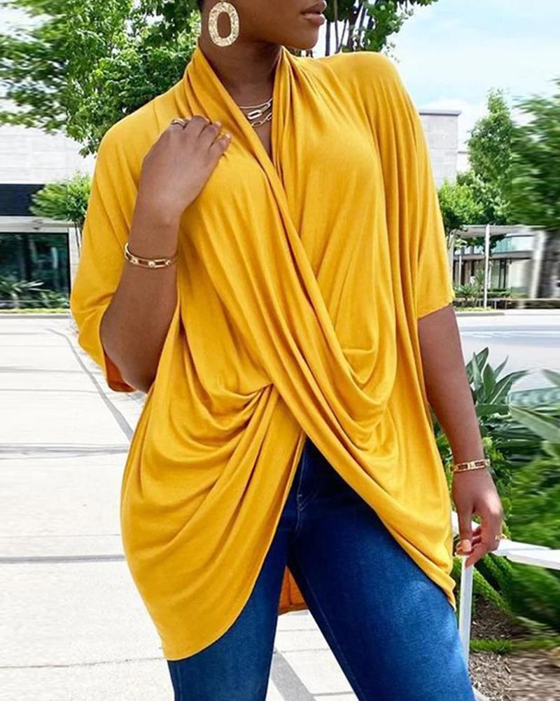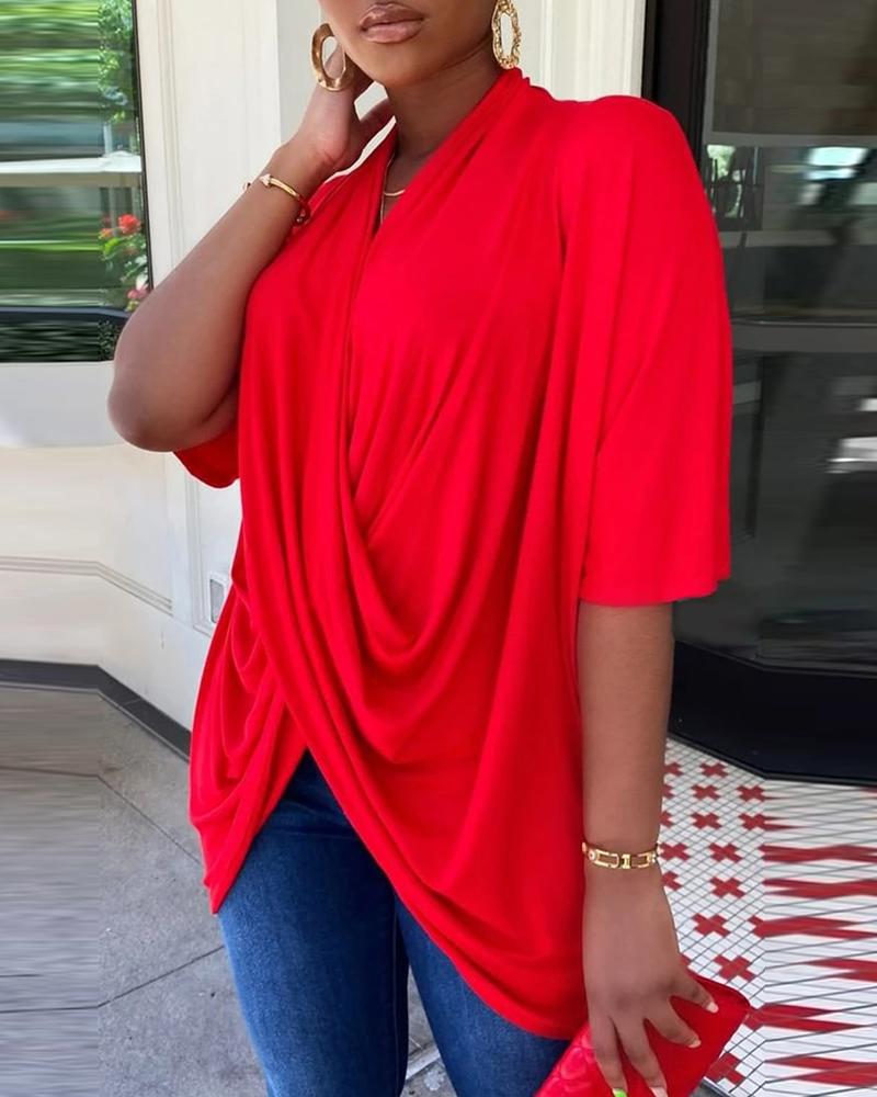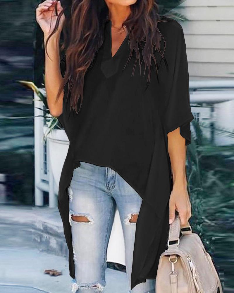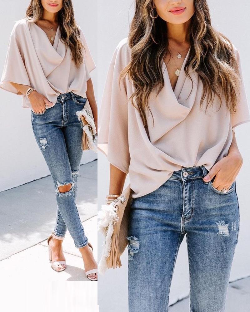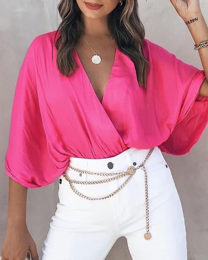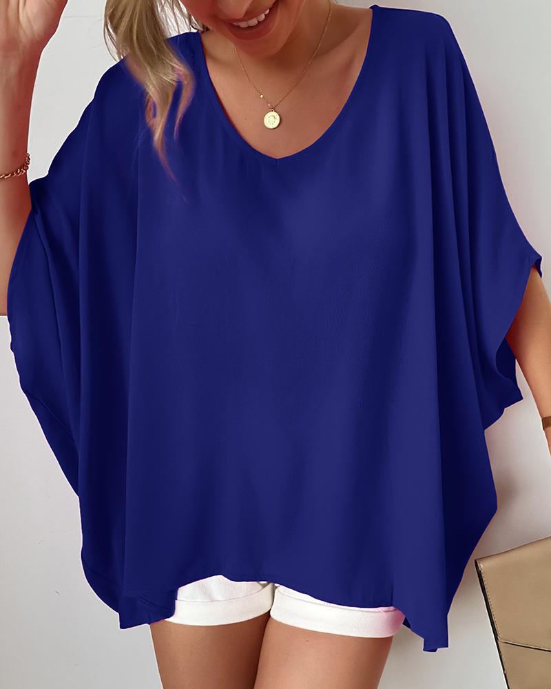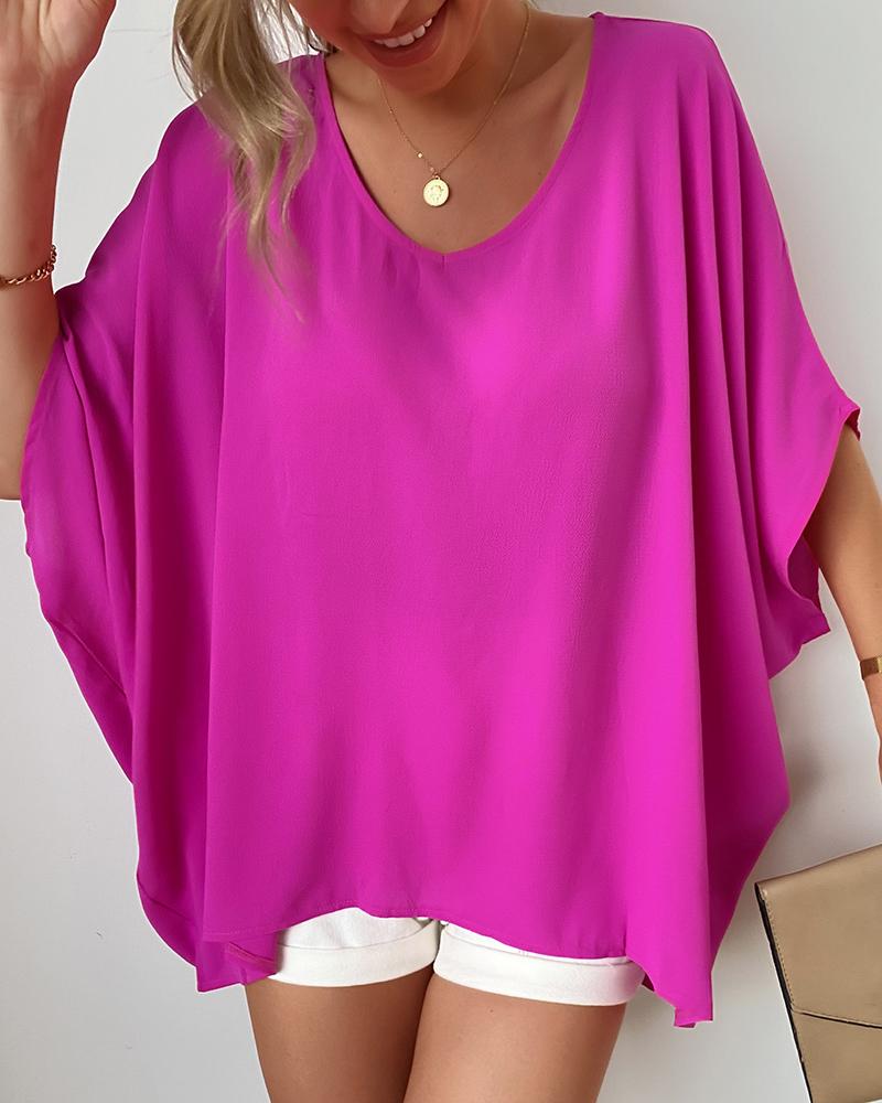 Plain V-Neck Batwing Sleeve Top |
