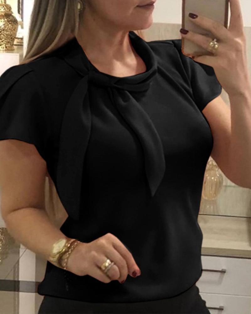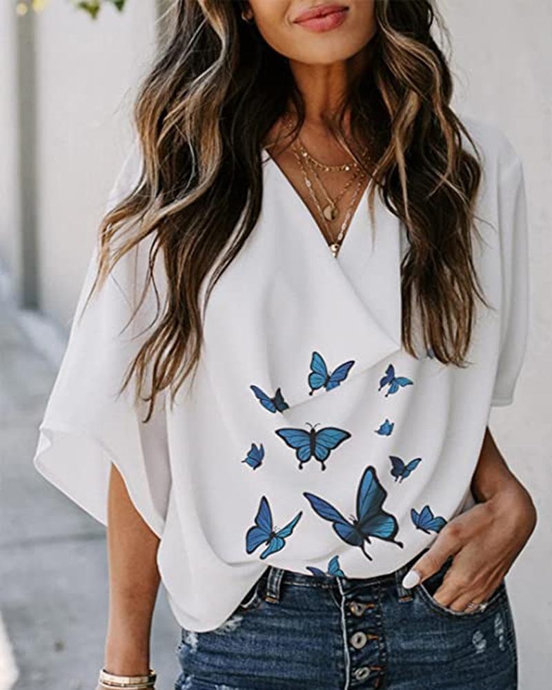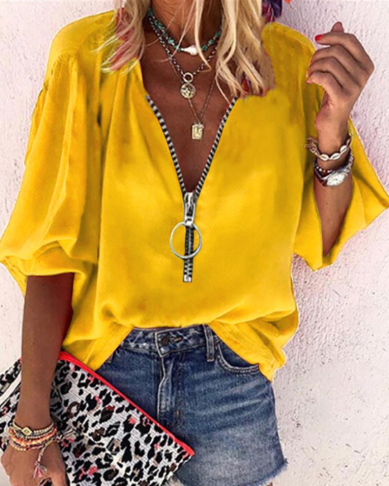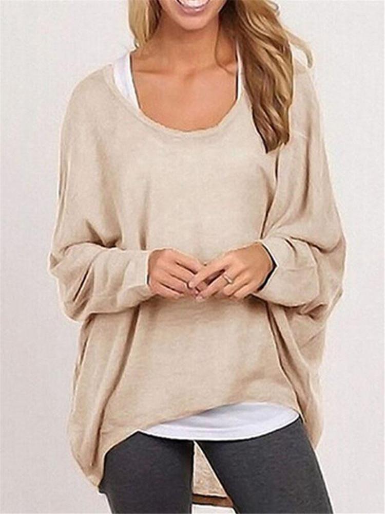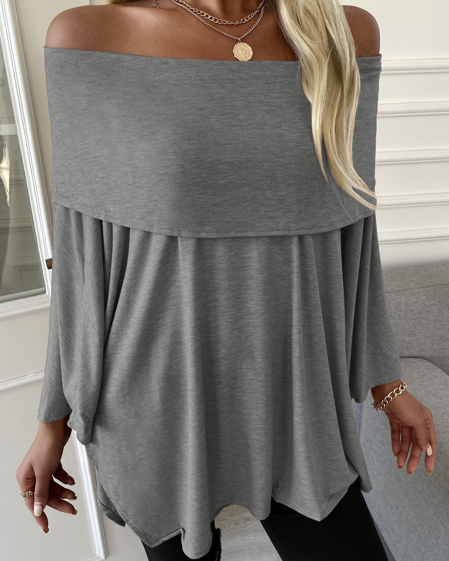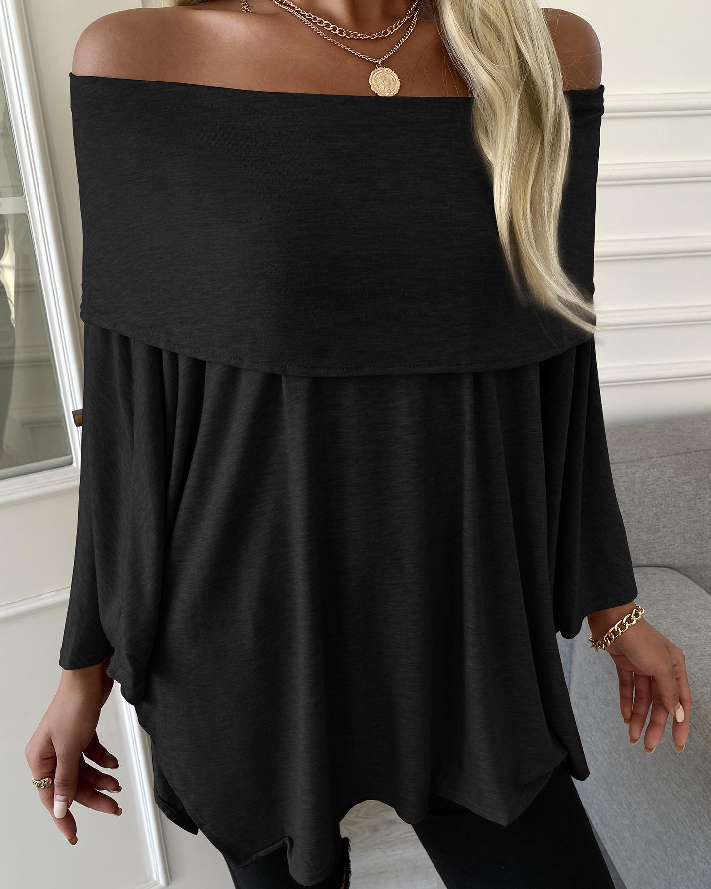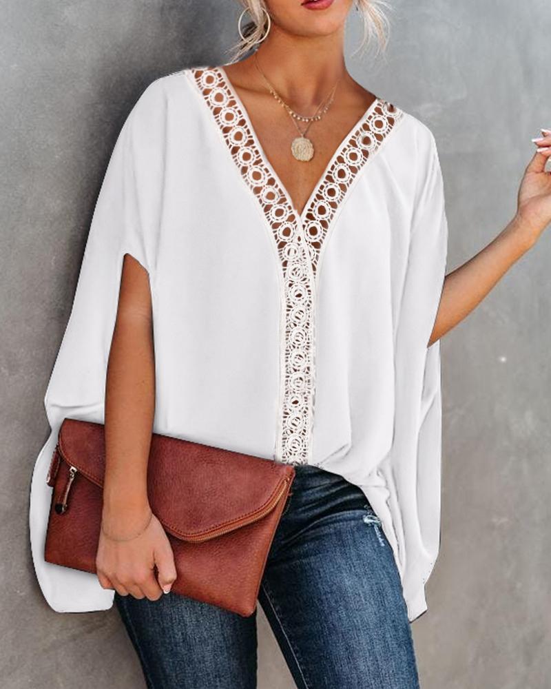 Plain V-Neck Batwing Sleeve Top |