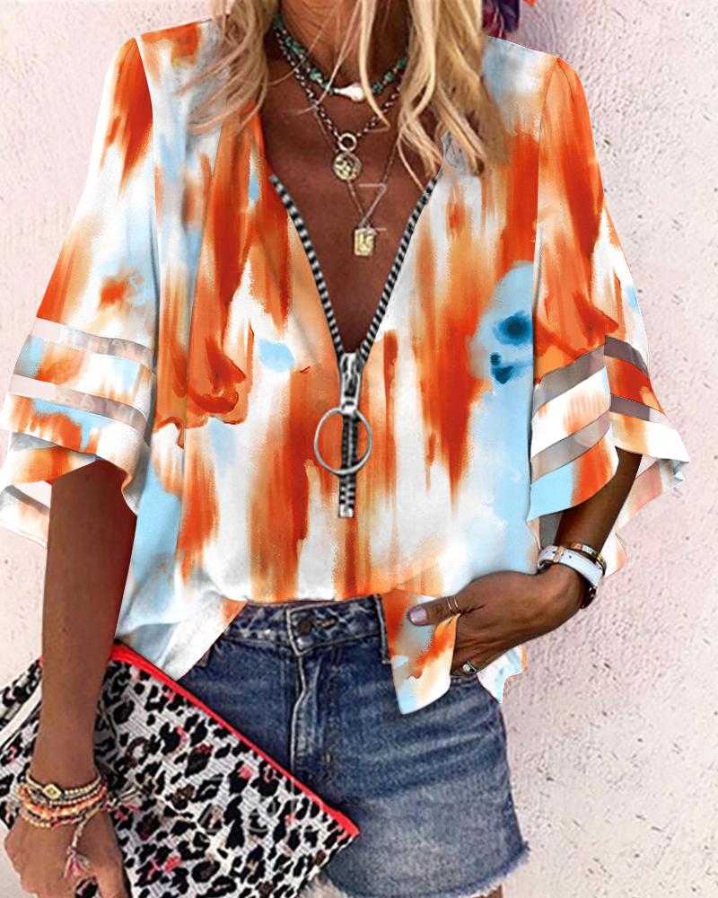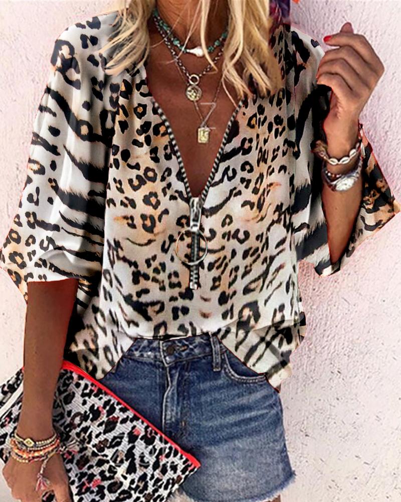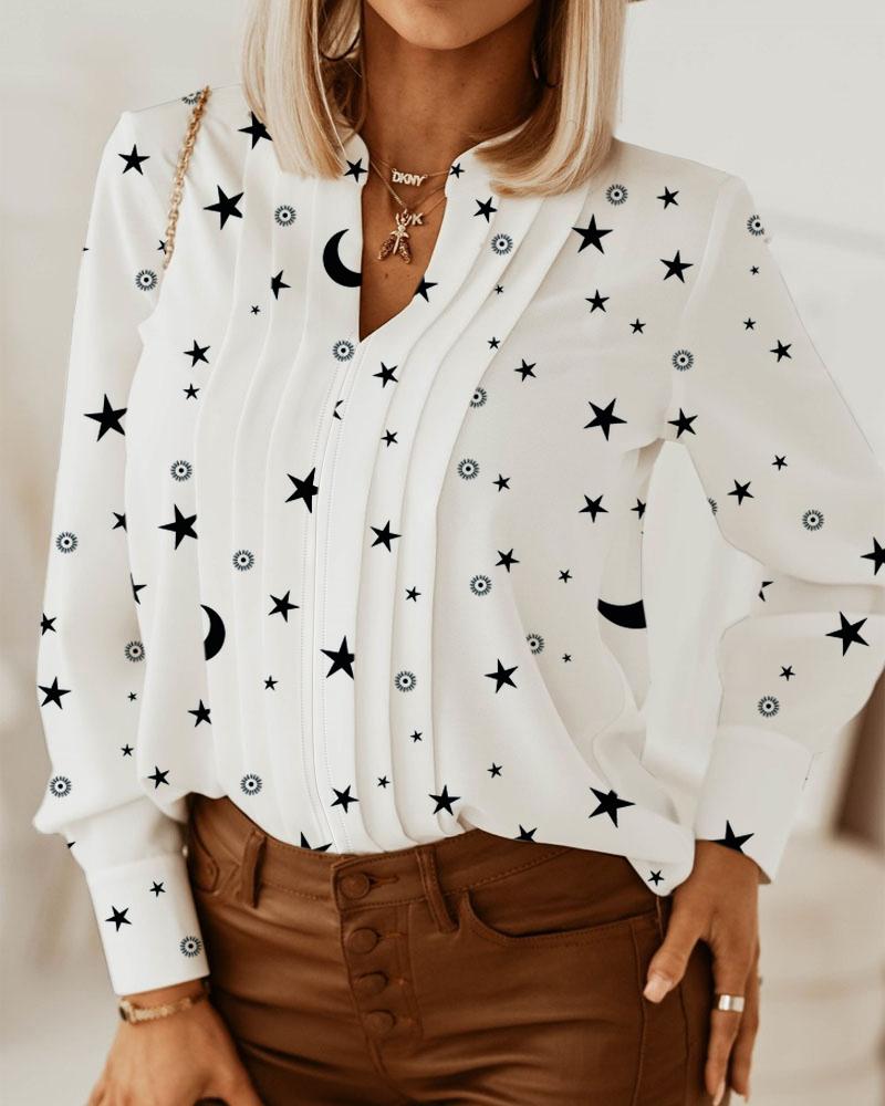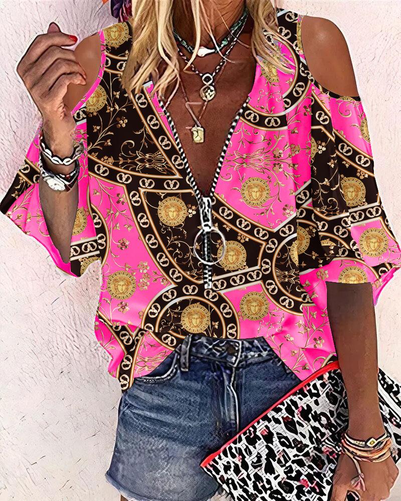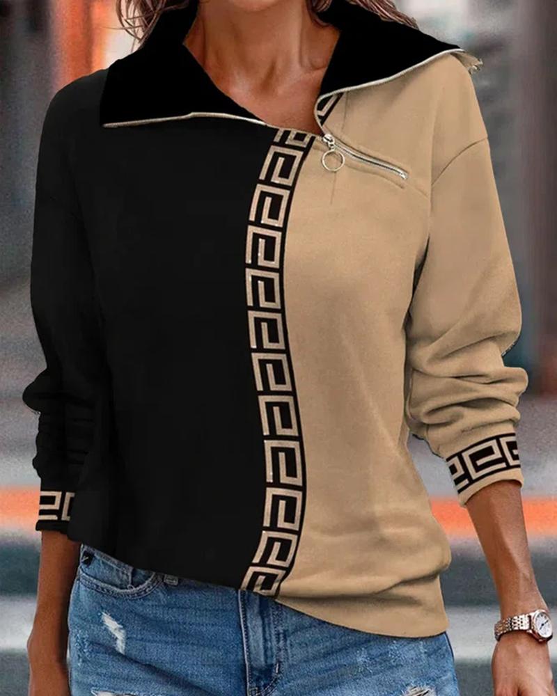 Plus Size Baroque Print Long Sleeve Zip Up Top |