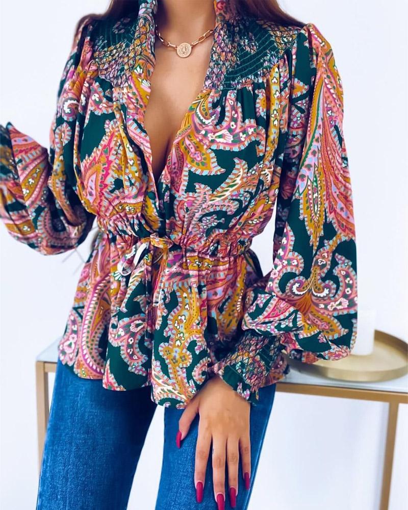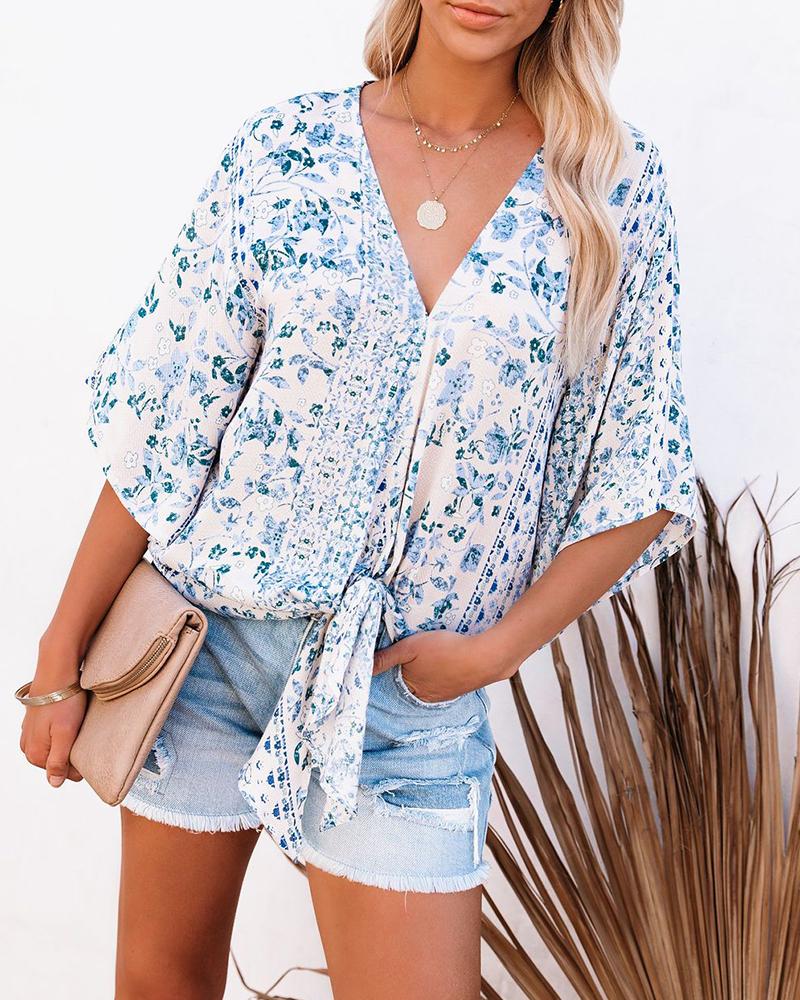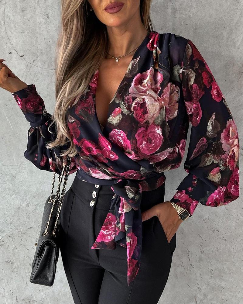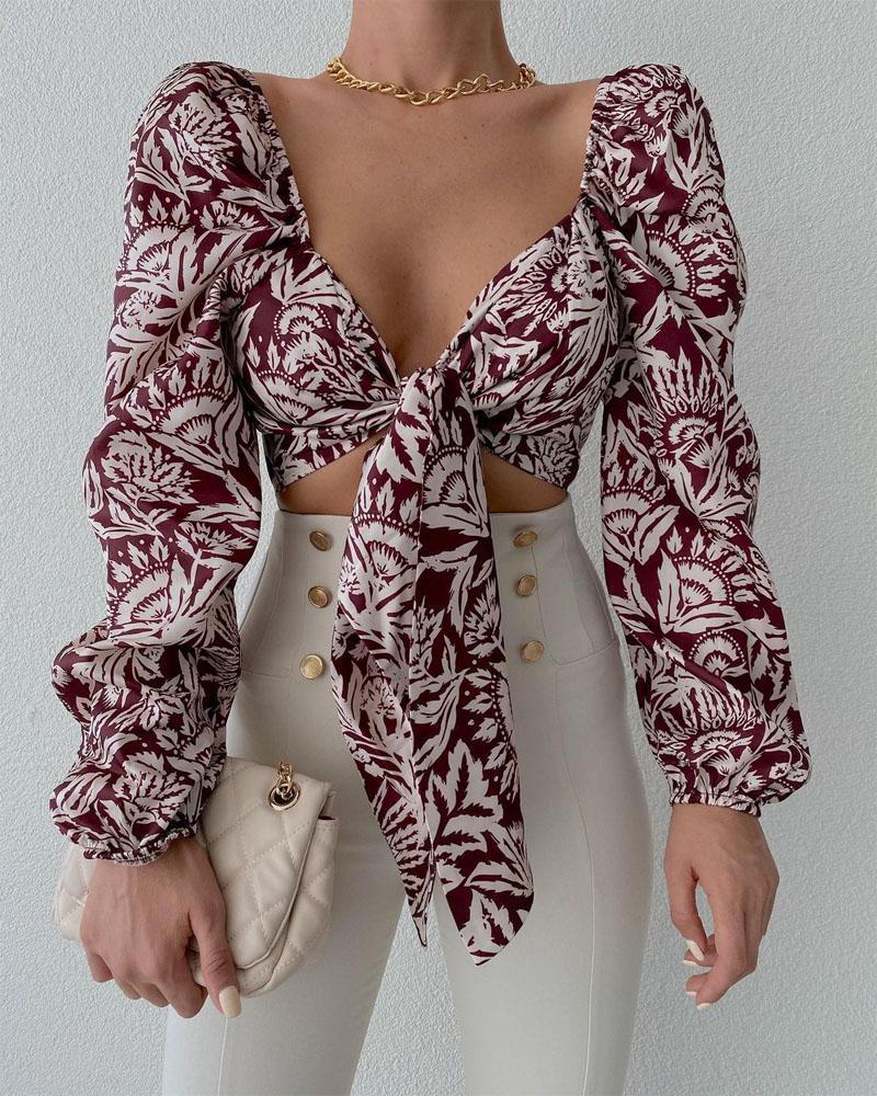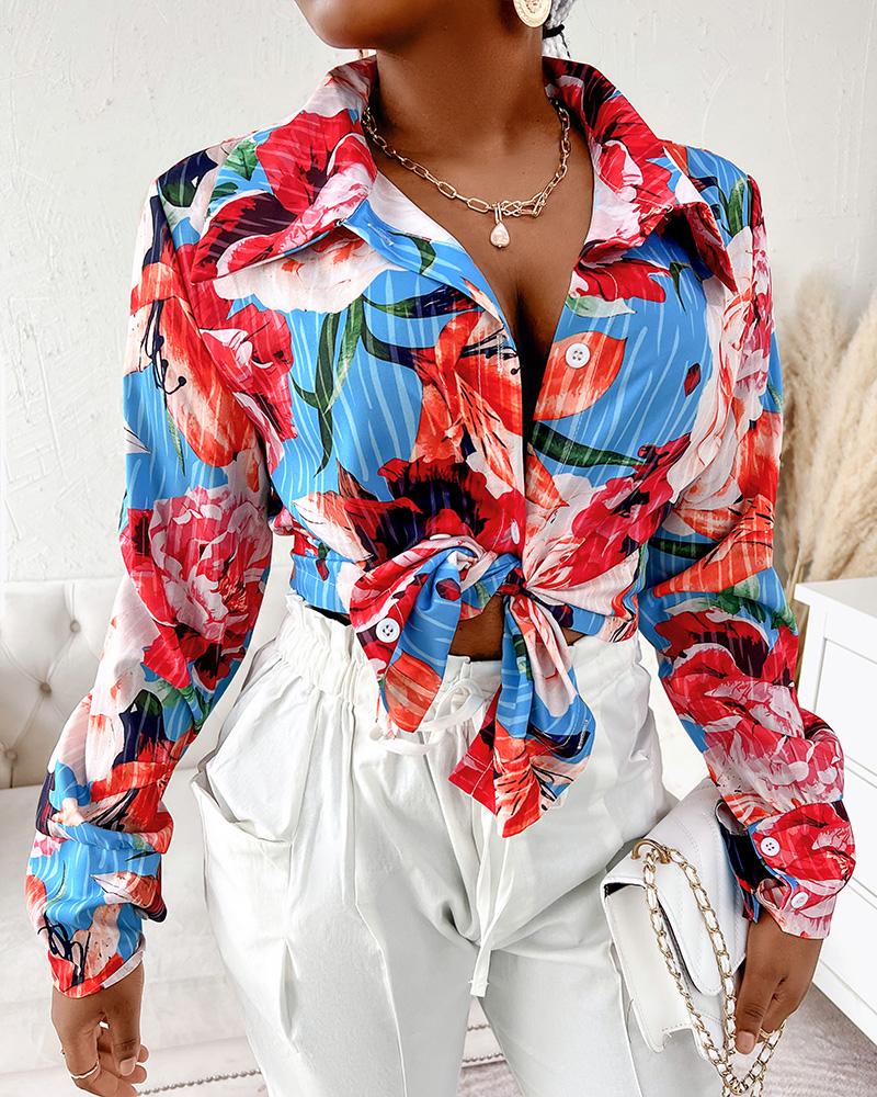 Floral Print Tie Front Long Sleeve Shirt |