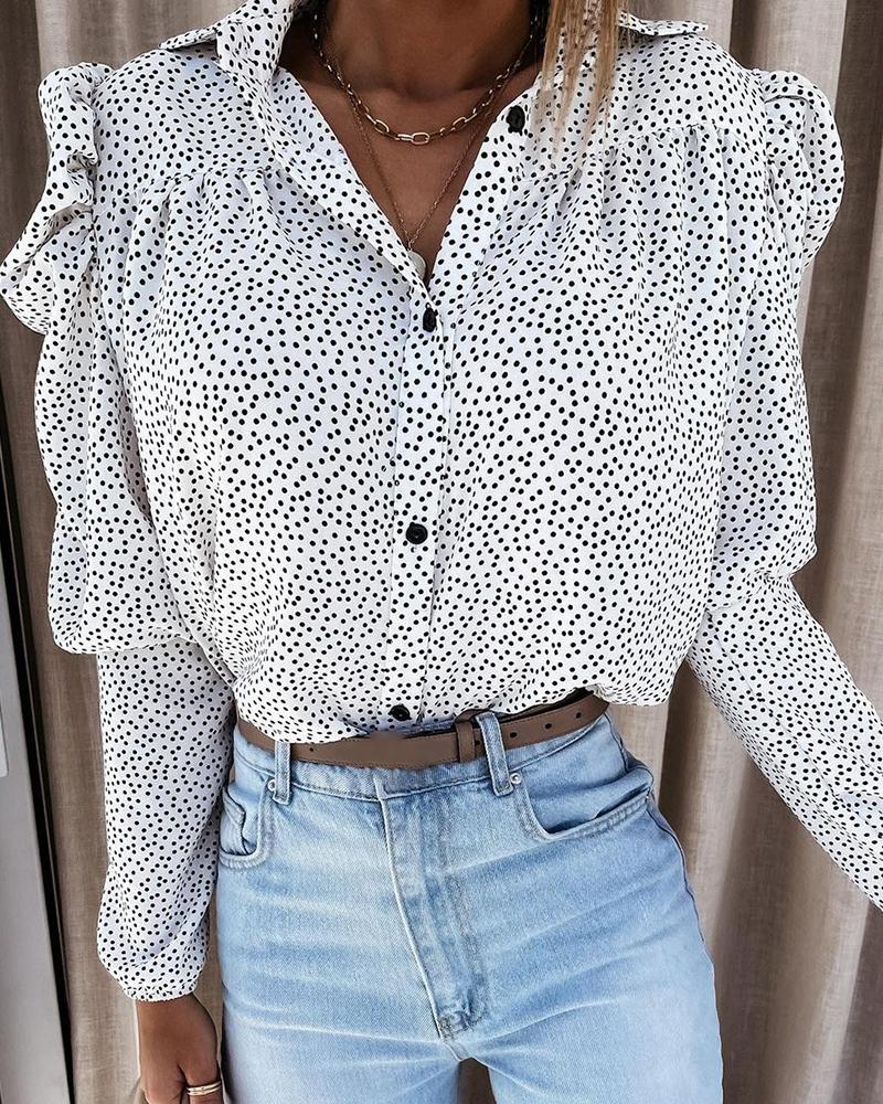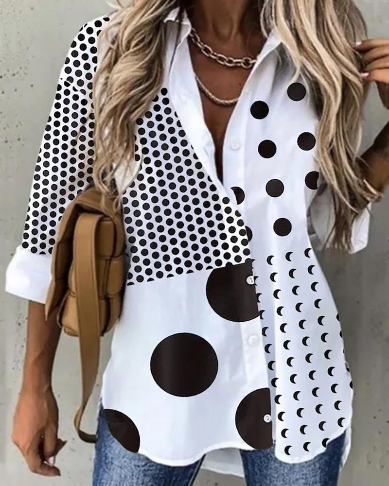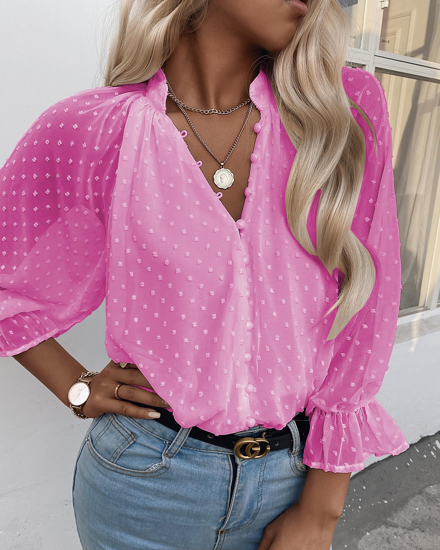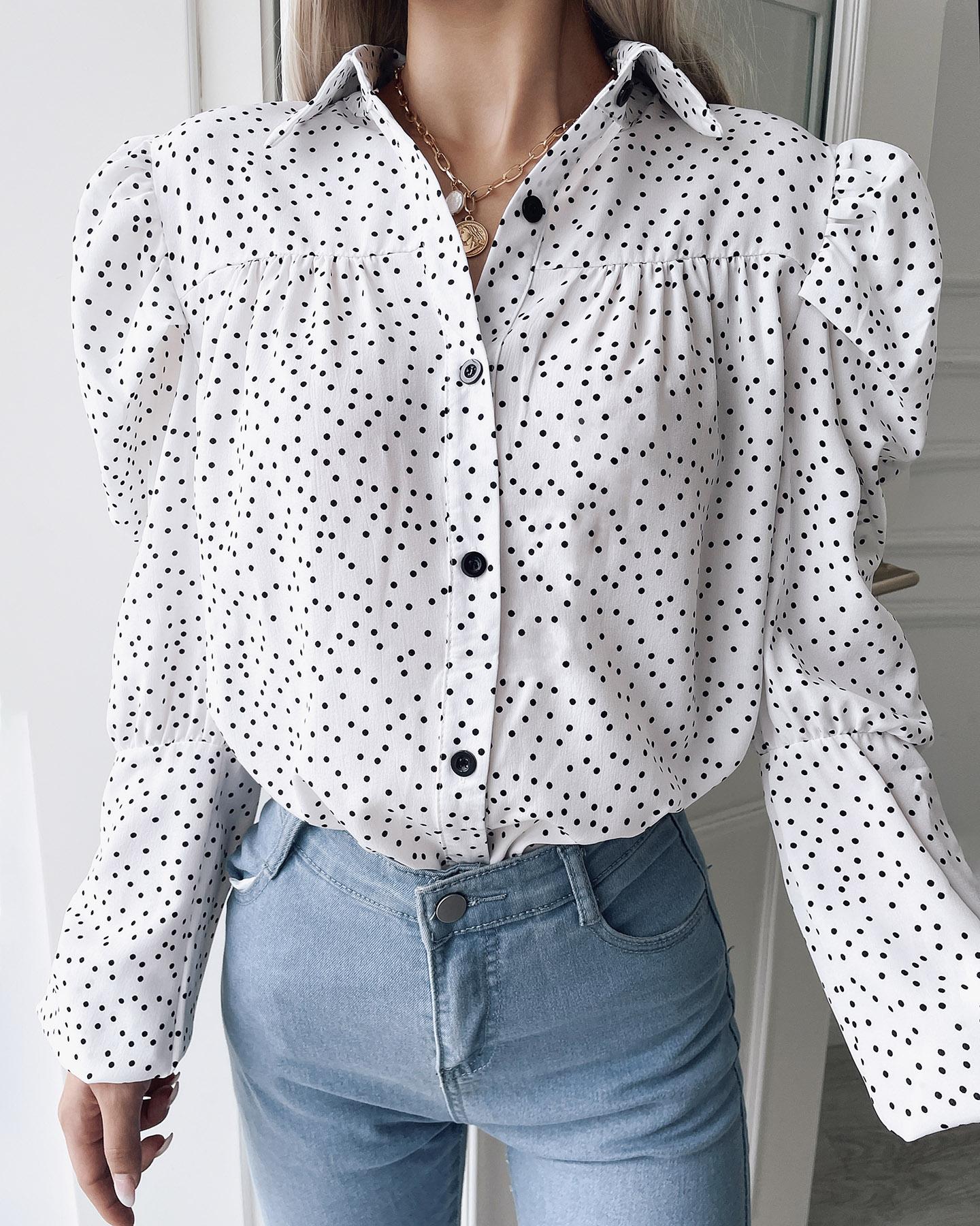 Dots Button Long Sleeve Blouse Casual V-Neck Shirt Top |