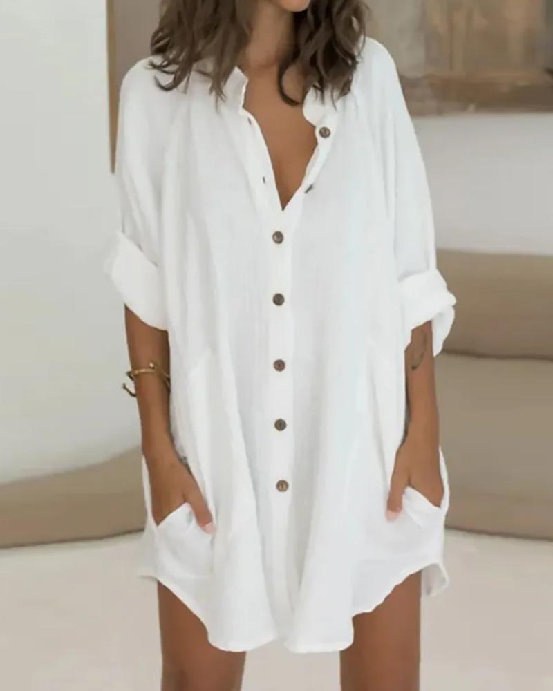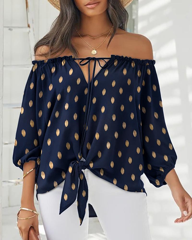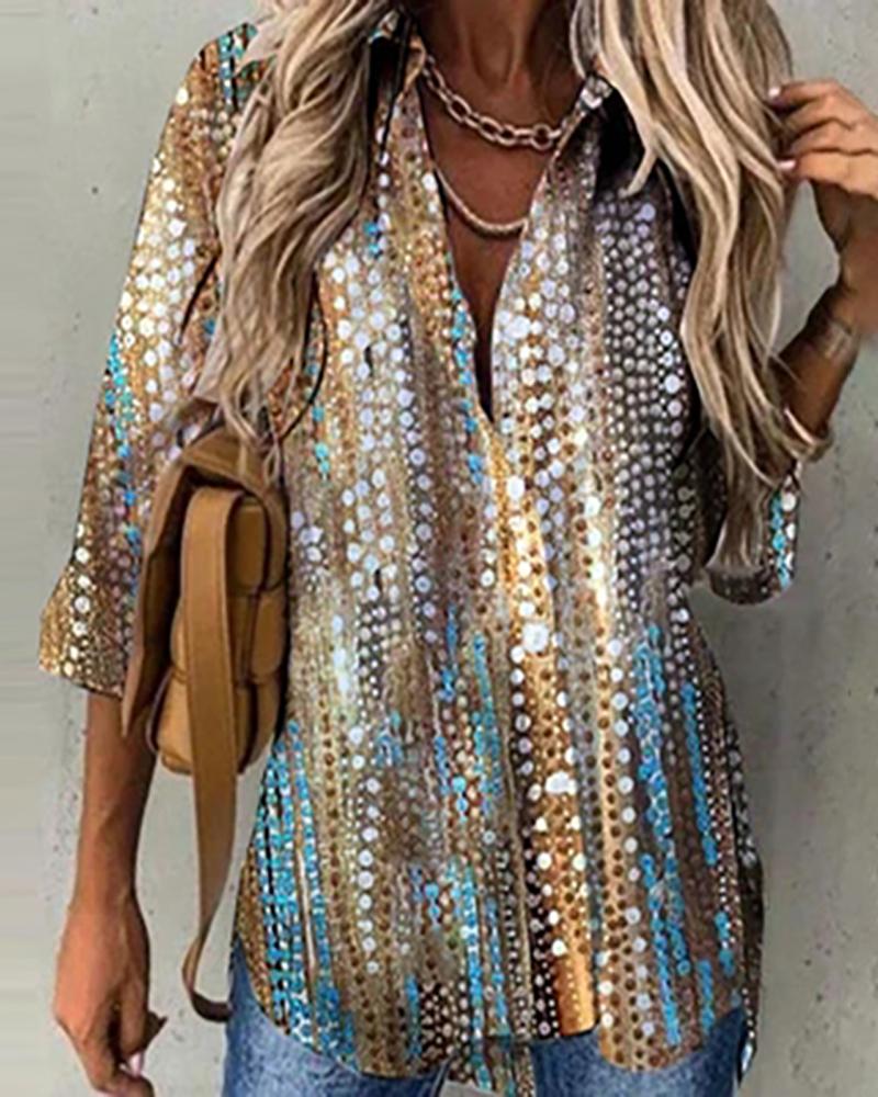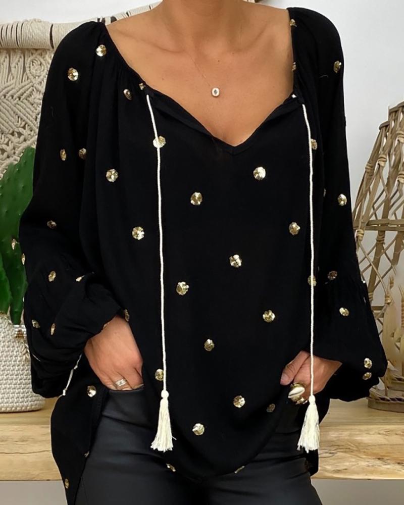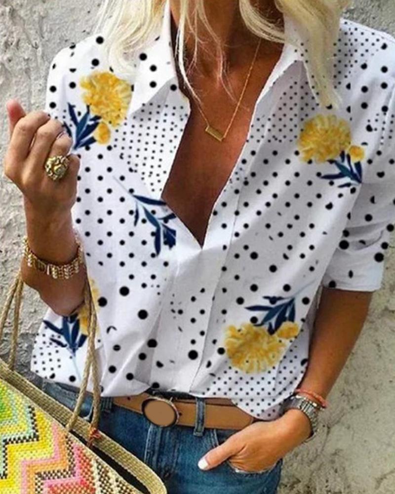 Dots Button Long Sleeve Blouse Casual V-Neck Shirt Top |