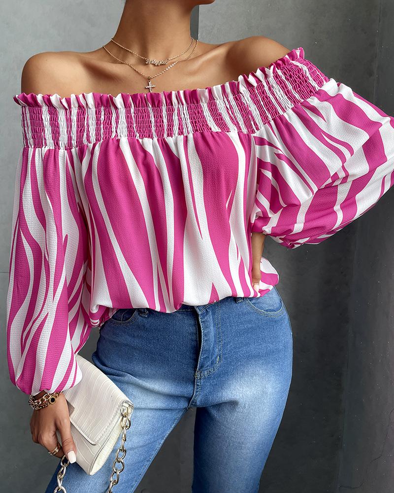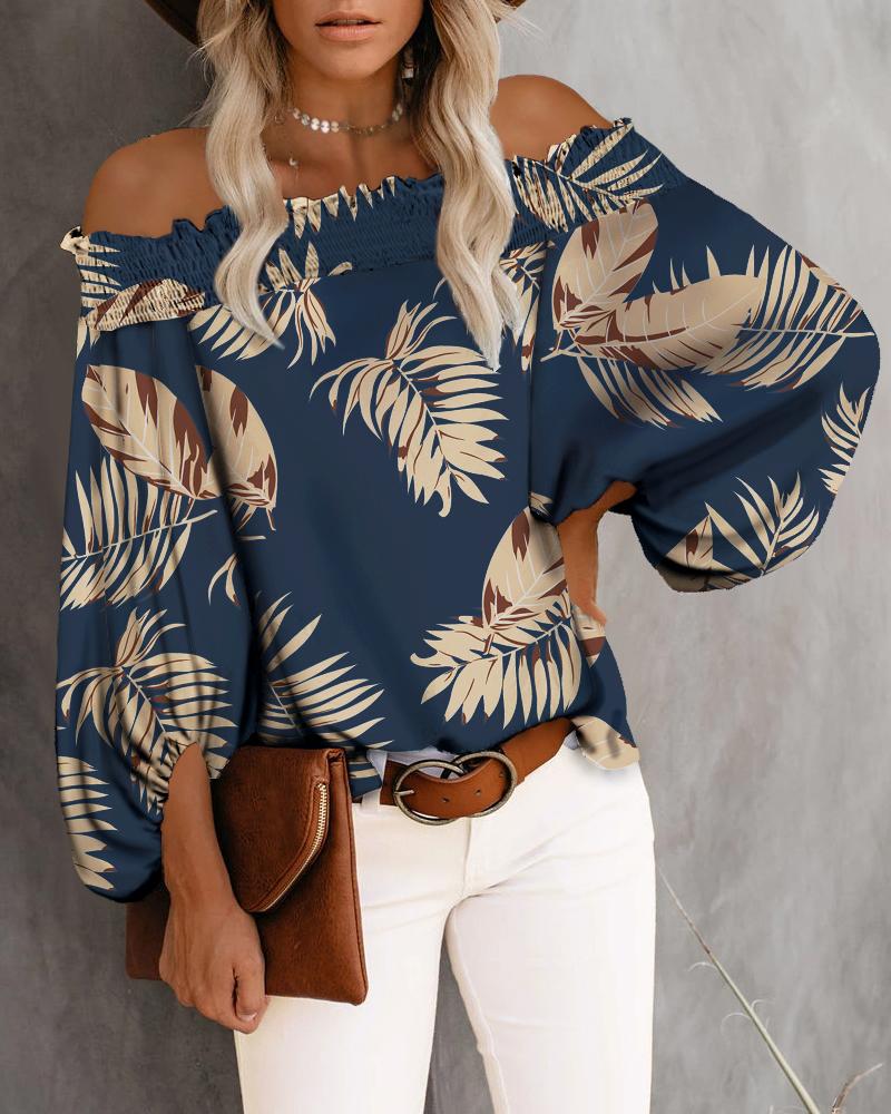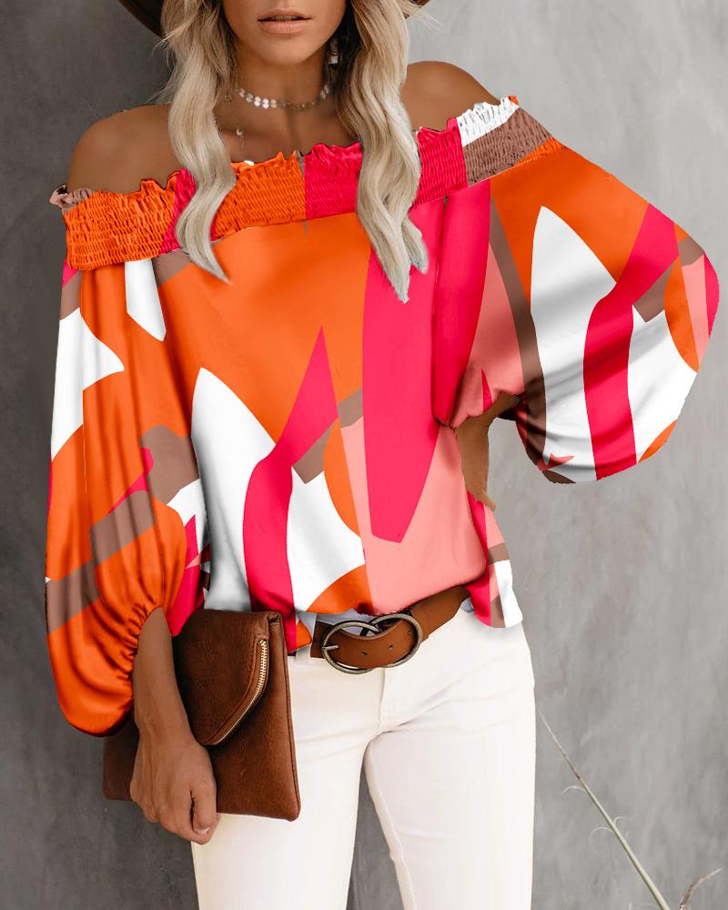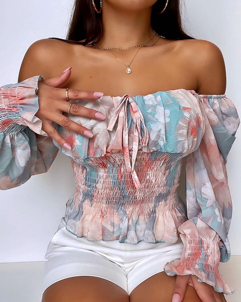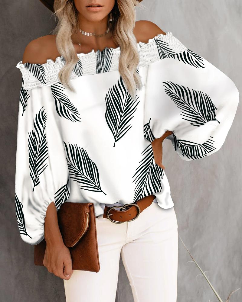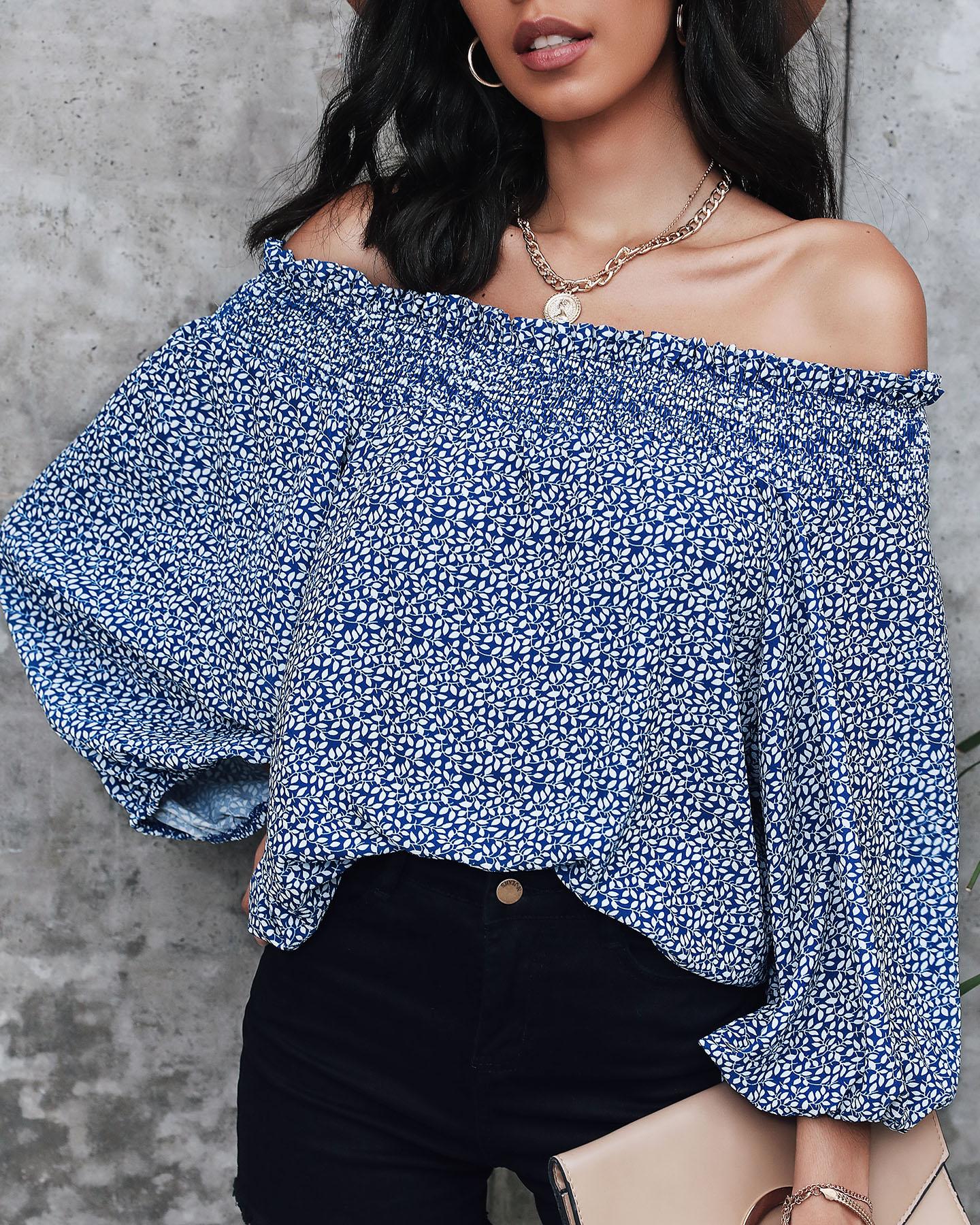 Off Shoulder Lantern Sleeve Cutout Shirred Top |