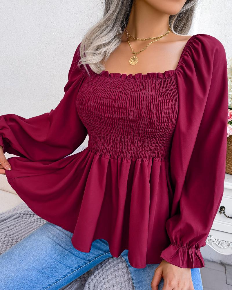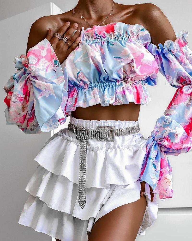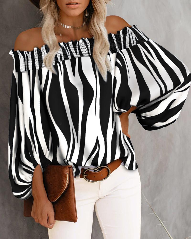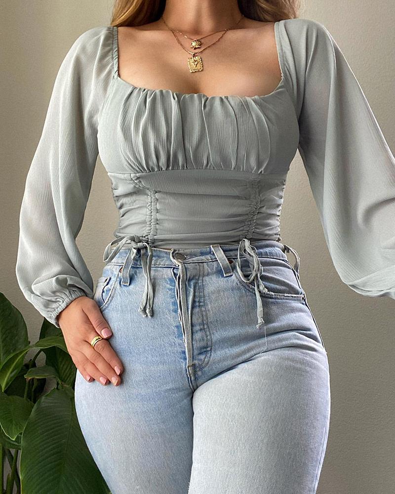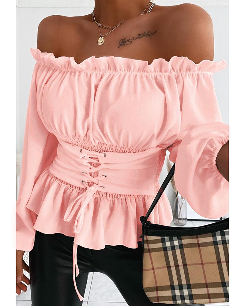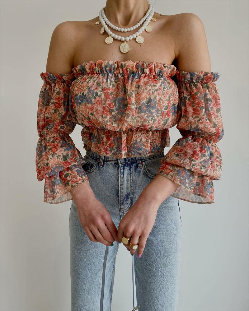 Off Shoulder Lantern Sleeve Cutout Shirred Top |