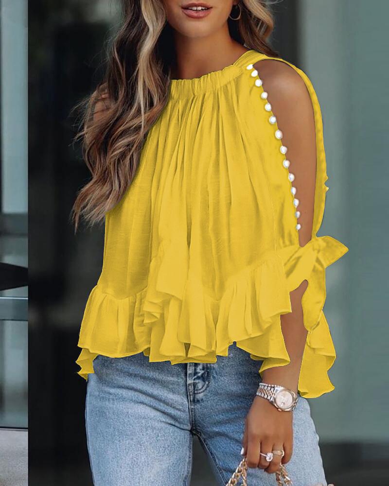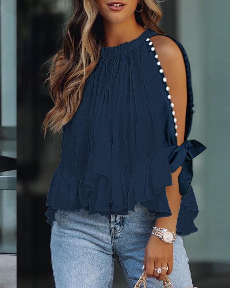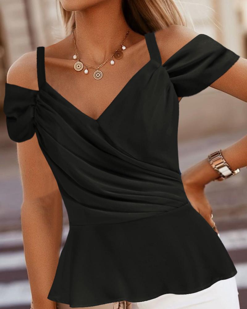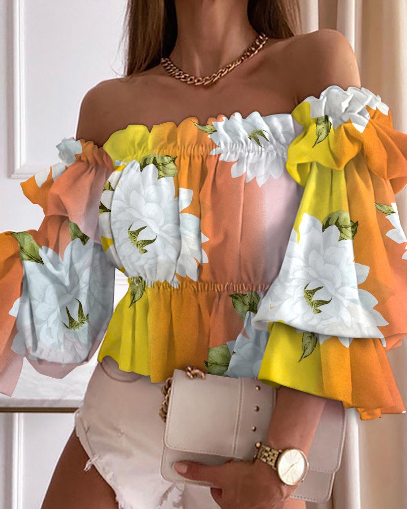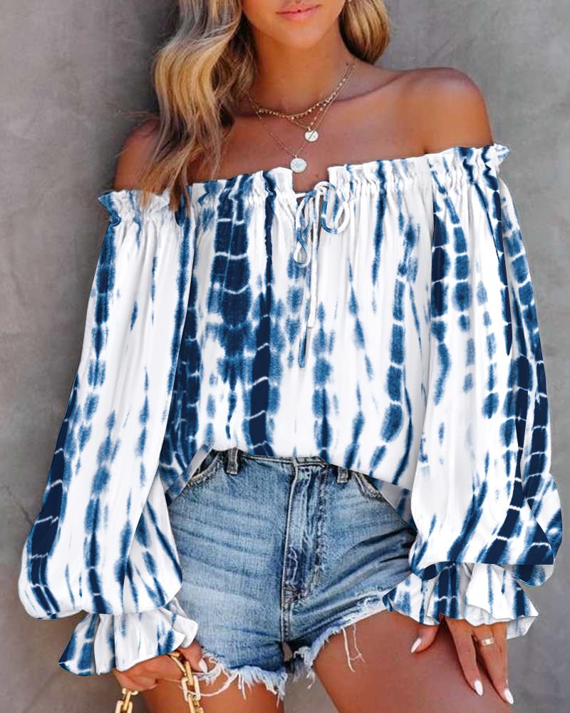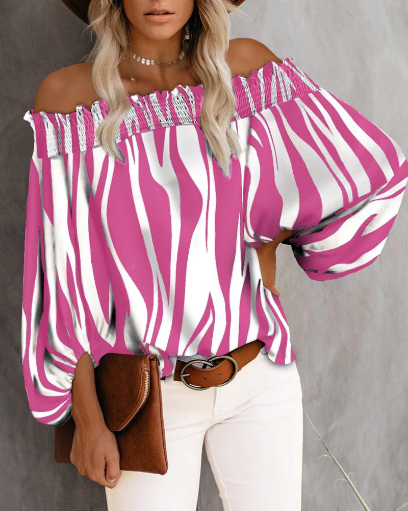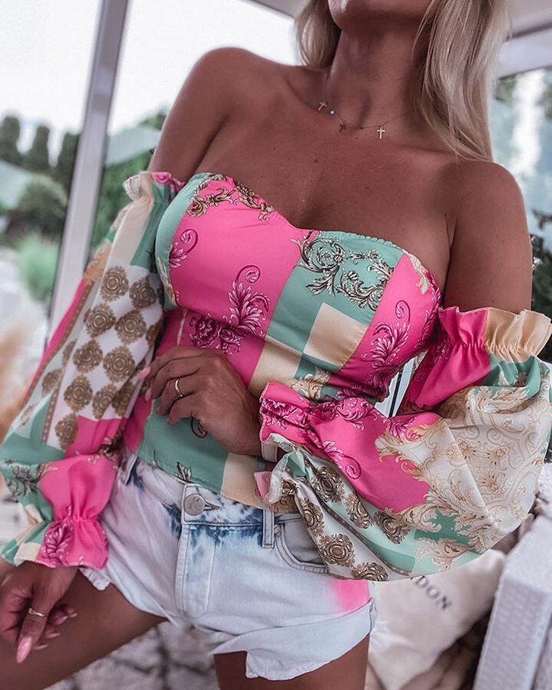 Off Shoulder Lantern Sleeve Cutout Shirred Top |