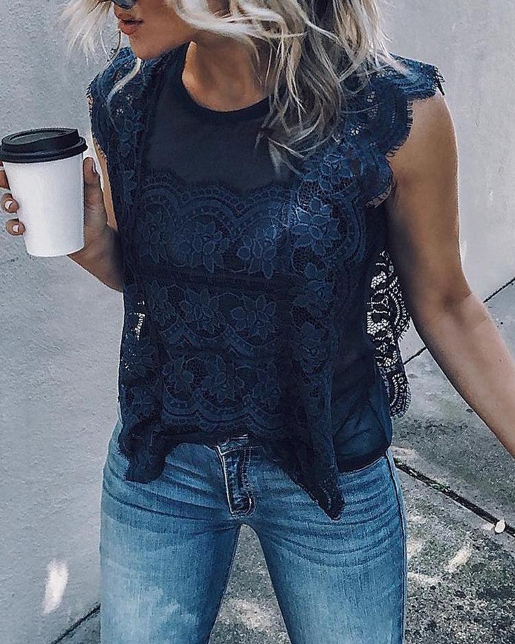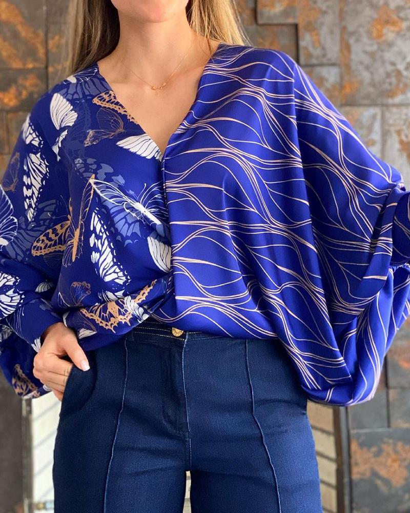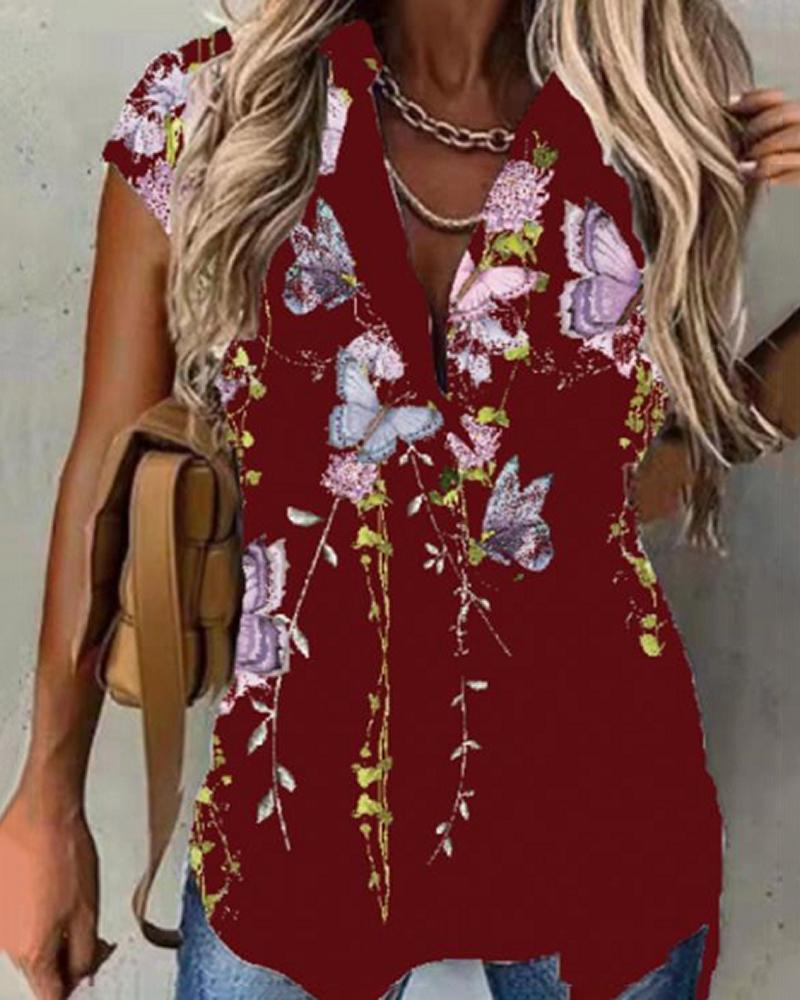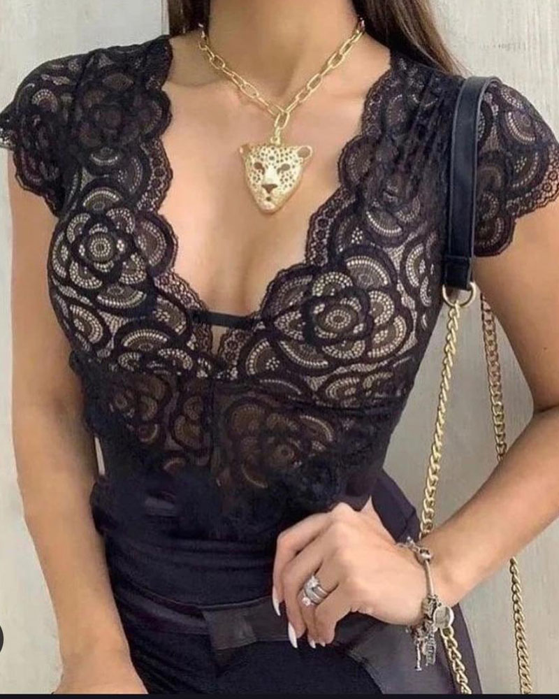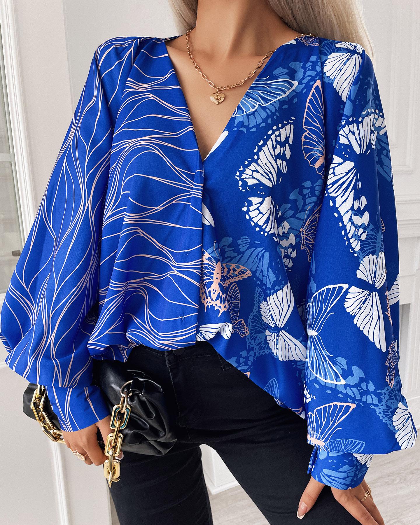 Butterfly Floral Print Contrast Lace Shirt |