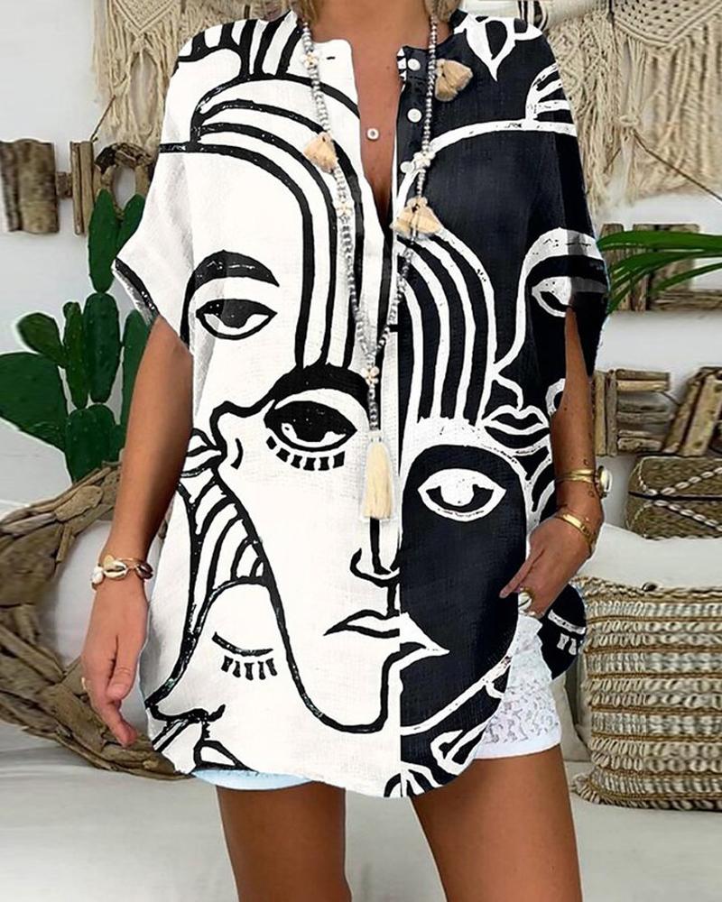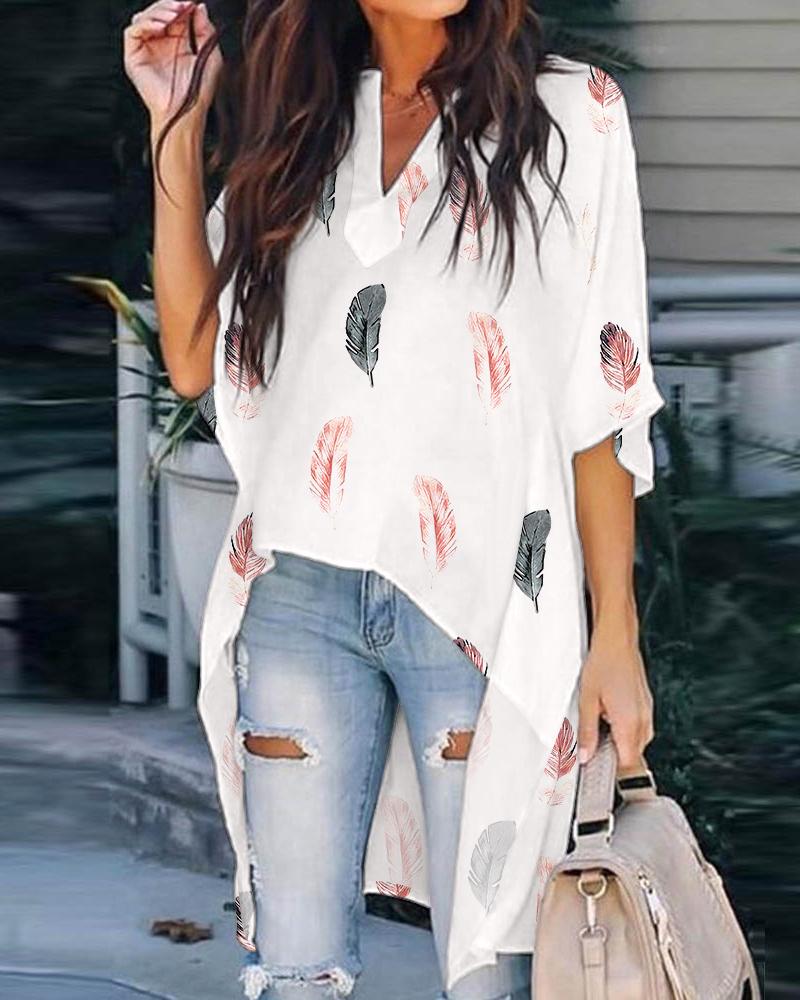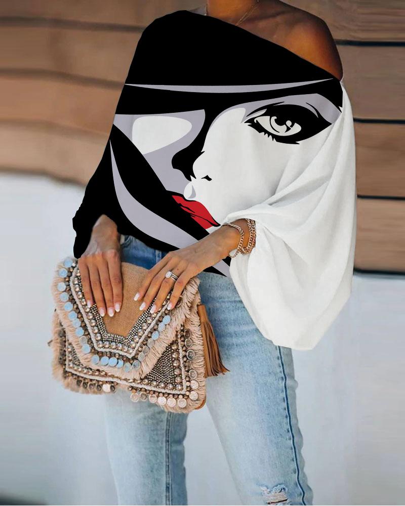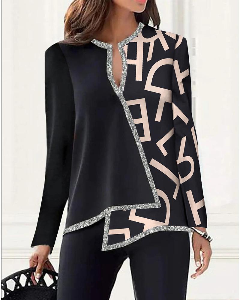 Figure Print Long Sleeve Asymmetrical Hem Top |