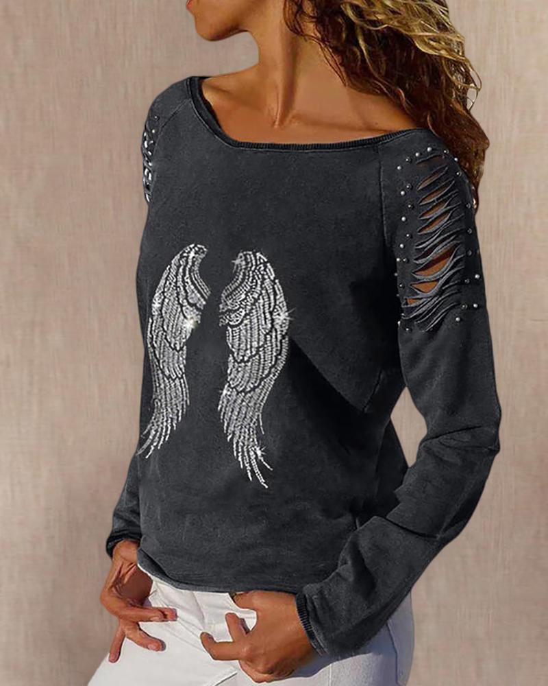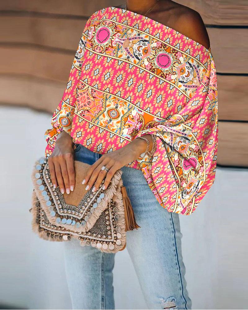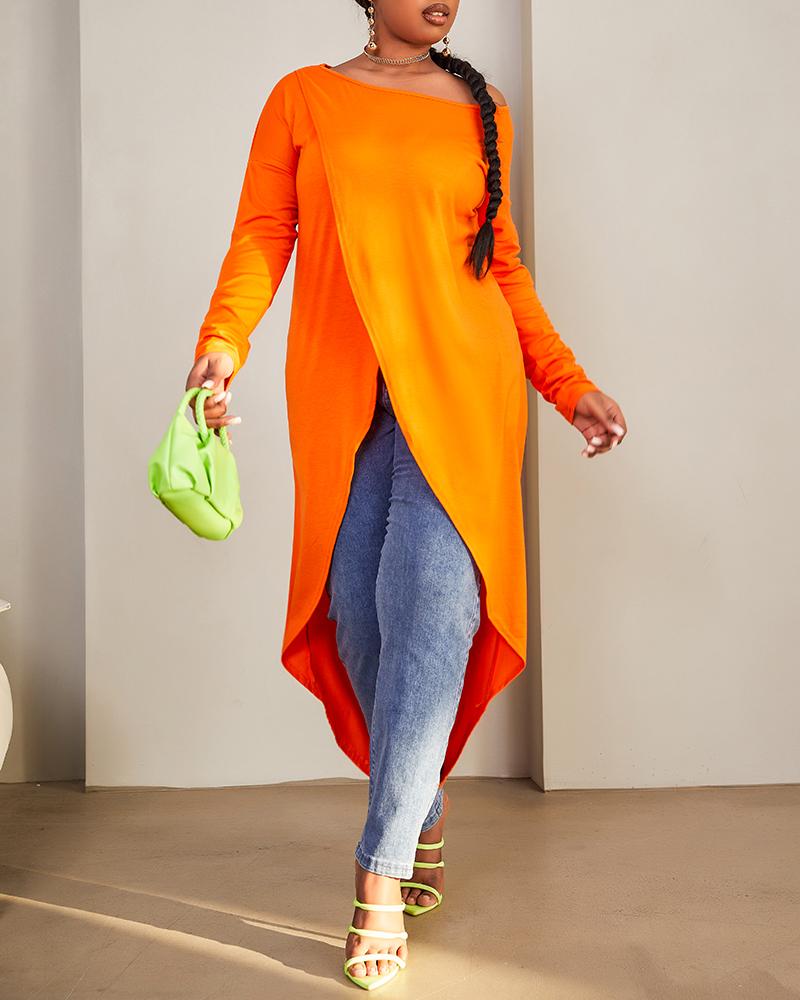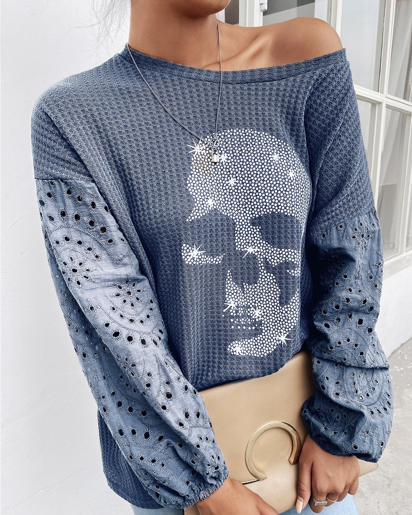 Figure Print Long Sleeve Asymmetrical Hem Top |