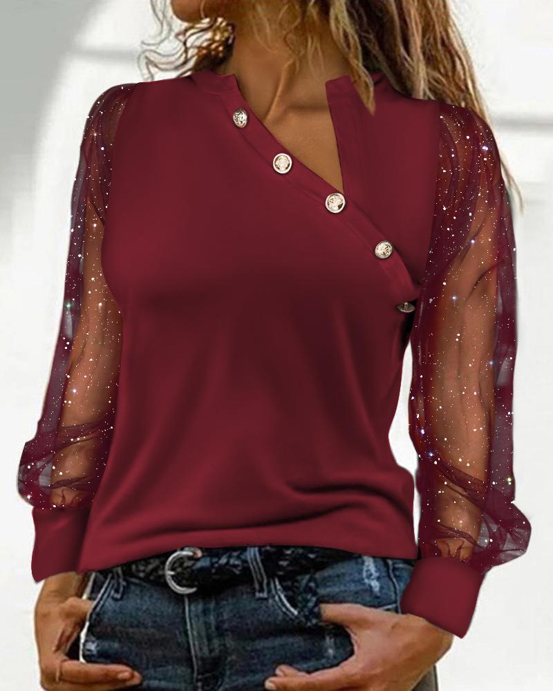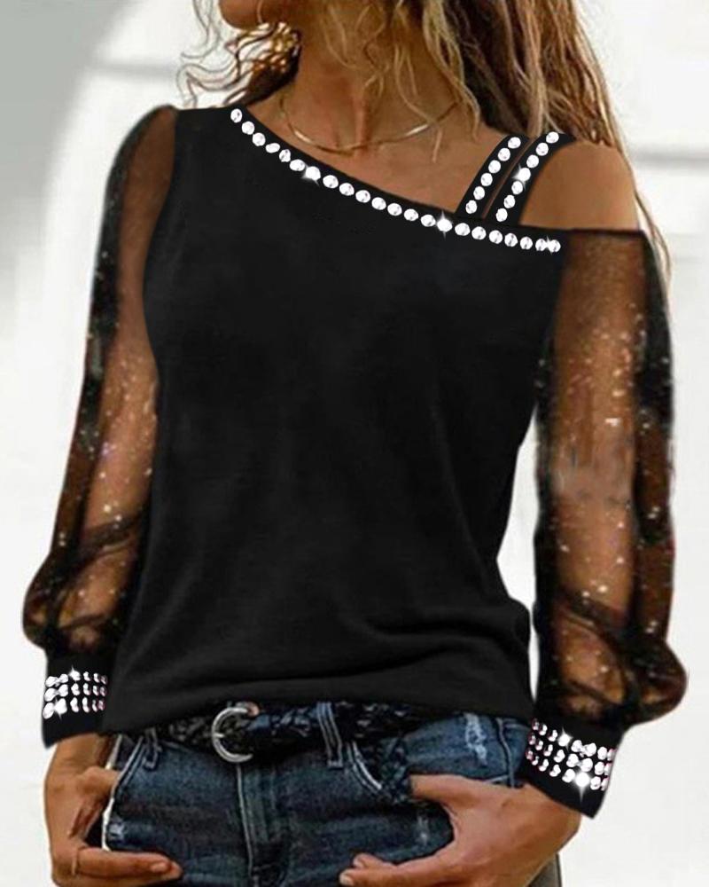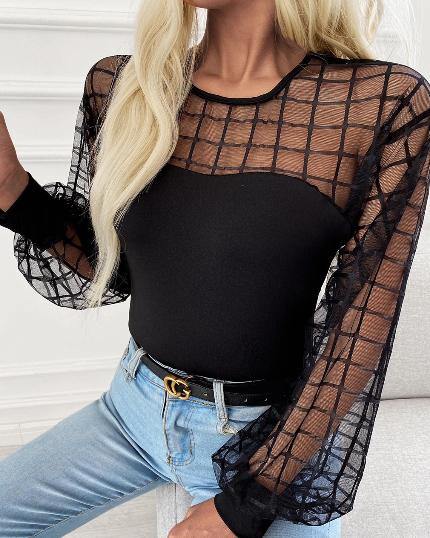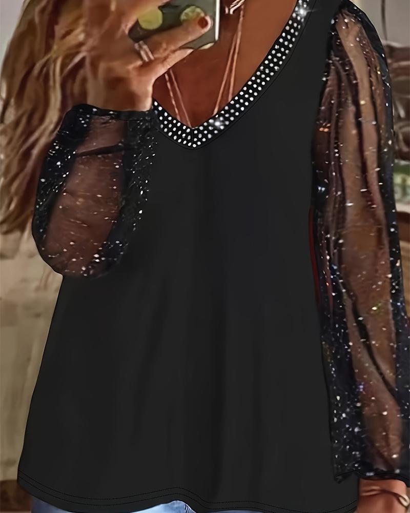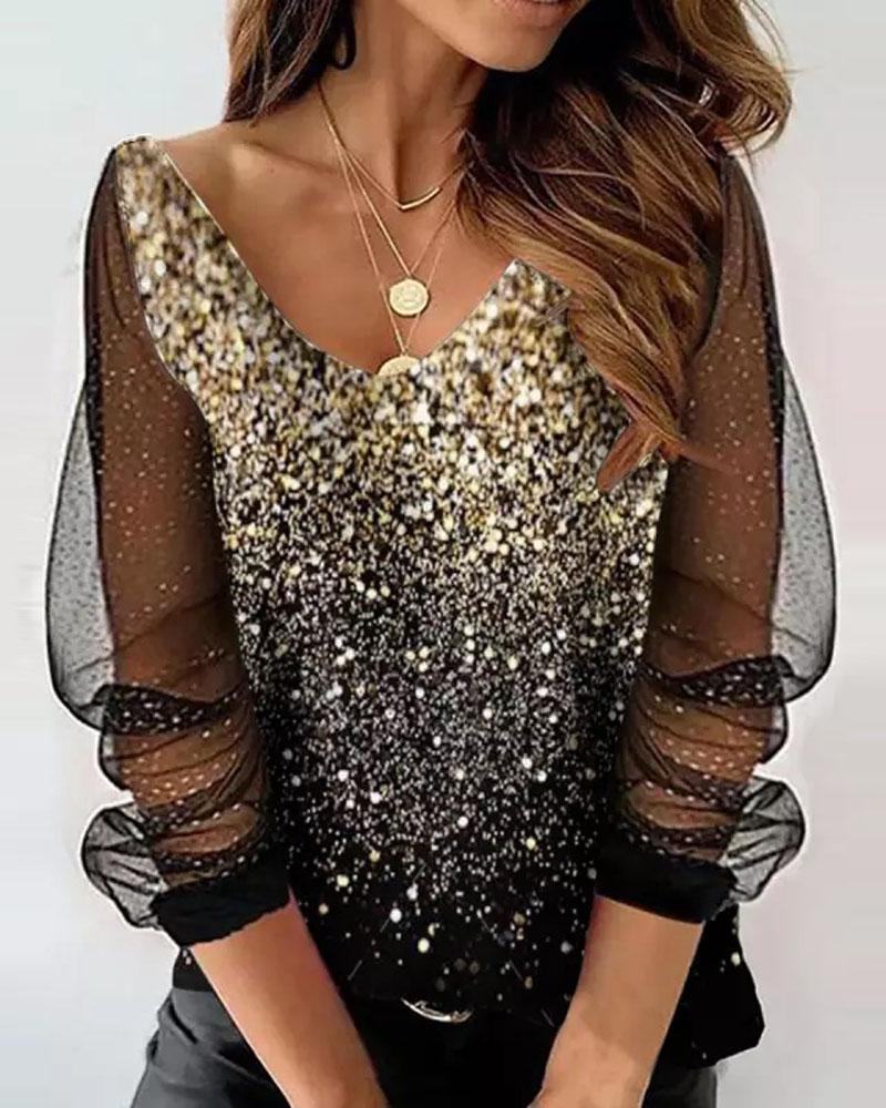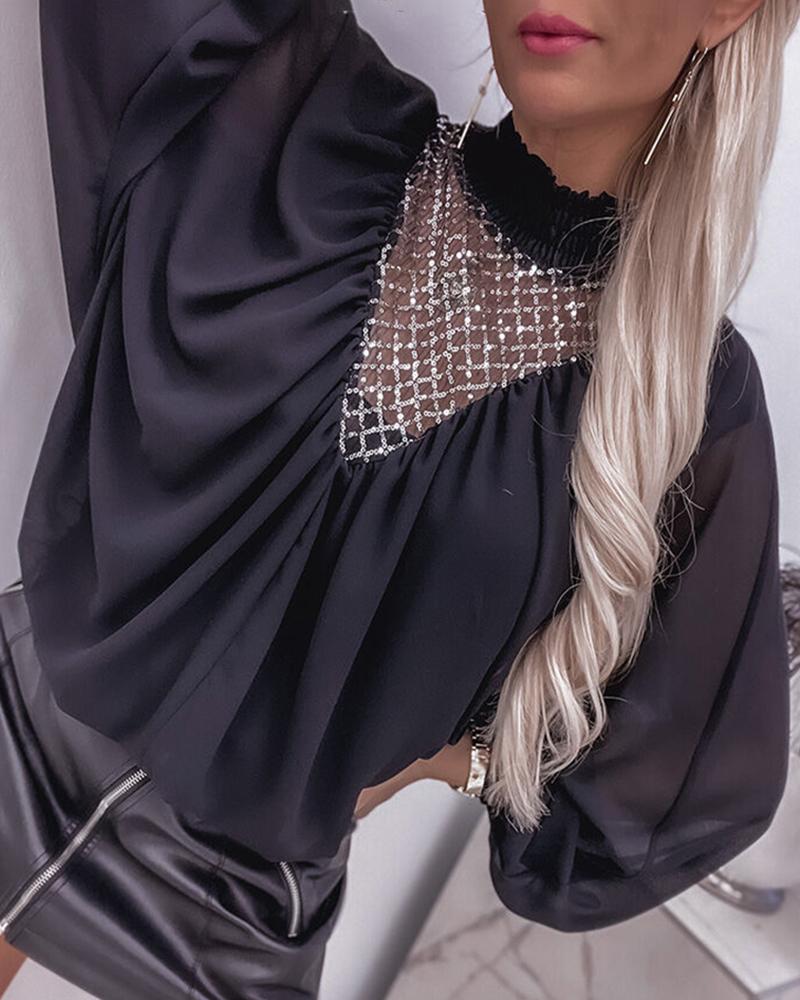Contrast Mesh Long Sleeve Glitter Top |