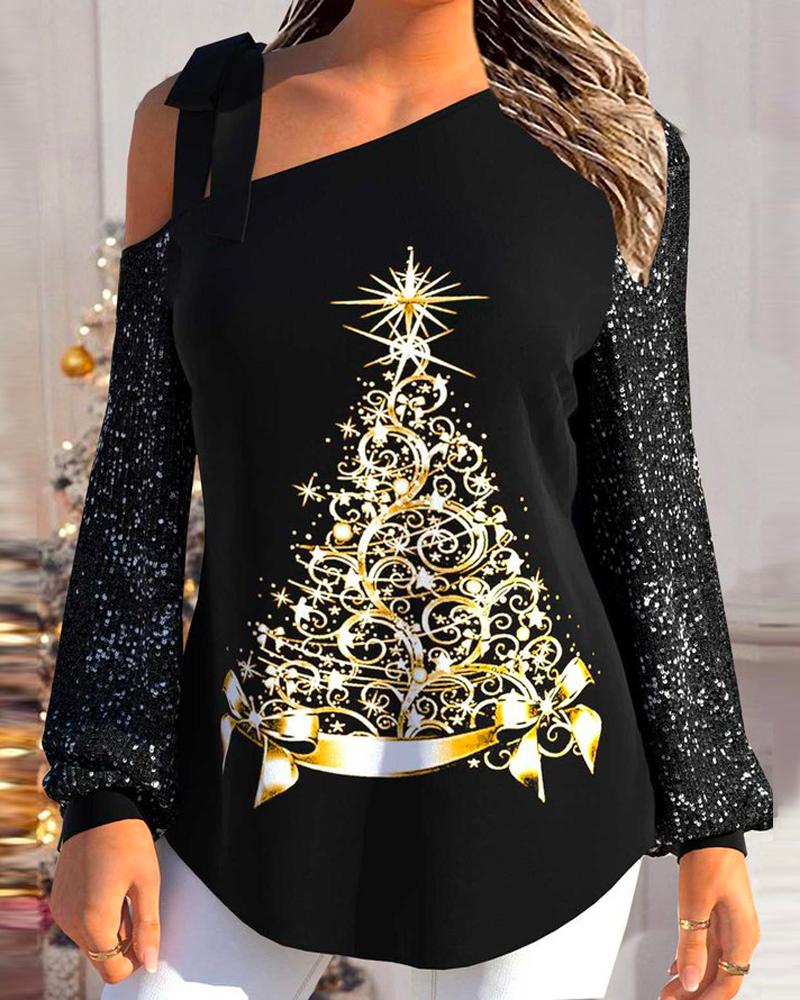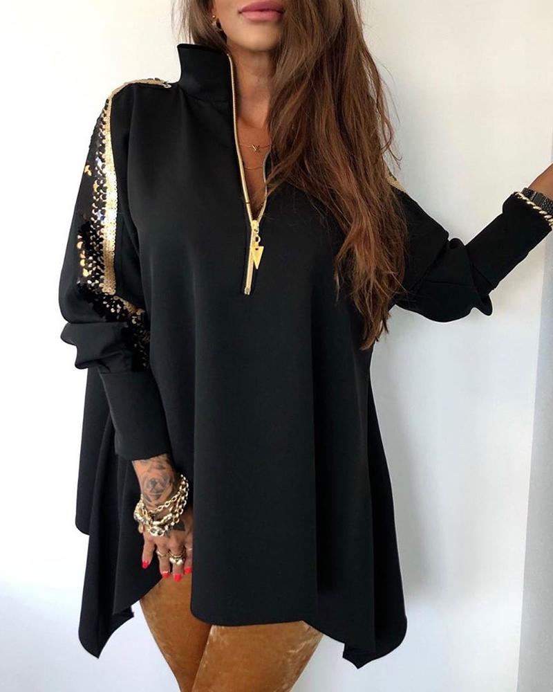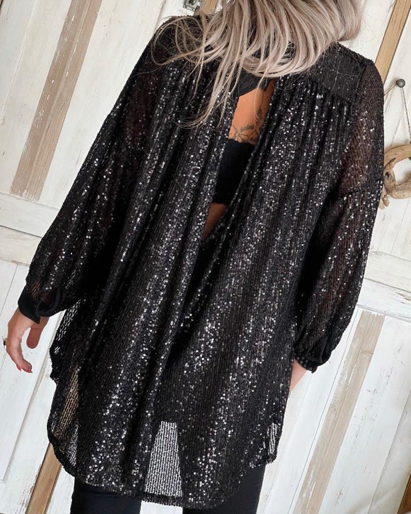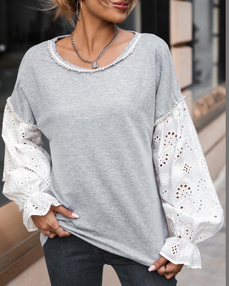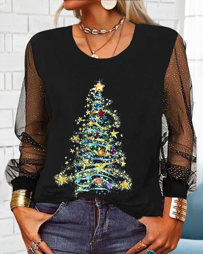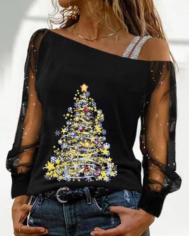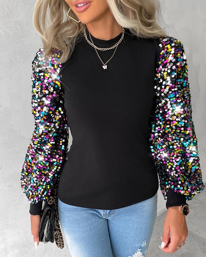 Contrast Mesh Long Sleeve Glitter Top |