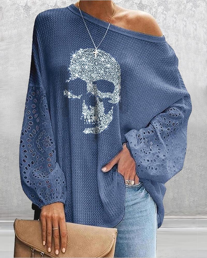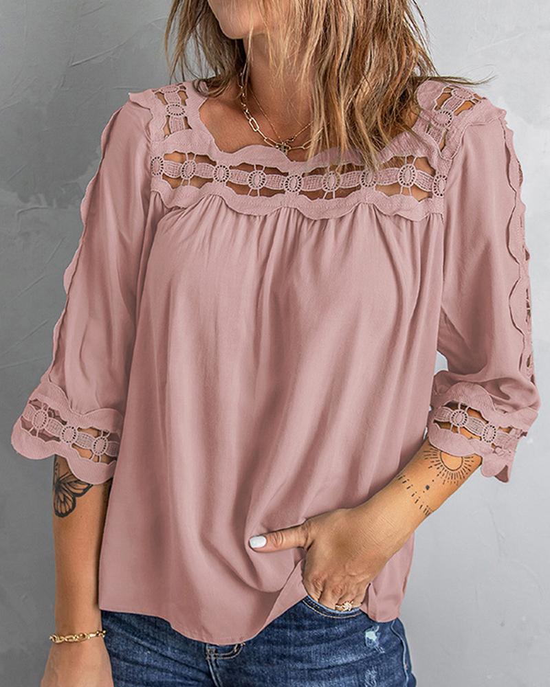 Long Sleeve Crochet Lace Scallop Trim Skinny Top |