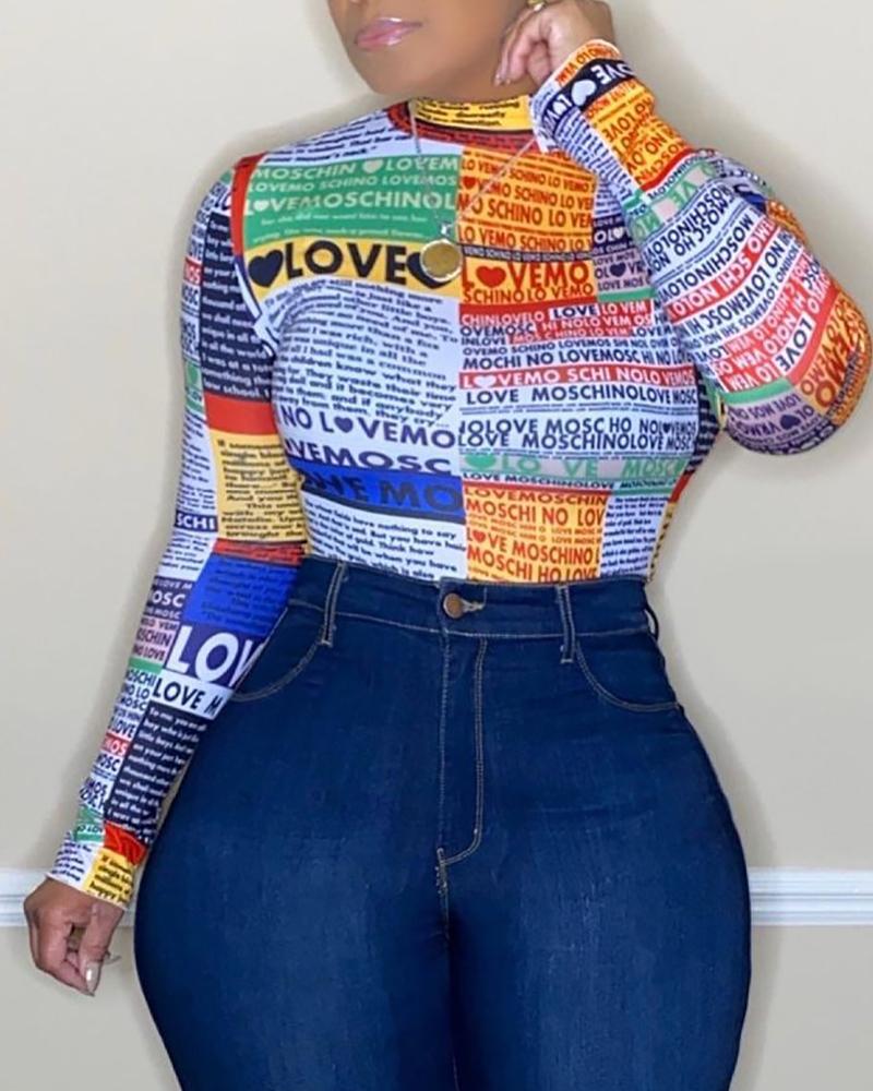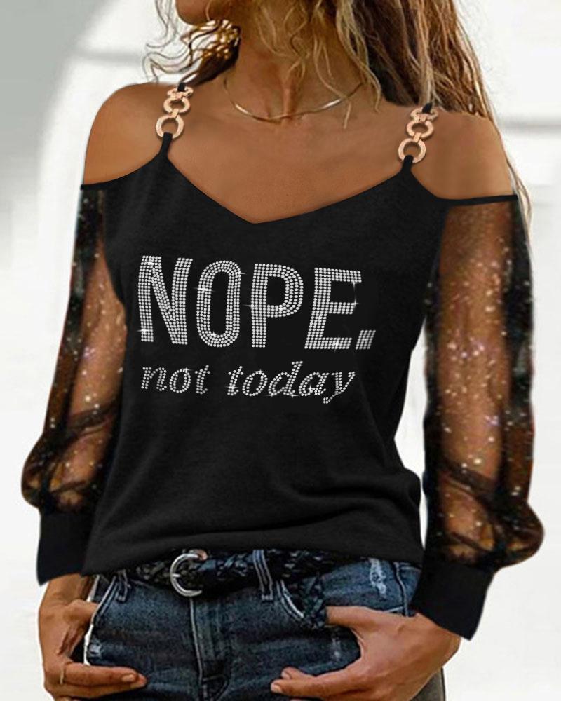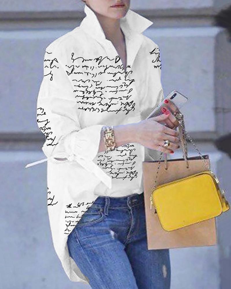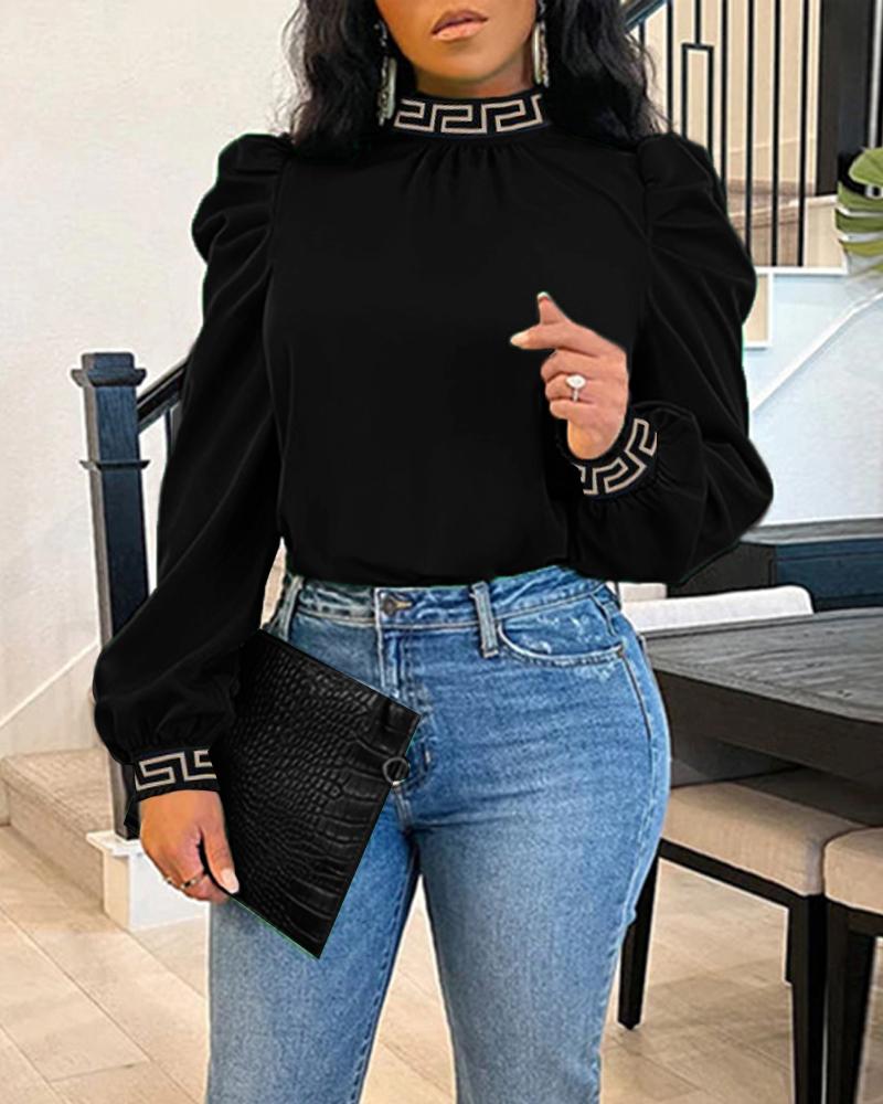 ChicMe Letter Print Puff Lantern Sleeve Top |