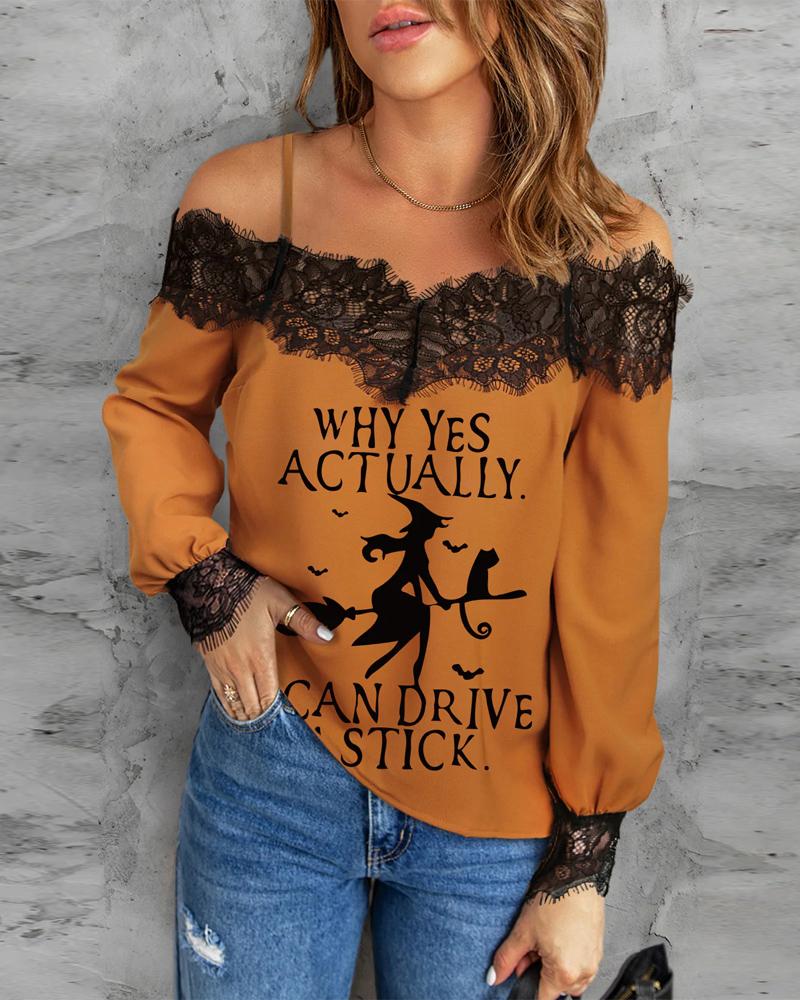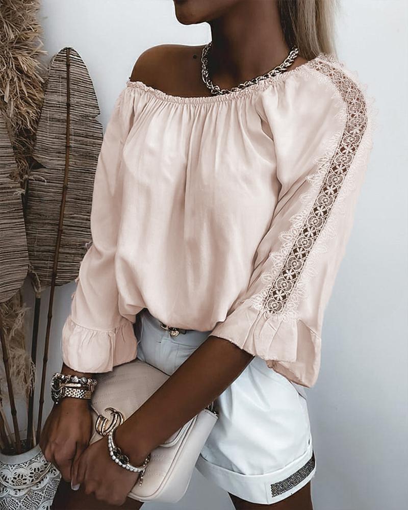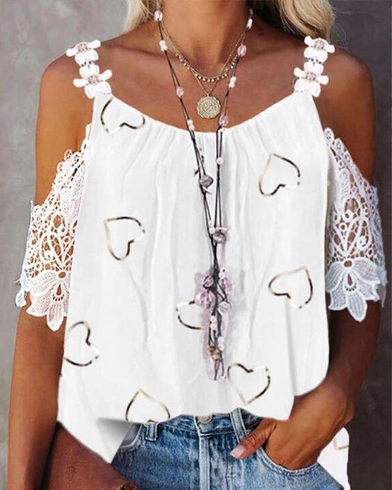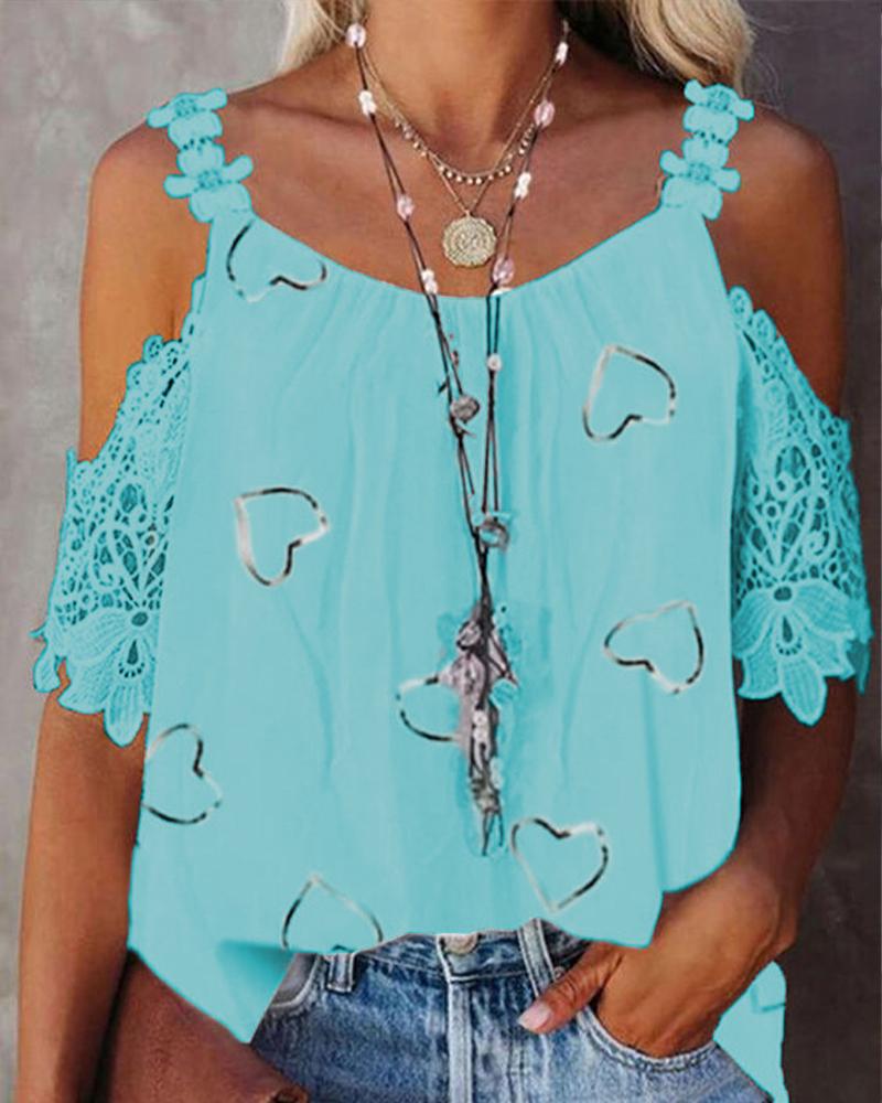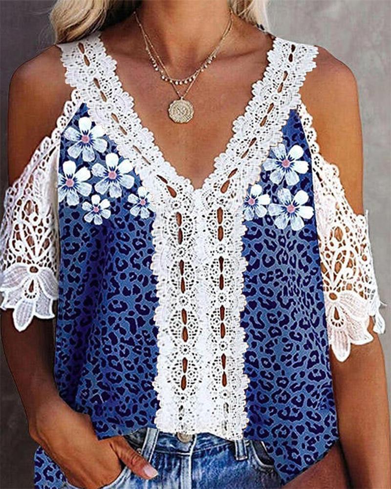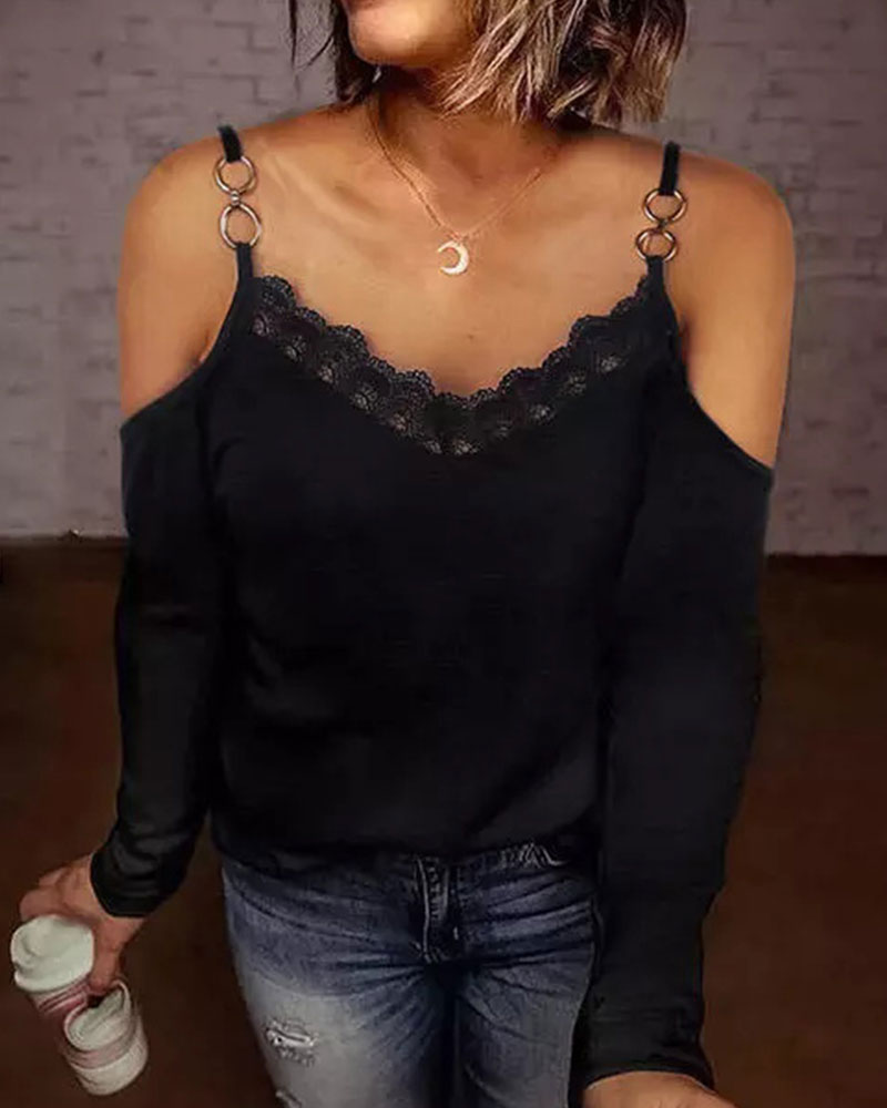 Contrast Lace Cold Shoulder Top |