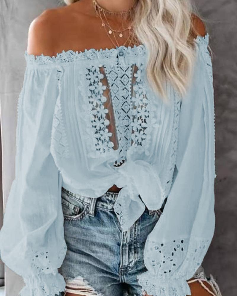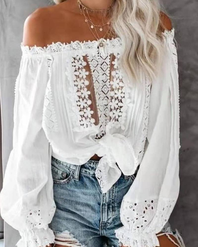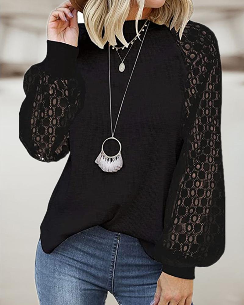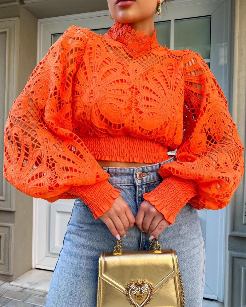 Cutout Backless Eyelash Lace Long Sleeve Women Top |