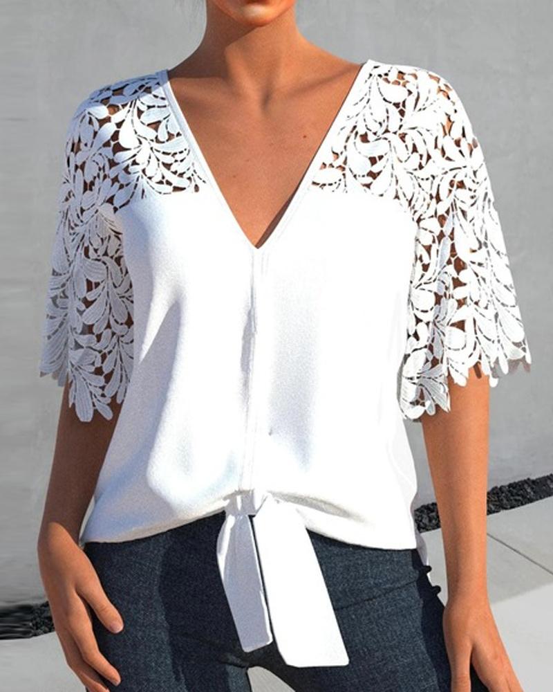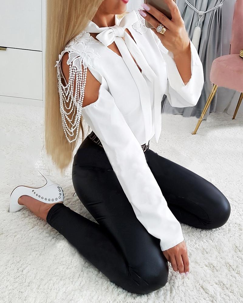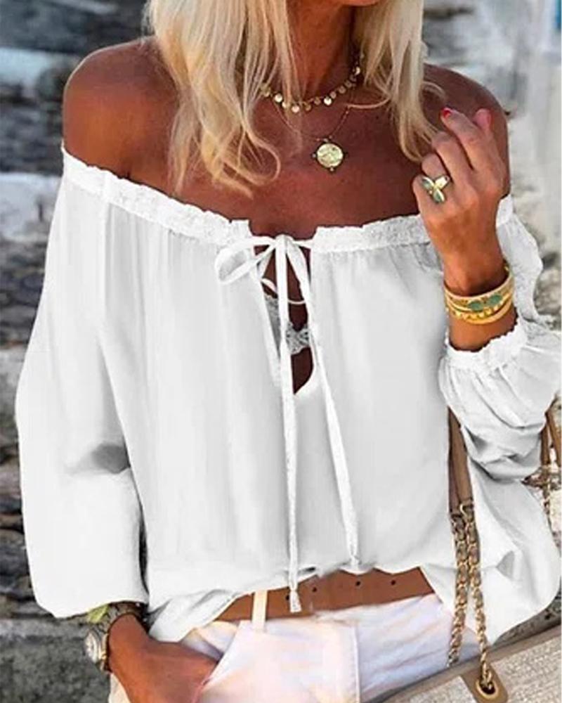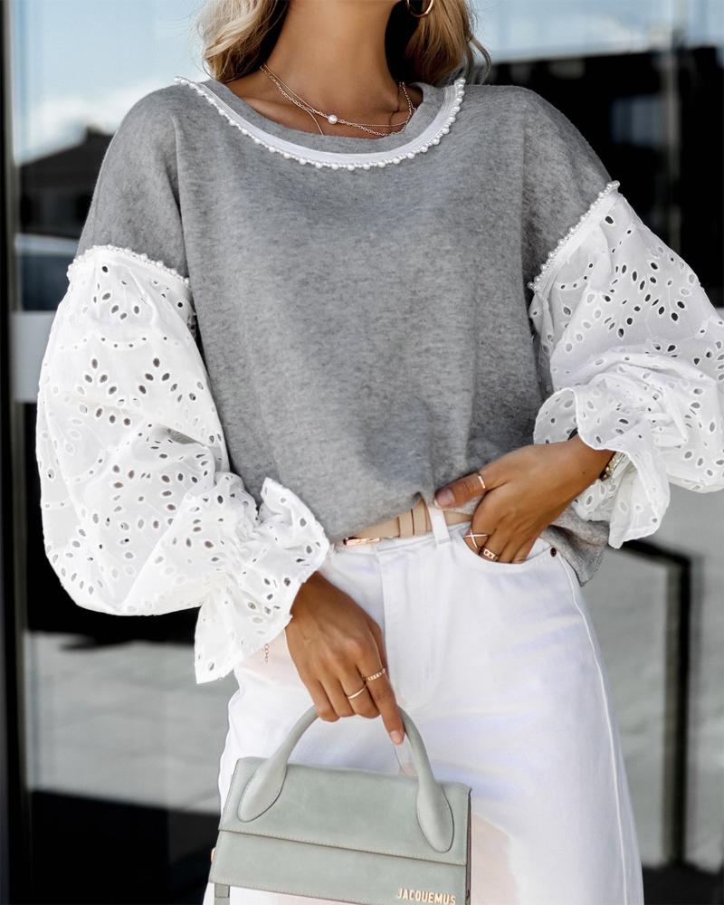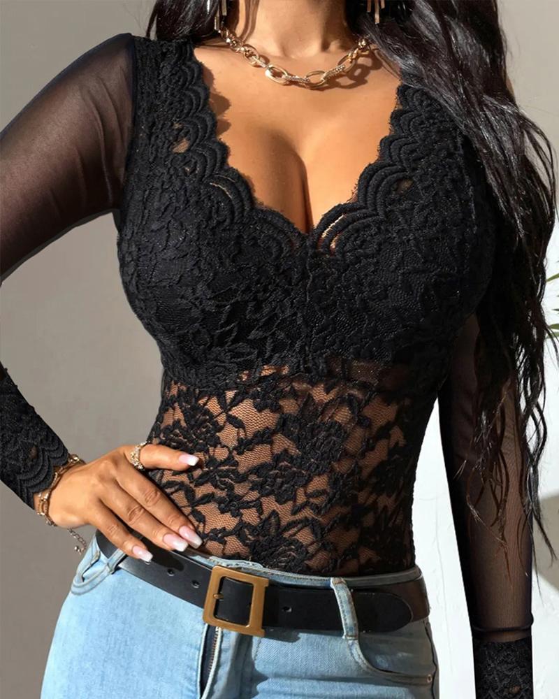 Cutout Backless Eyelash Lace Long Sleeve Women Top |
