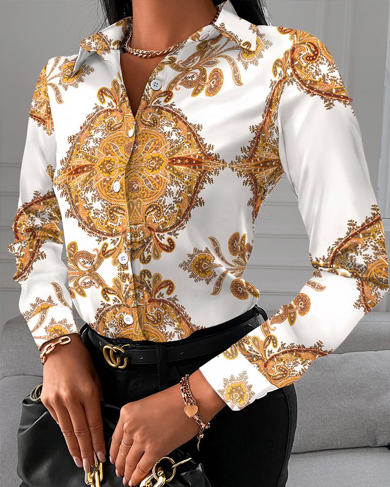 Baroque Scarf Print Long Sleeve Button Down Shirt |