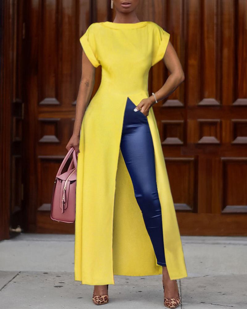 Plus Size Ruched High Slit Longline Top |