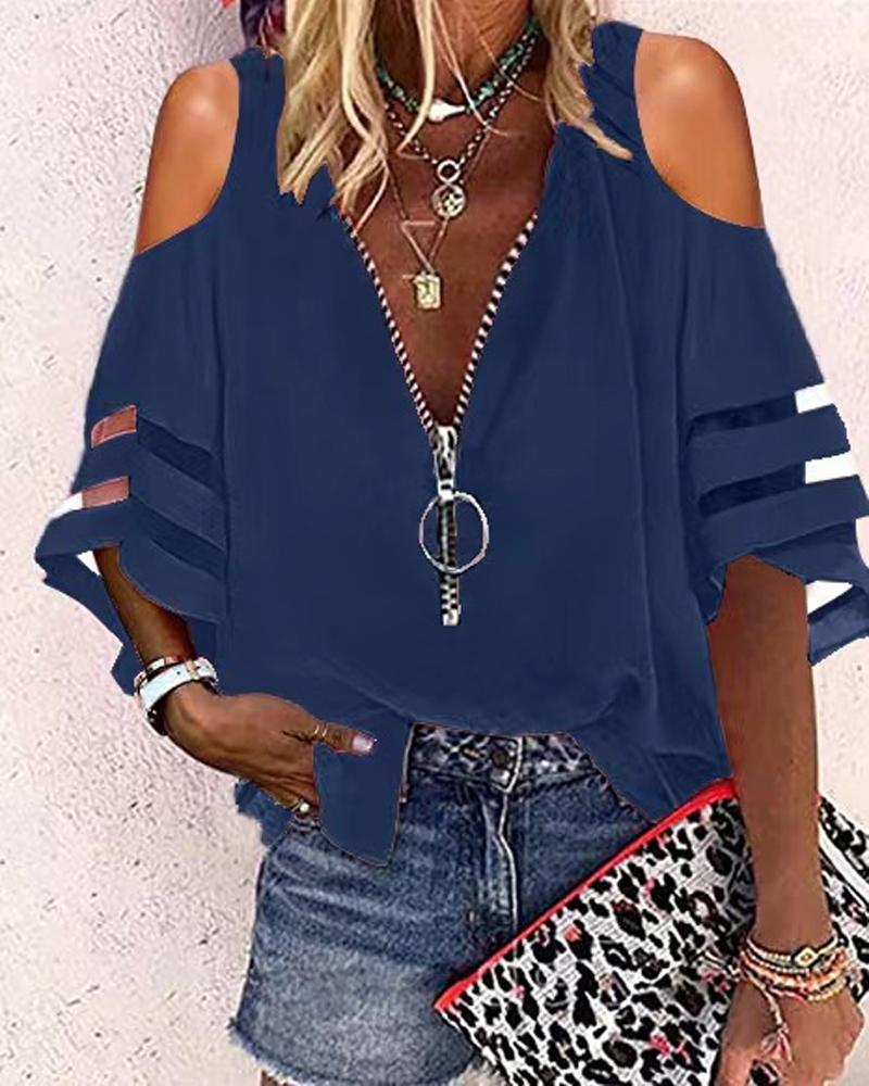 Plus Size Contrast Mesh Cold Shoulder Asymmetrical Top |