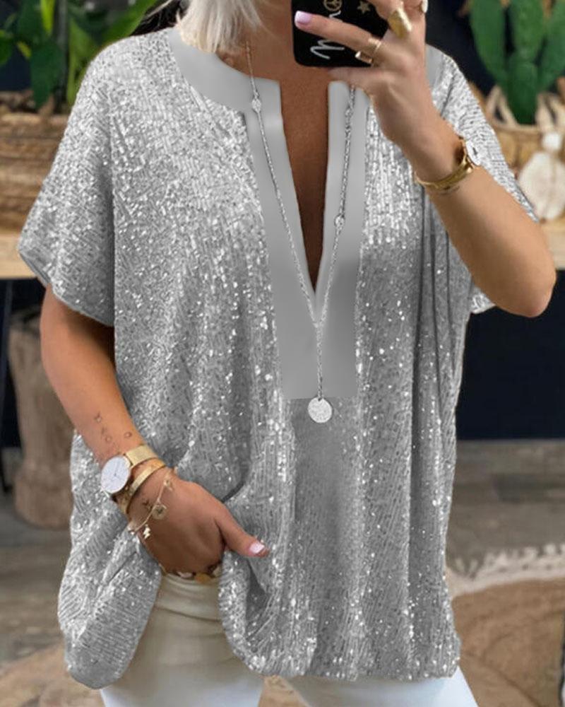Plus Size Short Sleeve Sequin Top |