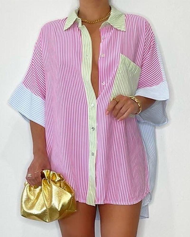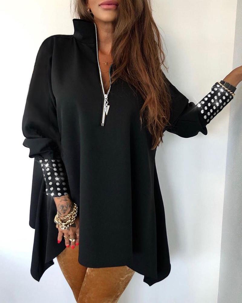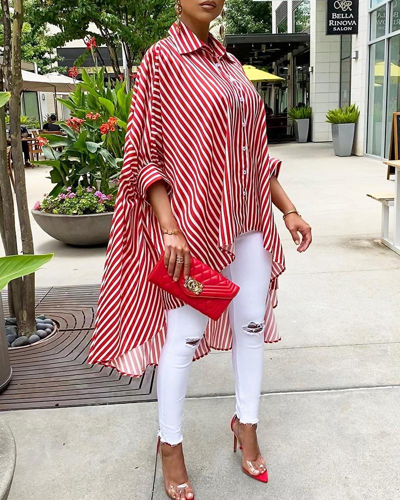 Plus Size Polka Dot Striped Print Long Sleeve Shirt |