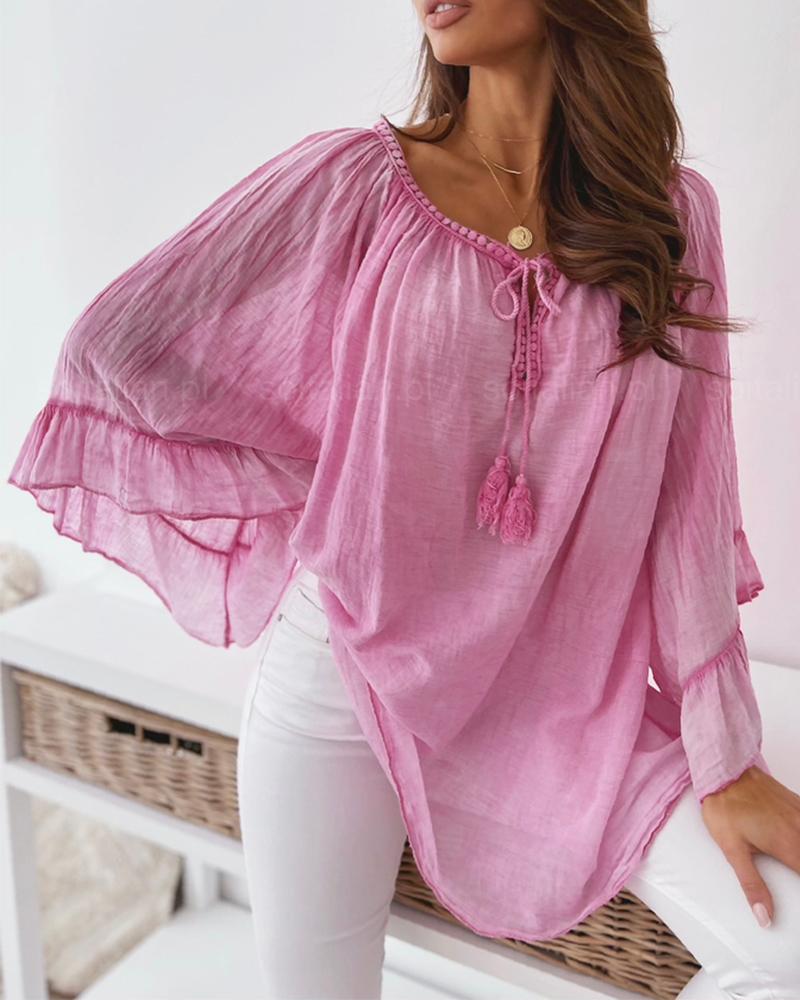 Plus Size Tassel Detail Long Sleeve Top |