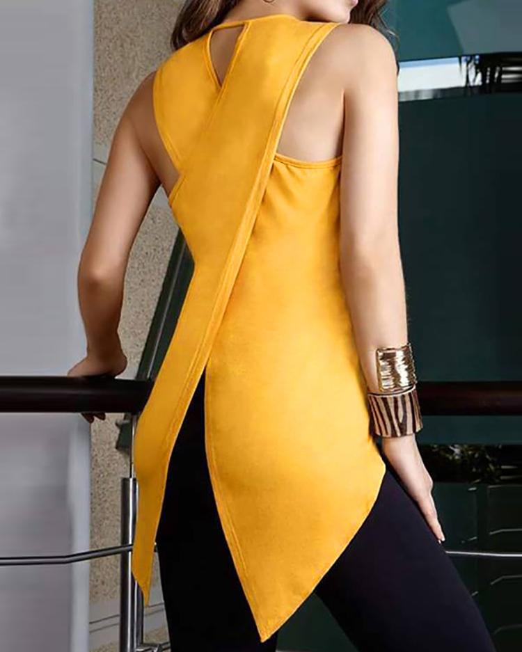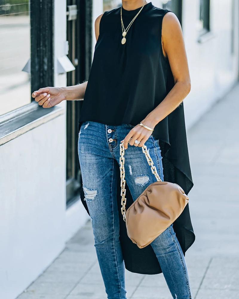 Sleeveless Satin Button Down Shirt |