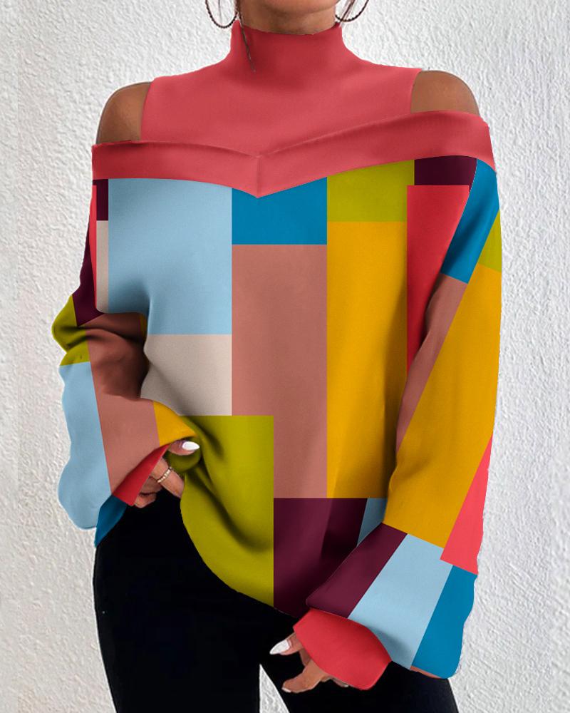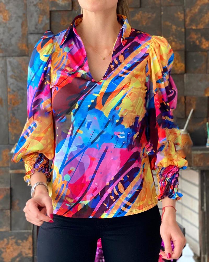 Plus Size Geometric Print Long Sleeve Shirt |