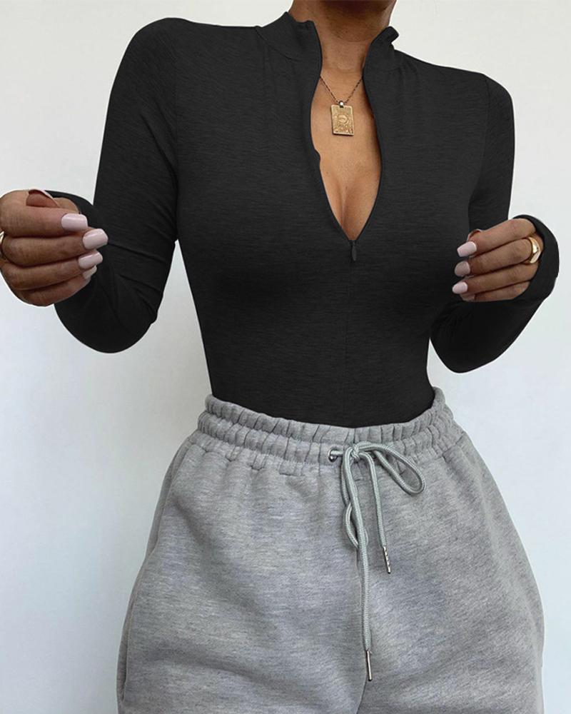Long Sleeve Zipper Design Skinny Bodysuit |