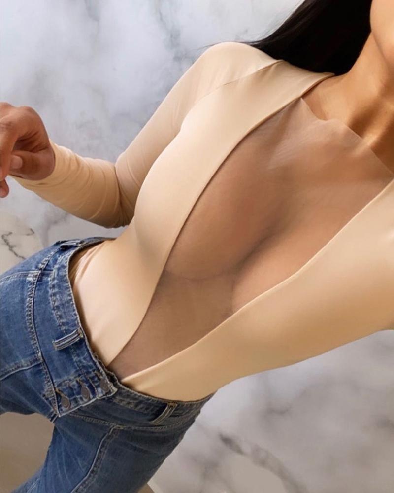 Hollow Out Long Sleeve Skinny Bodysuit |