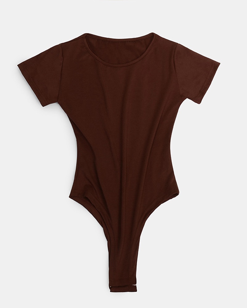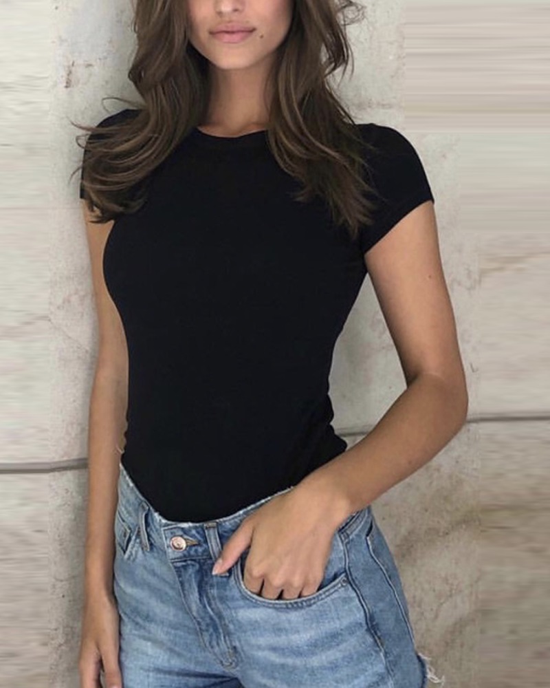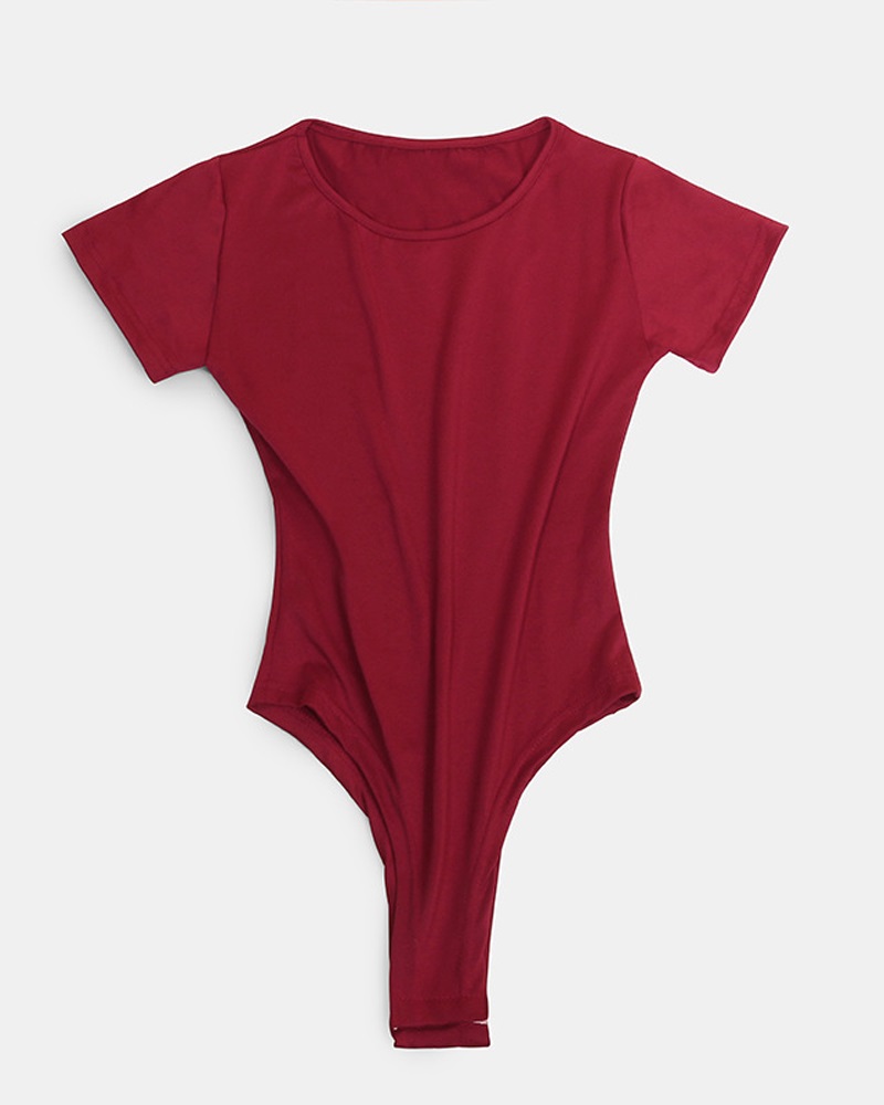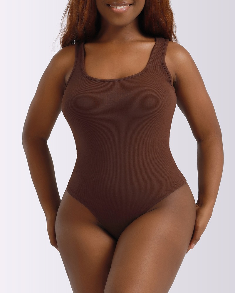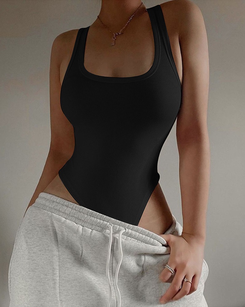 Plain U-Neck Ribbed Skinny Bodysuit |