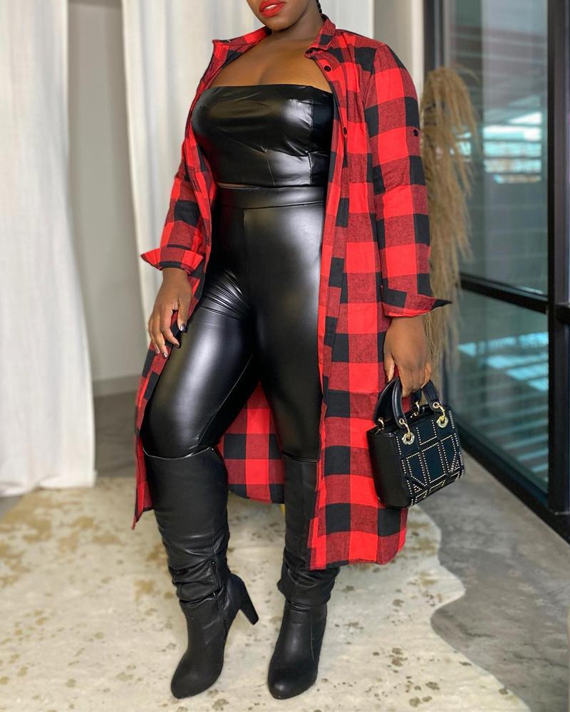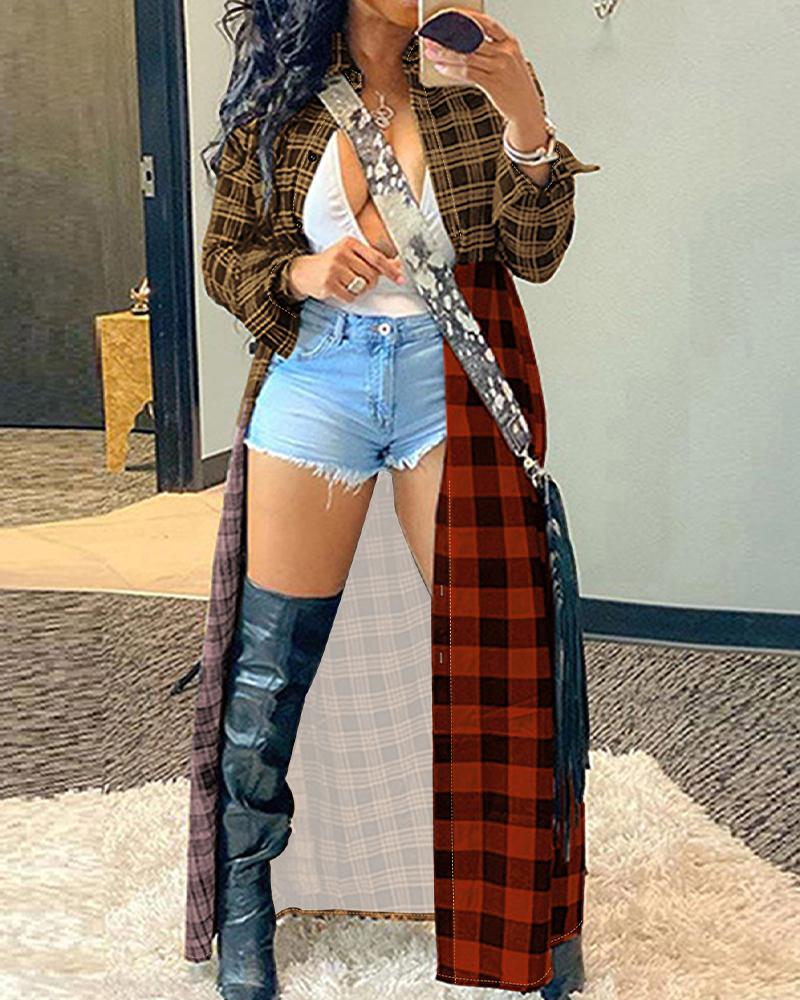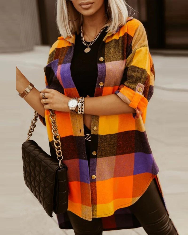 Plus Size Plaid Print Buttoned Longline Shacket |