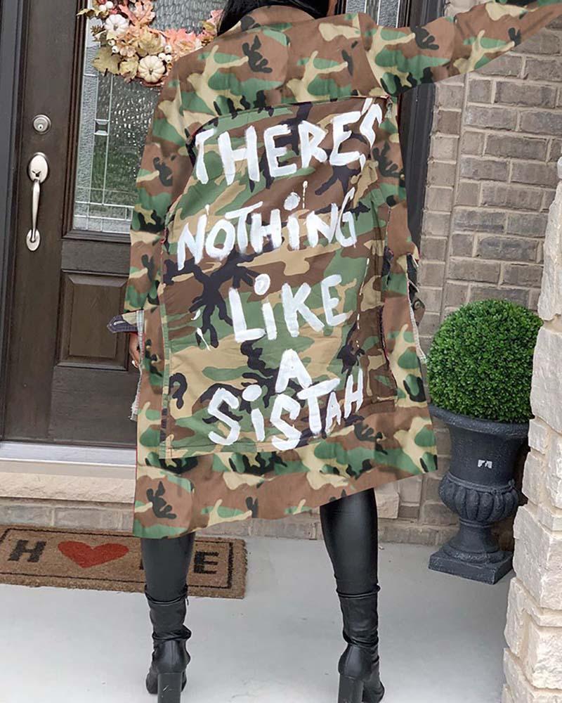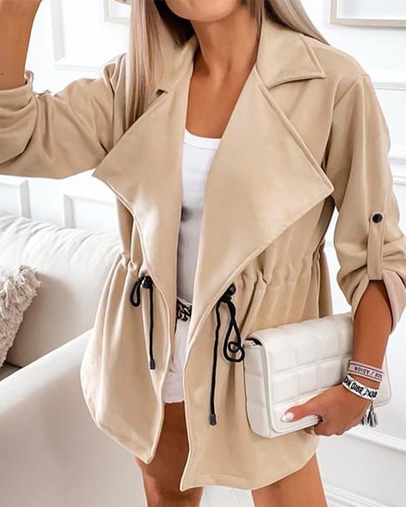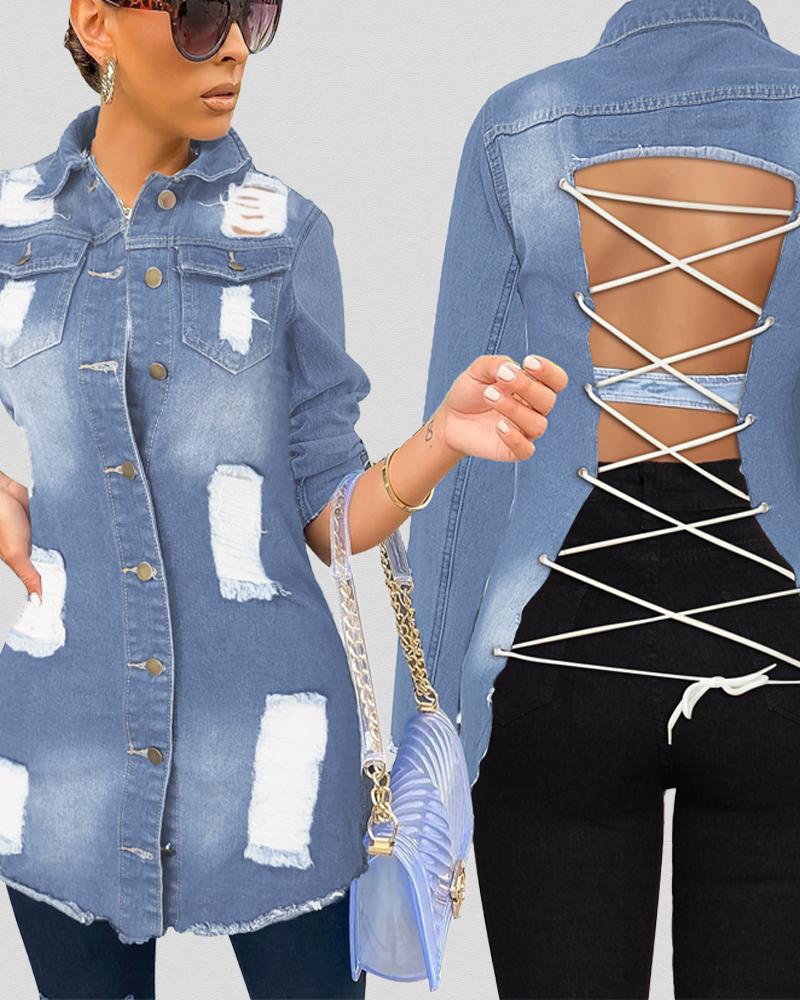 Eyelet Lace-Up Backless Ripped Buttoned Denim Coat |