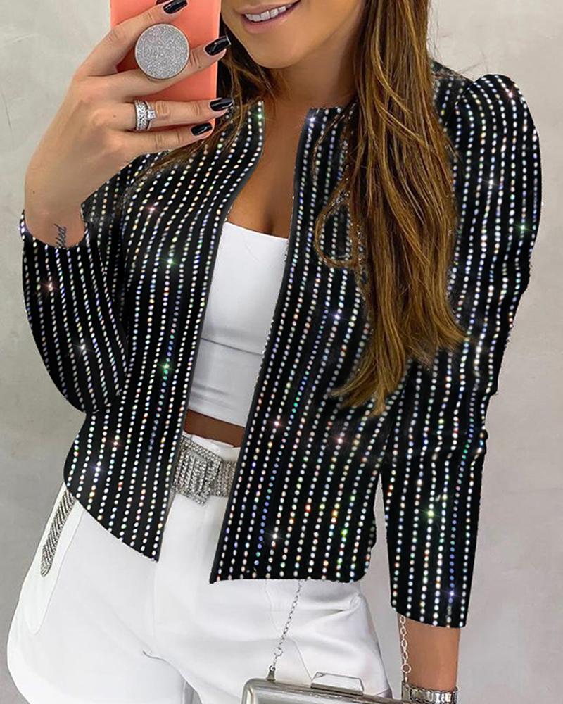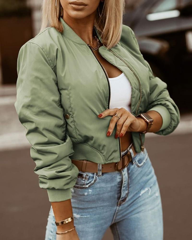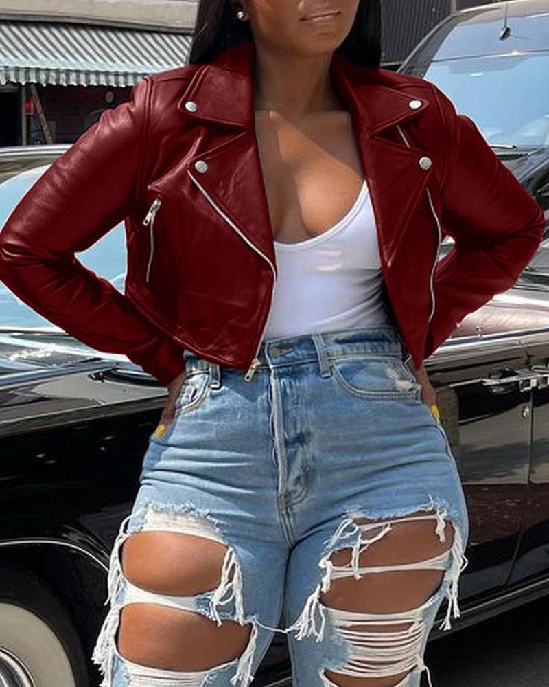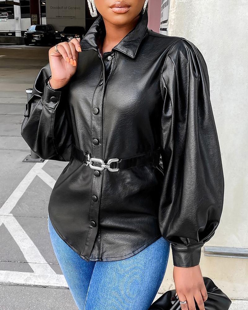 Puff Sleeve PU Leather Zipper Front Bomber Jacket |