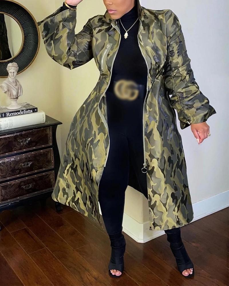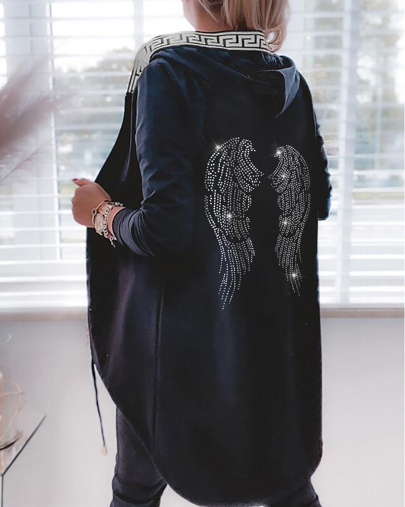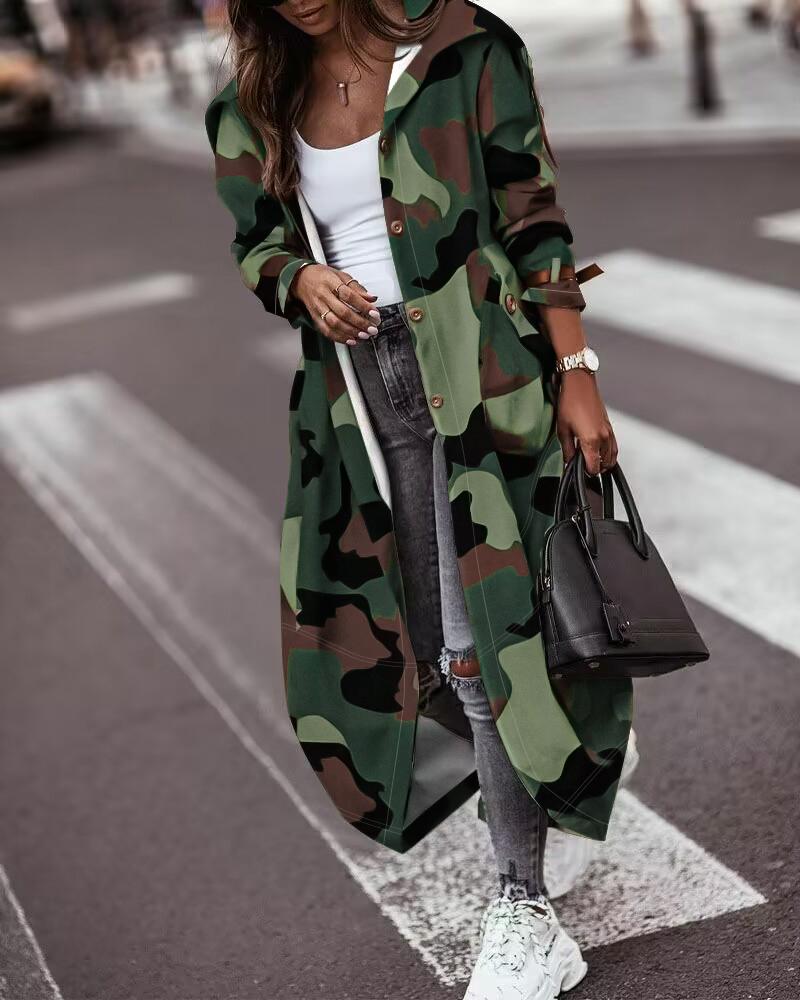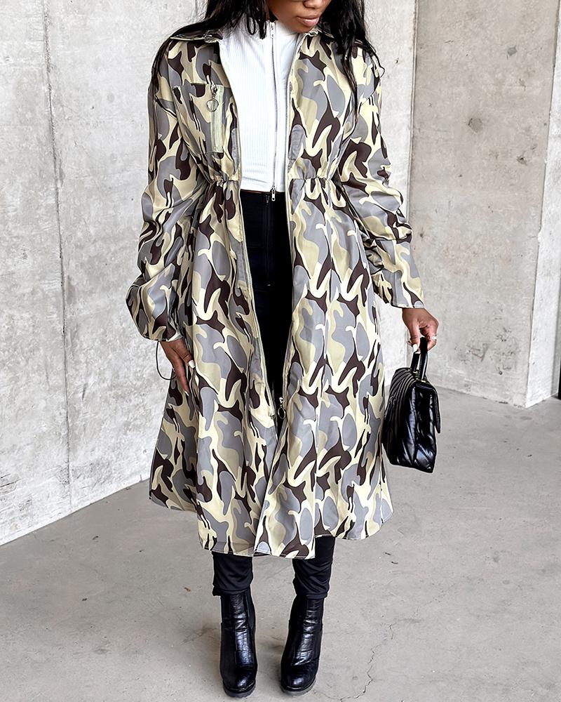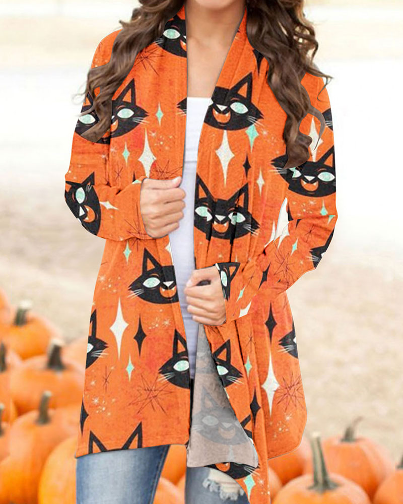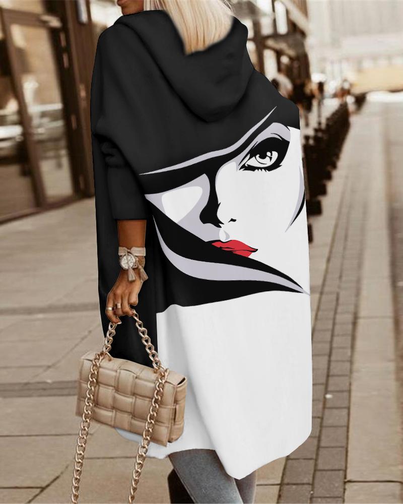 Plus Size Geo Print Open Front Split Hem Longline Coat |