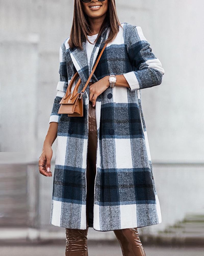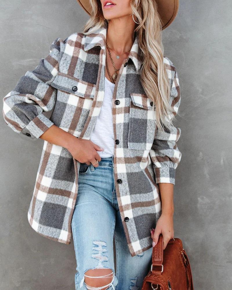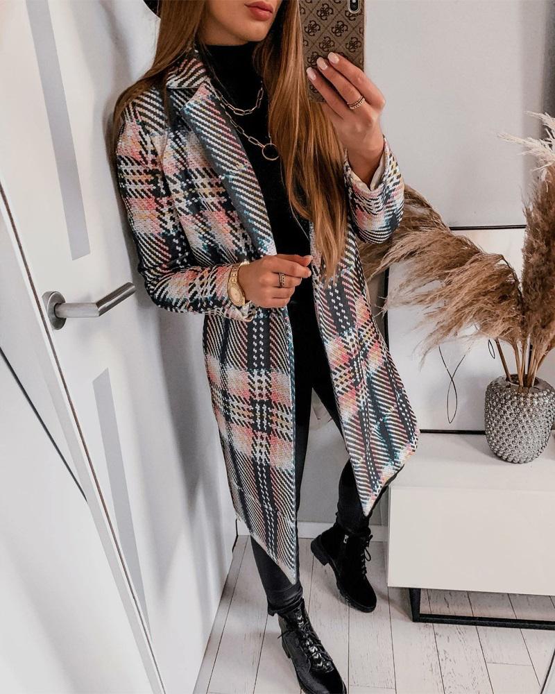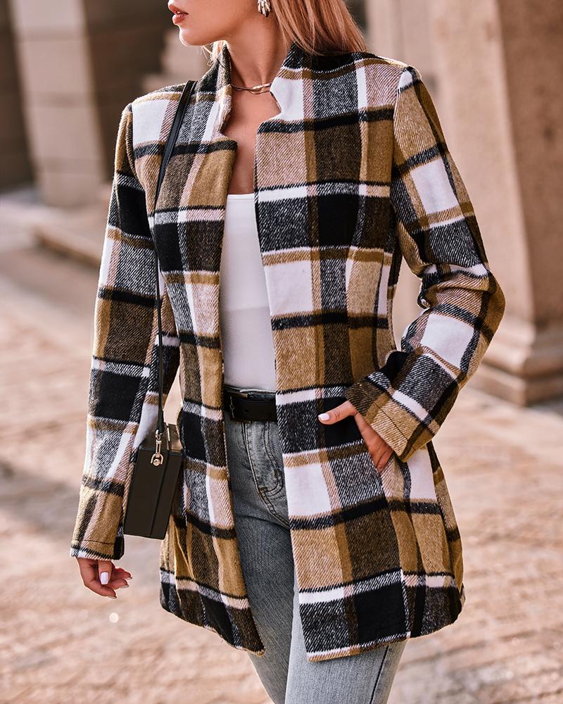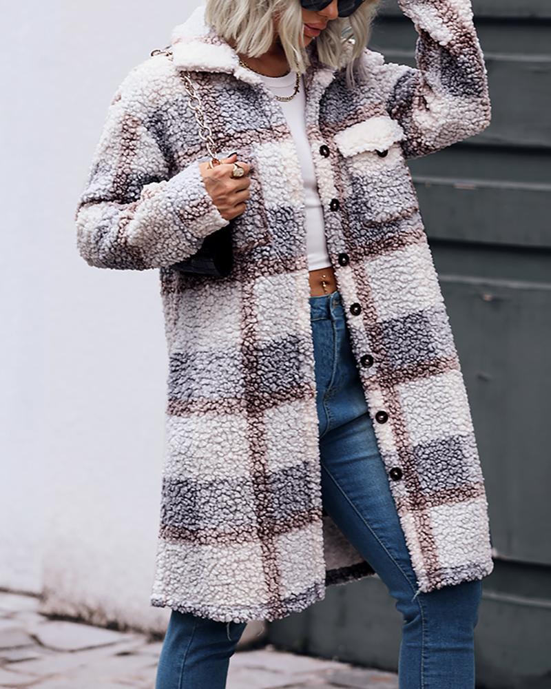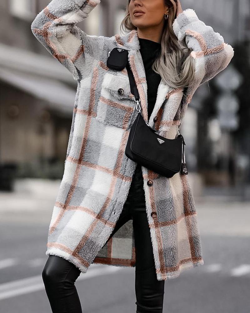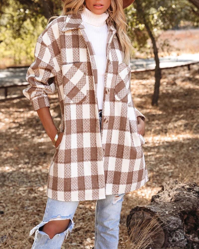 Plaid Print Pocket Design Long Sleeve Casual Coat |