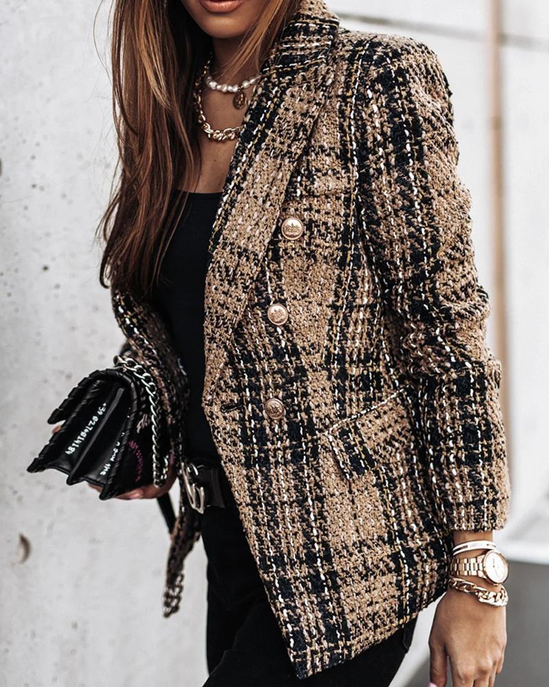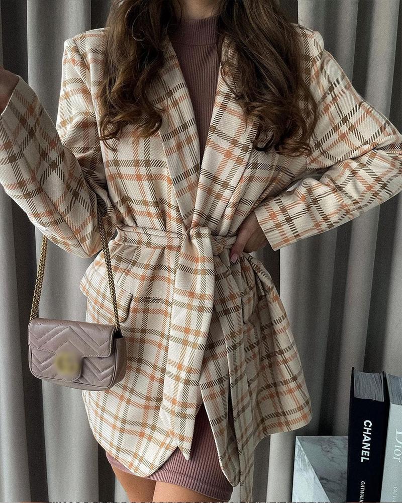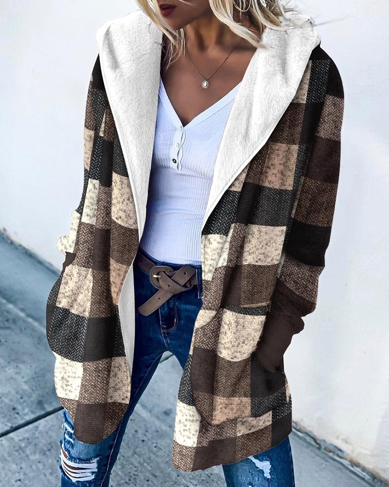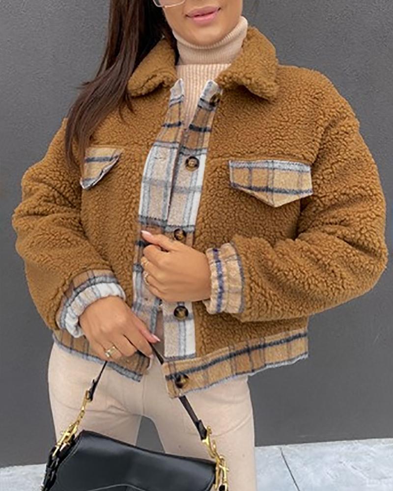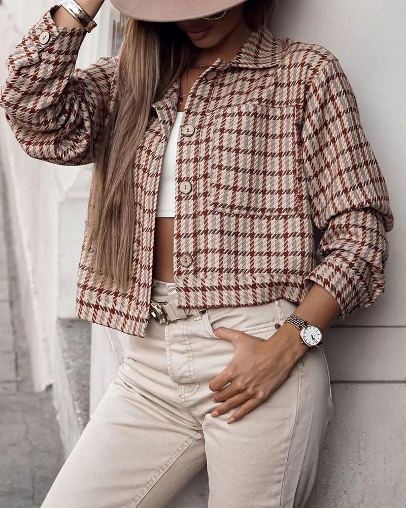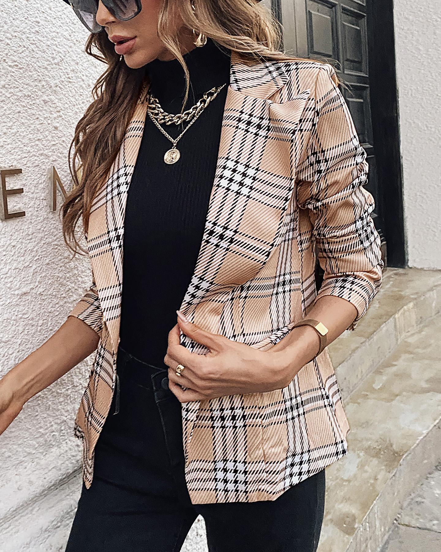 Plaid Print Pocket Design Long Sleeve Casual Coat |