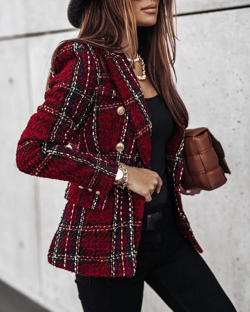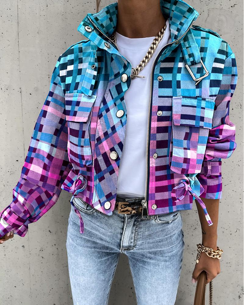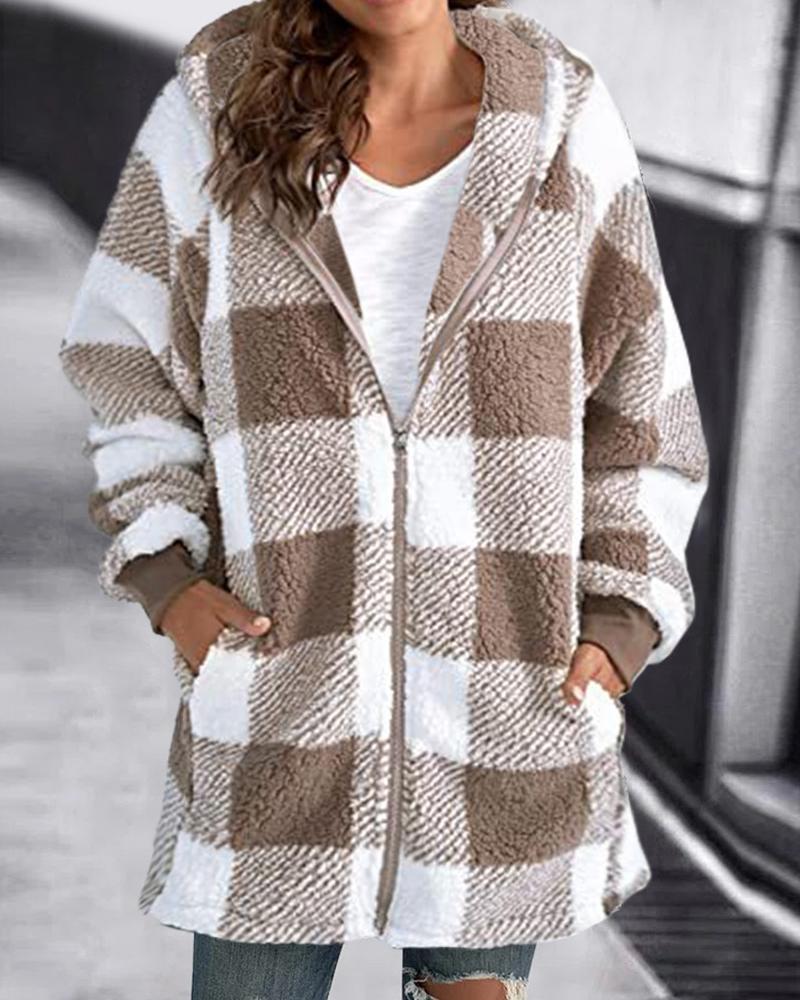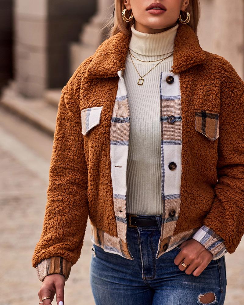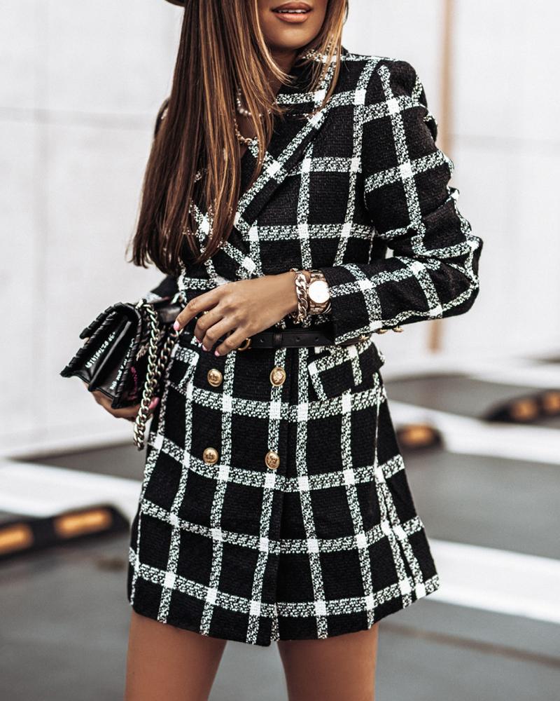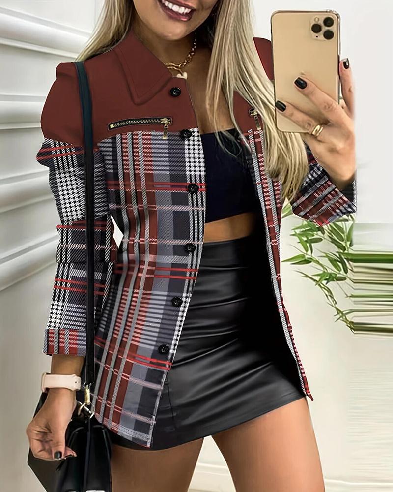 Plaid Print Pocket Design Long Sleeve Casual Coat |