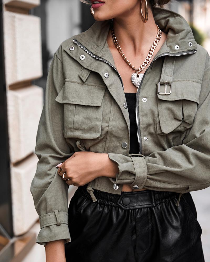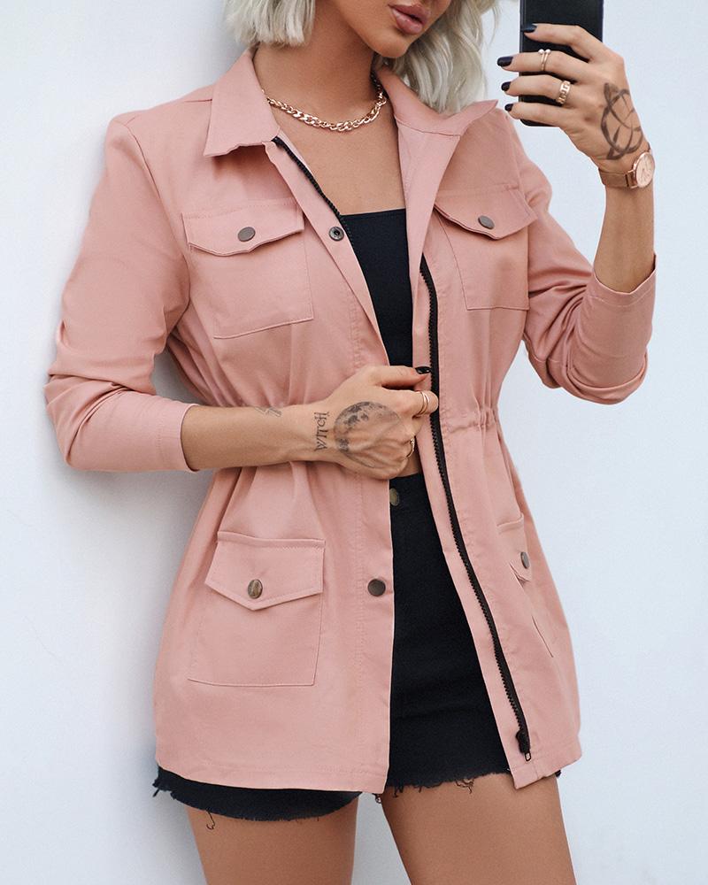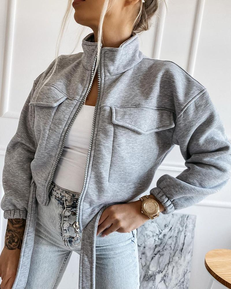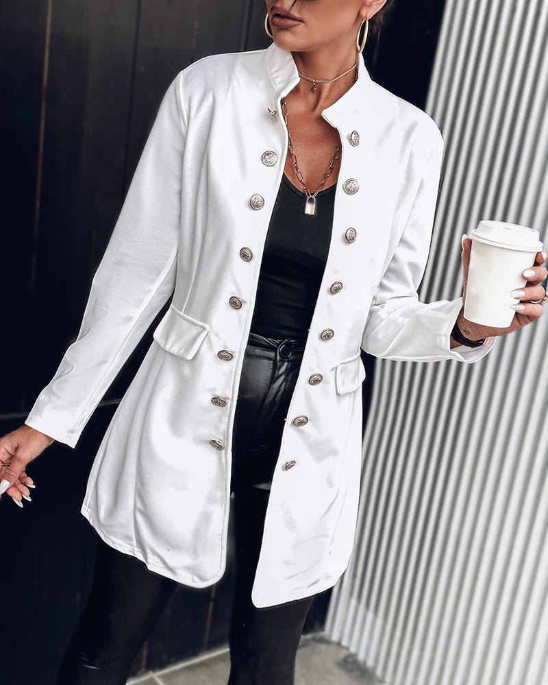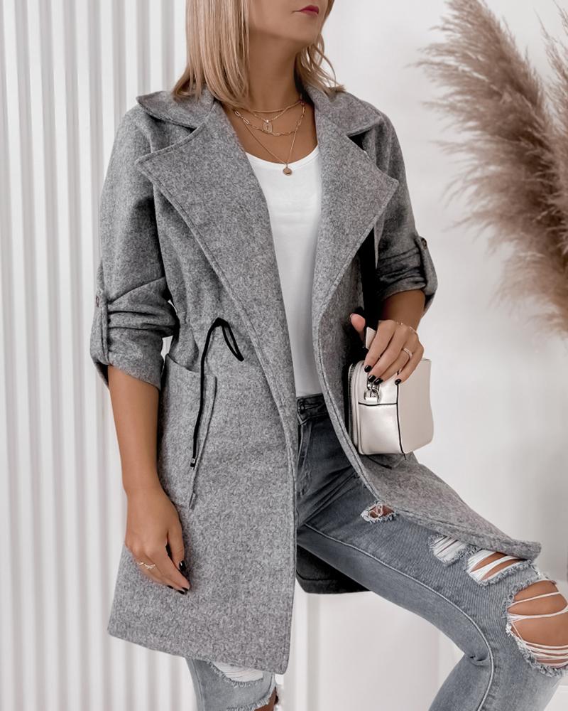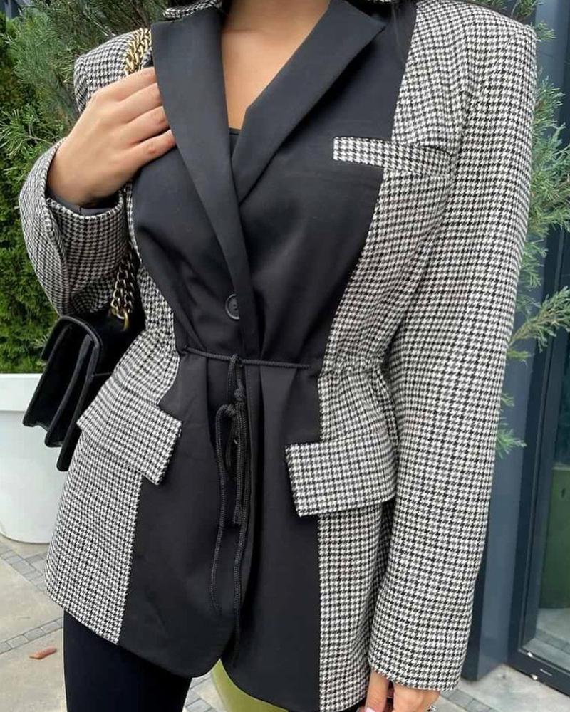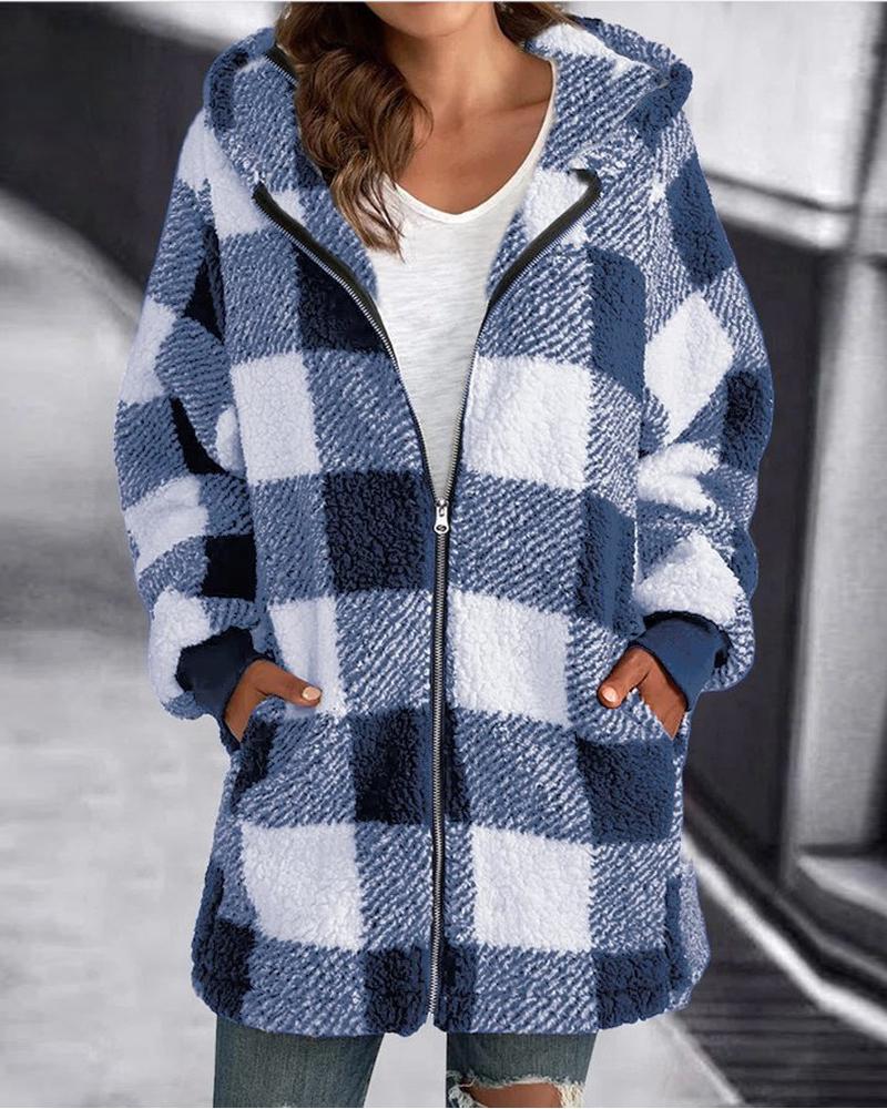 Plaid Print Pocket Design Long Sleeve Casual Coat |