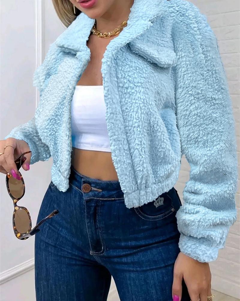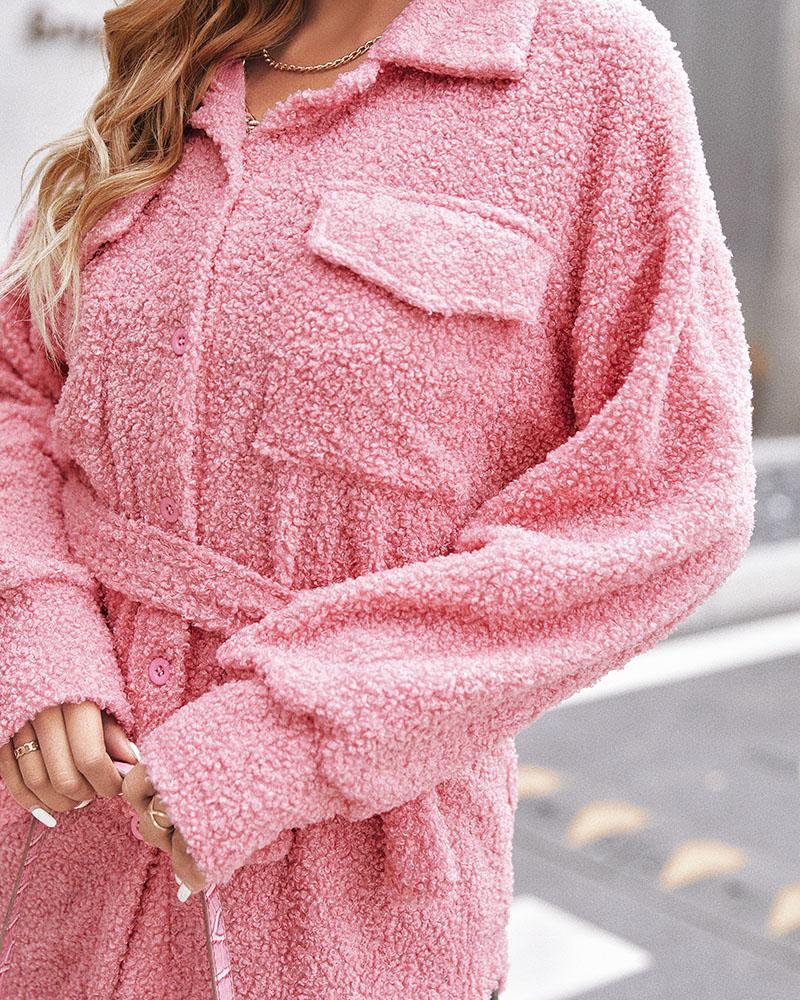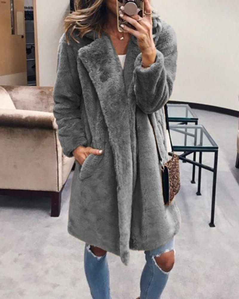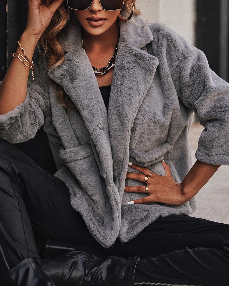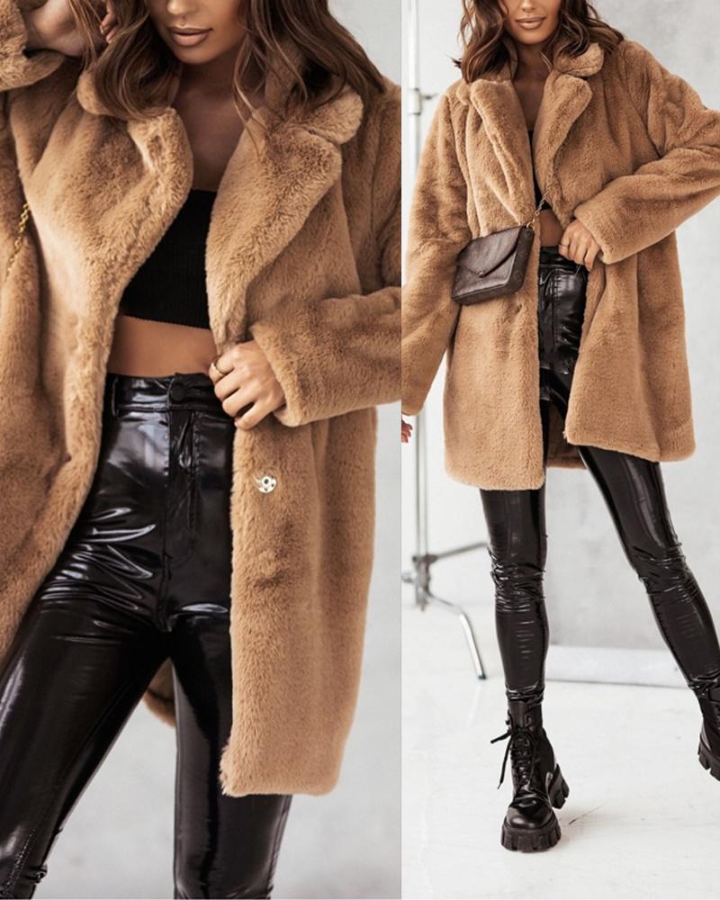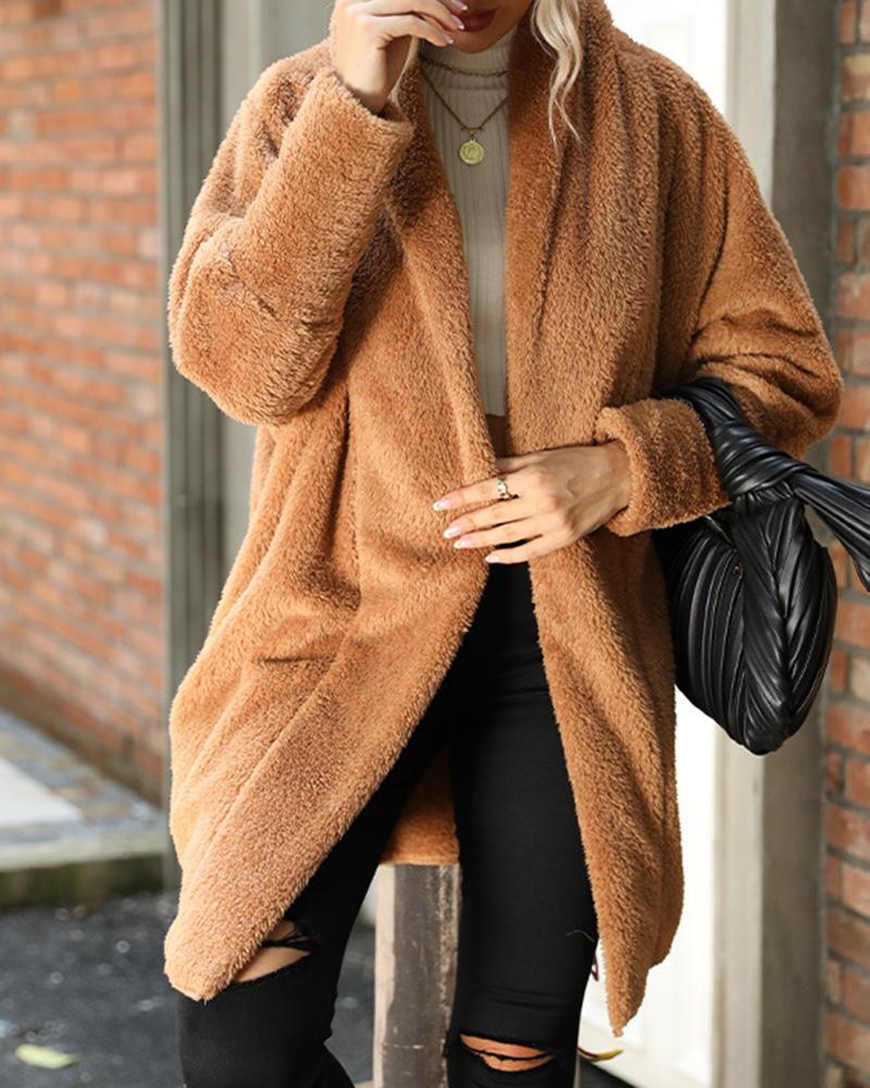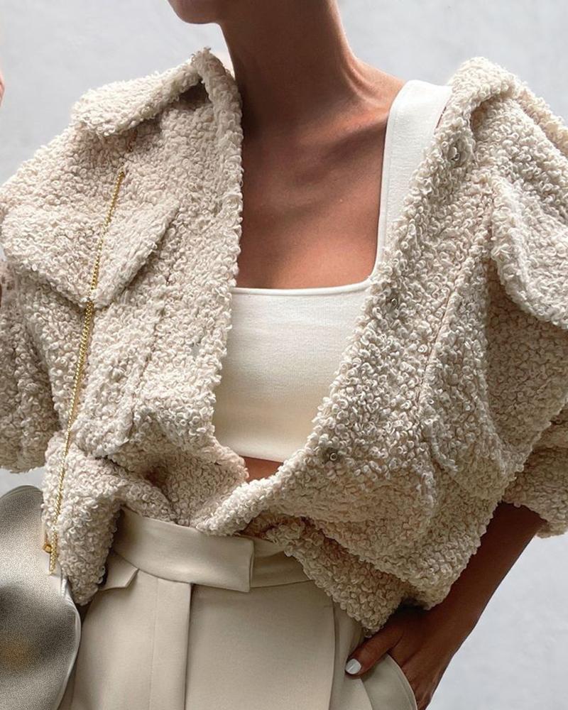 Button Pocket Decor Long Sleeve Teddy Coat |