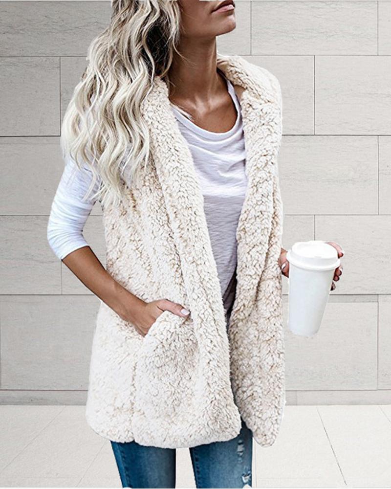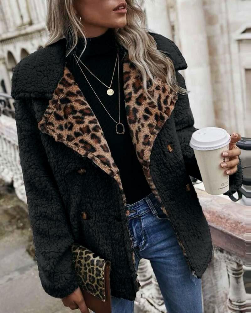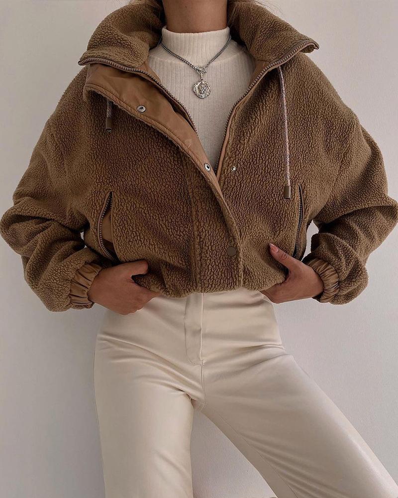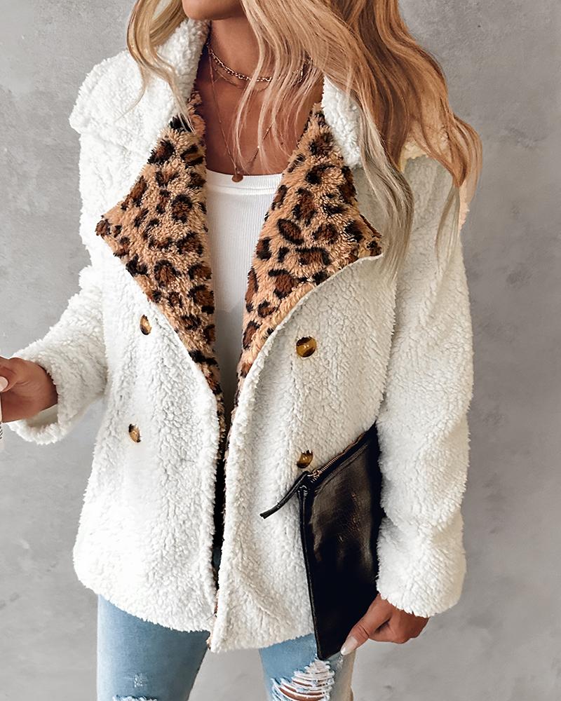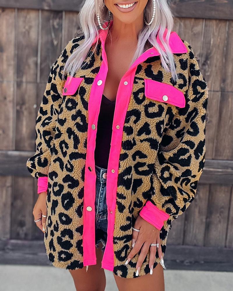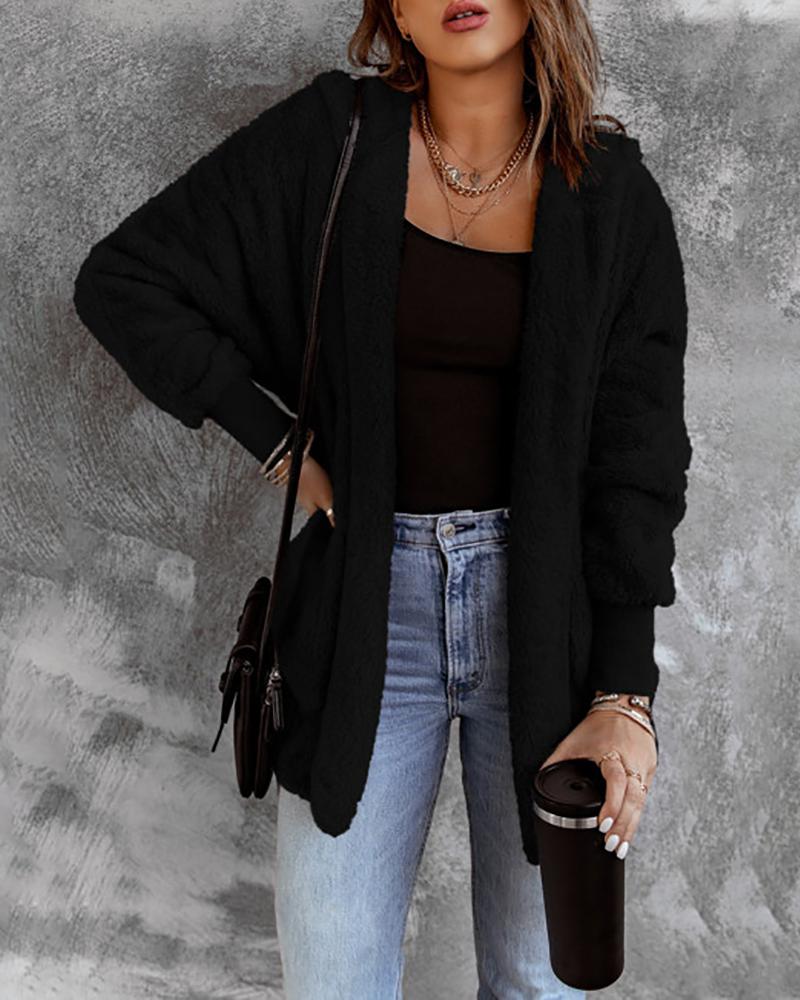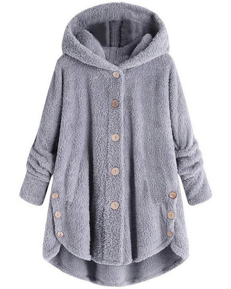 Button Pocket Decor Long Sleeve Teddy Coat |