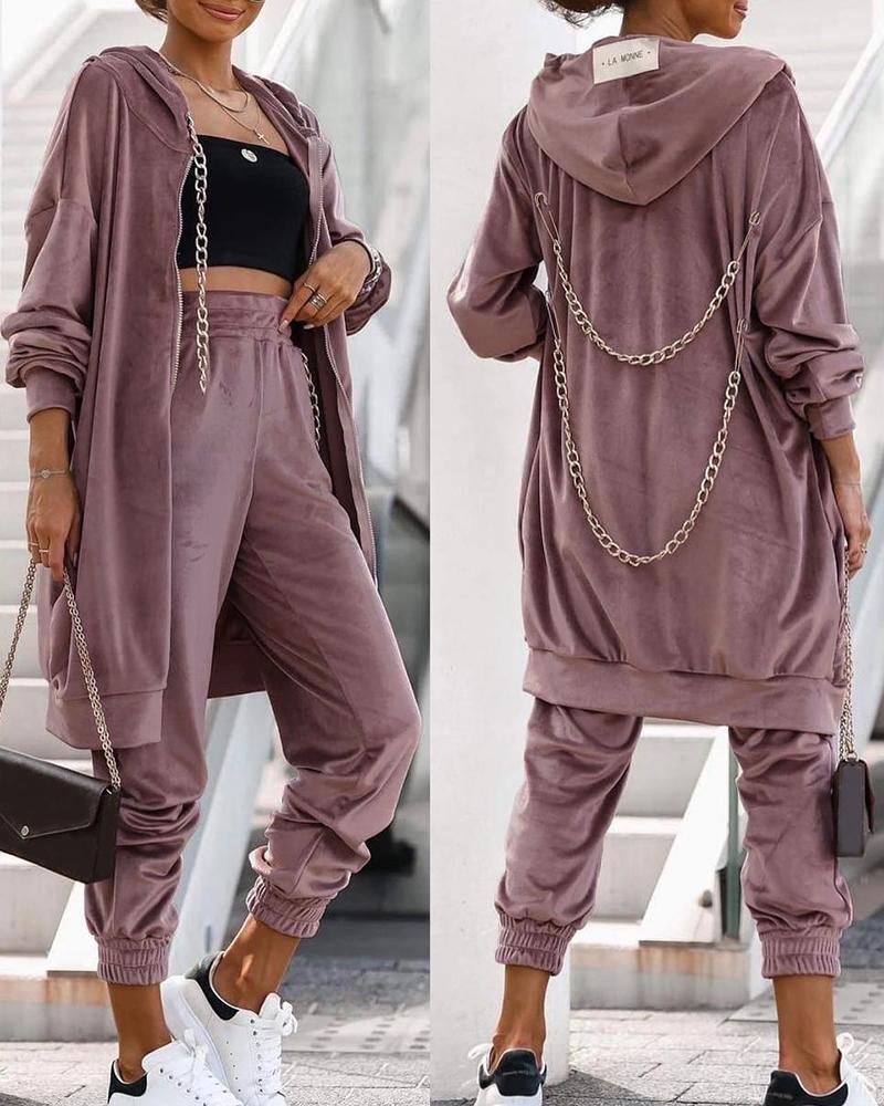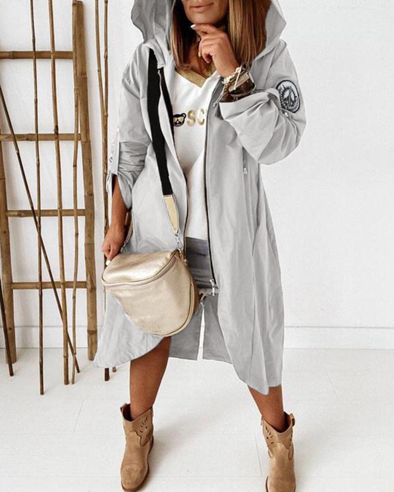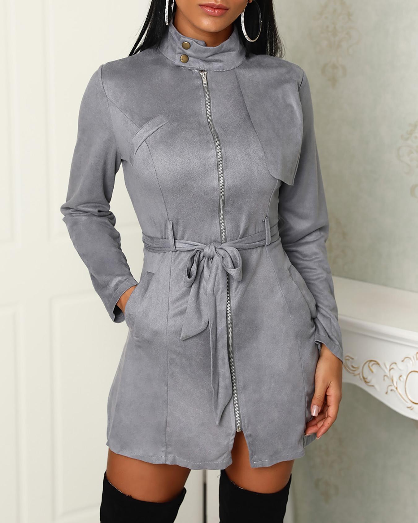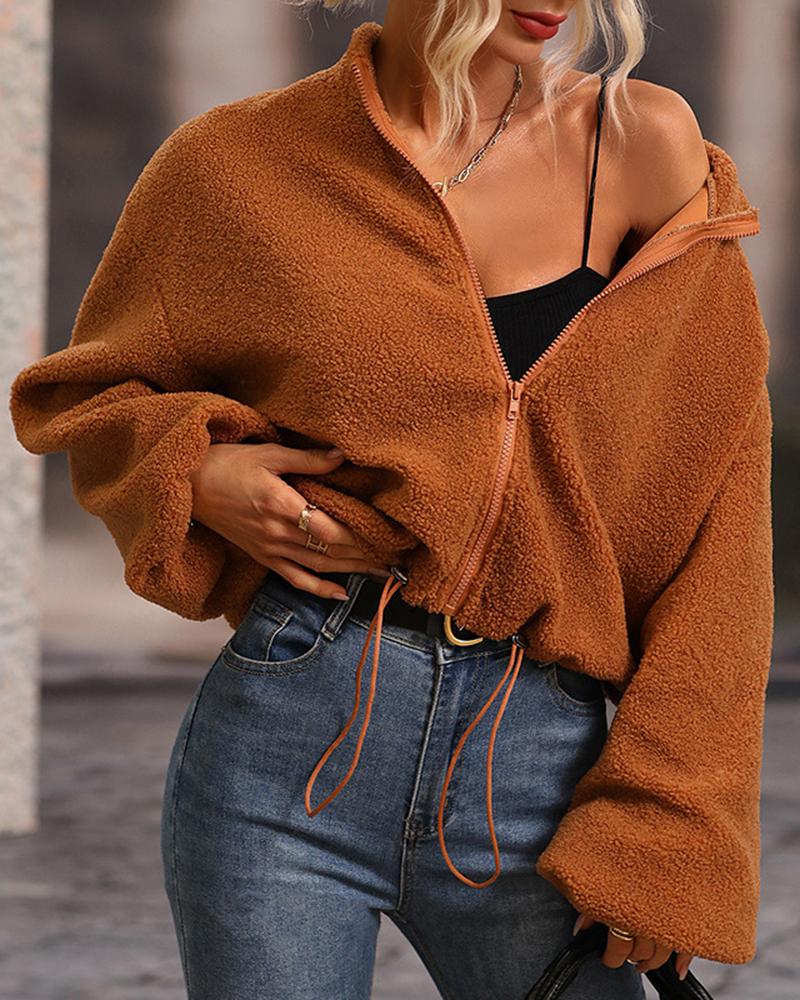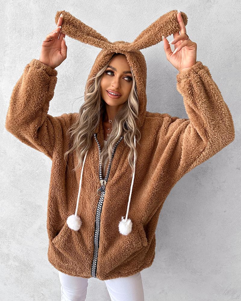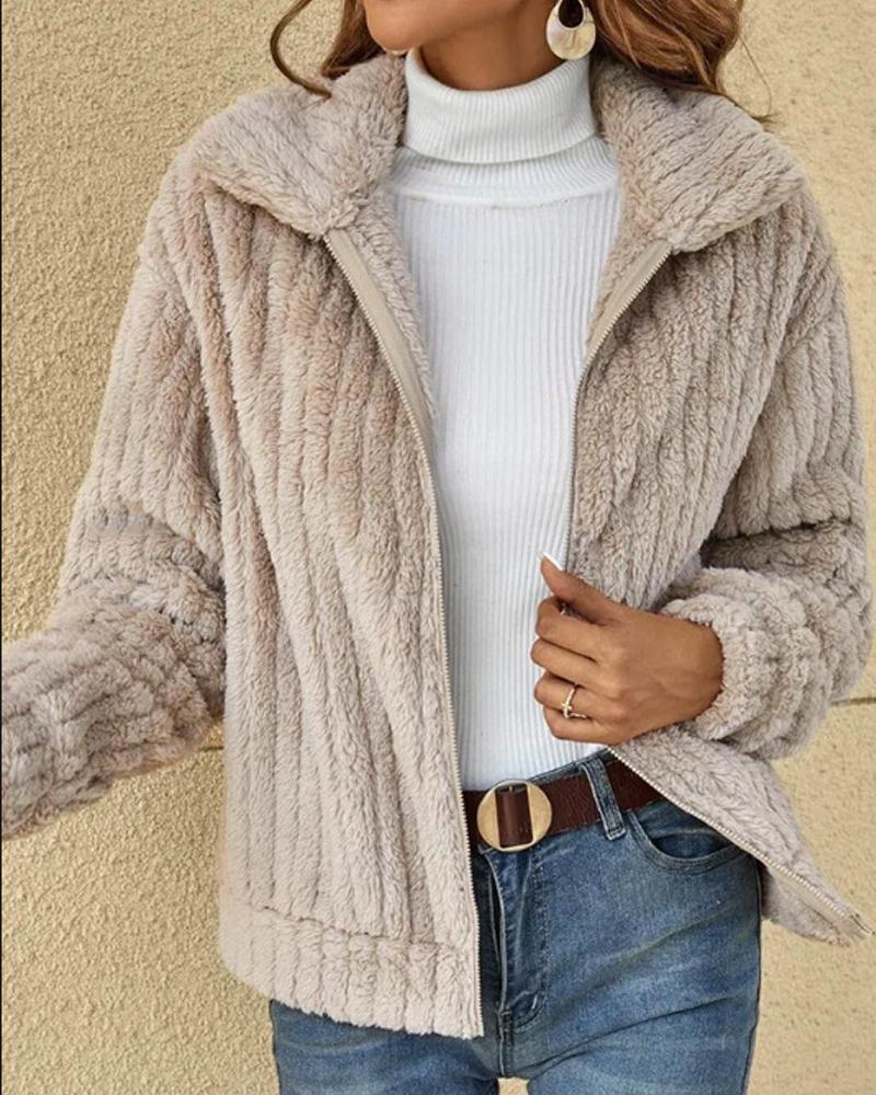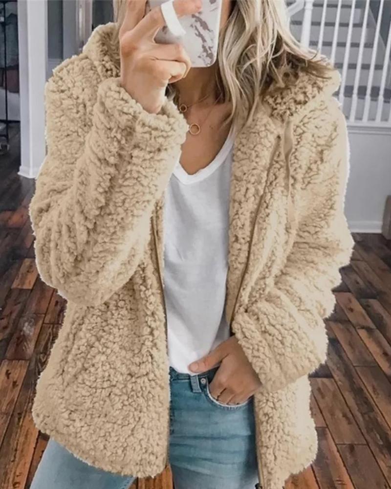 Long Sleeve Zip Front Fur Faux Fur Hooded Coat |