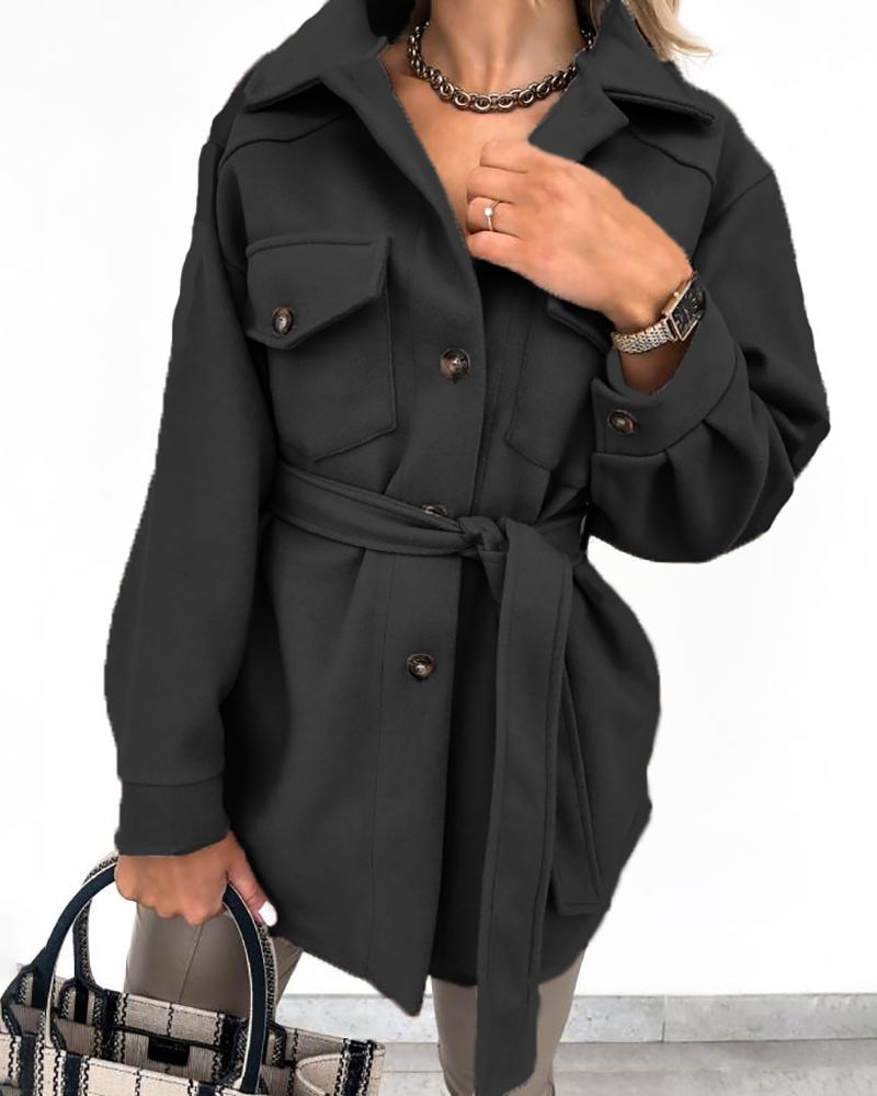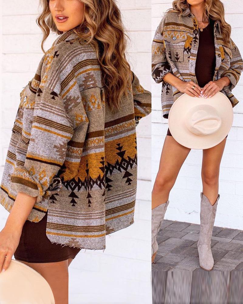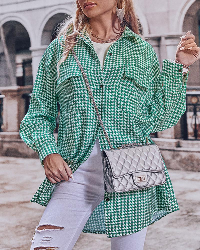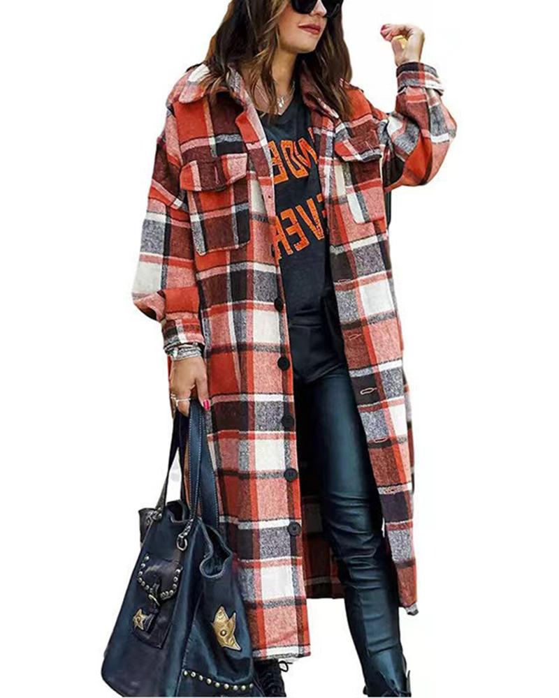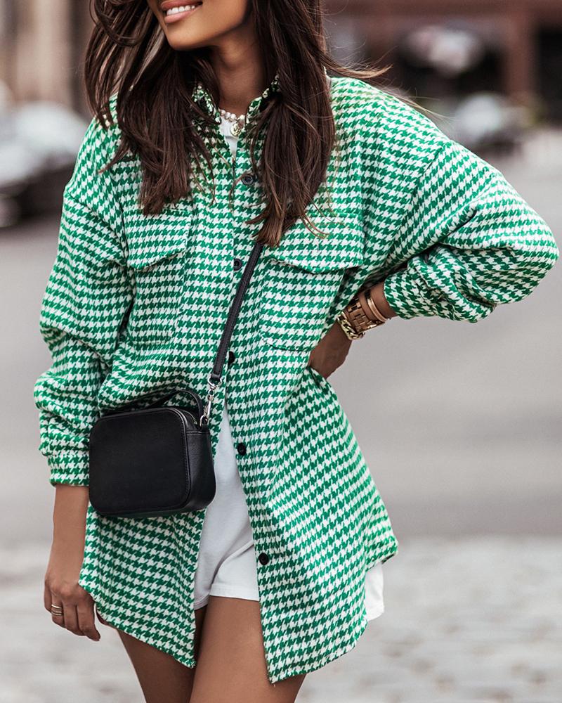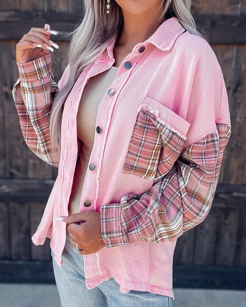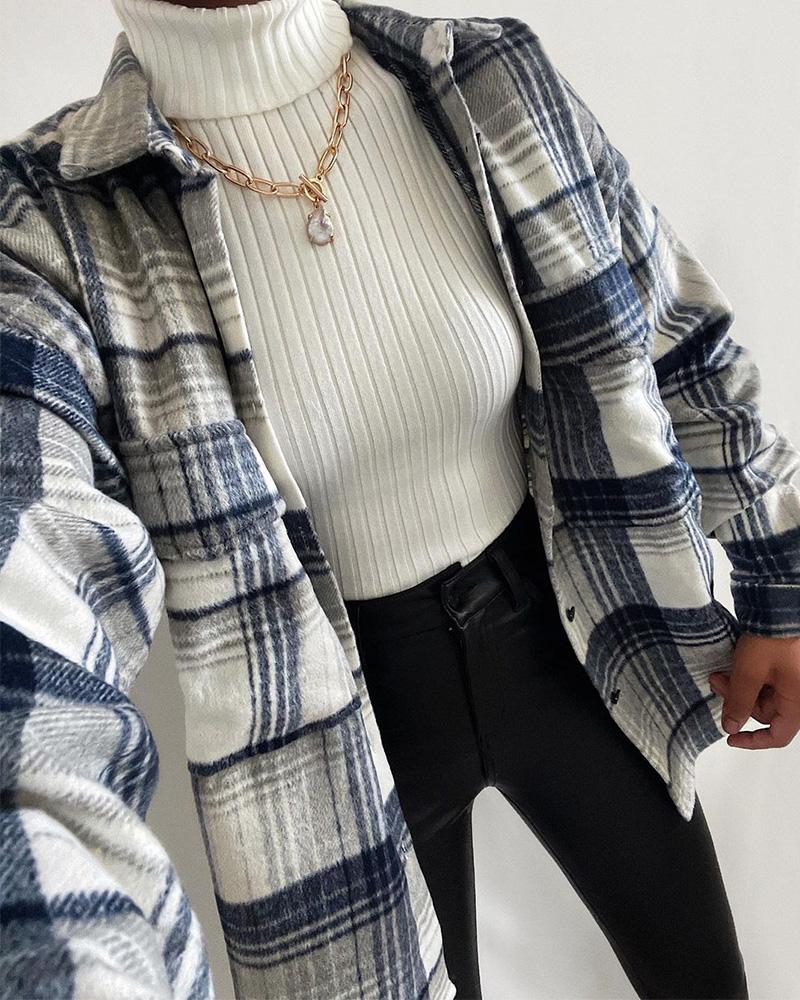 Plaid Print Button Front Long Sleeve Shacket Casual Turn-down Collar Pocket Design Coat |