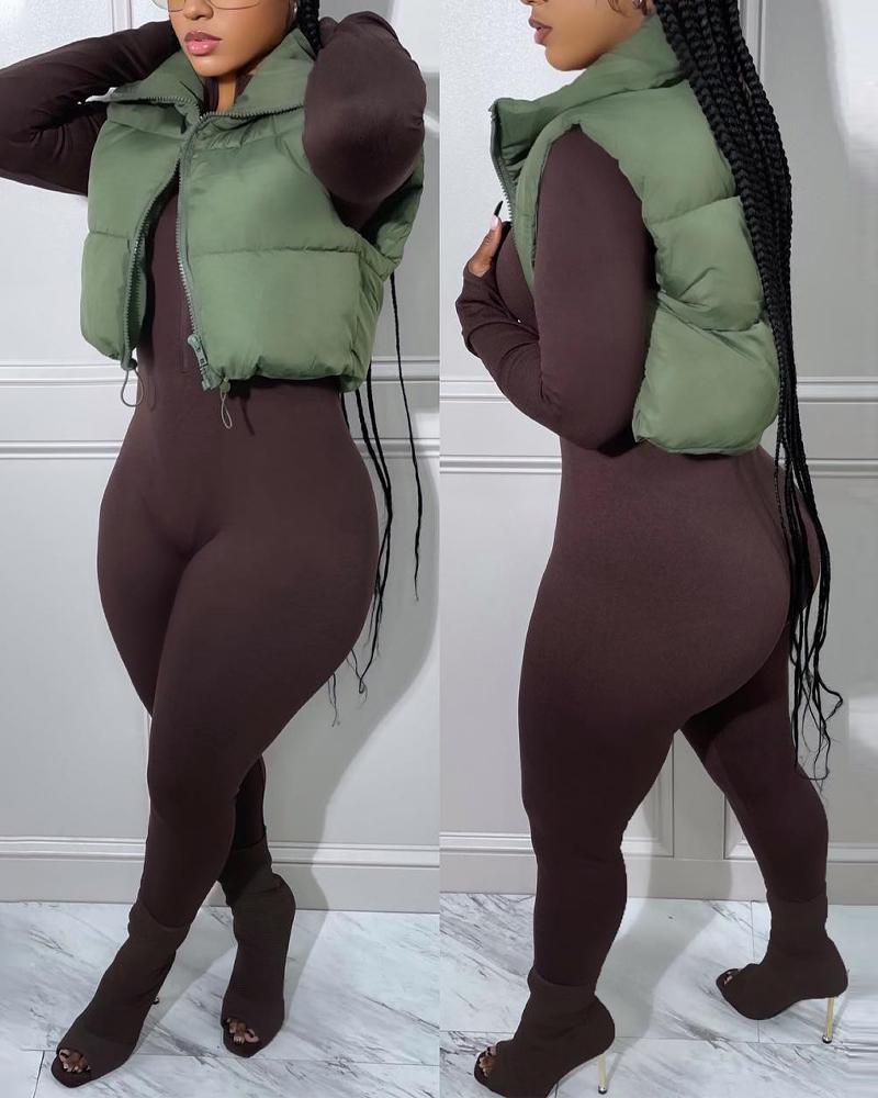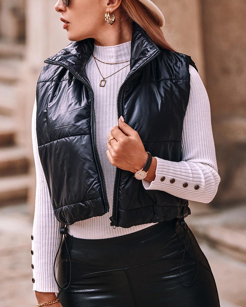 Plain Zip Up Quilted Gilet Puffer Jacket |