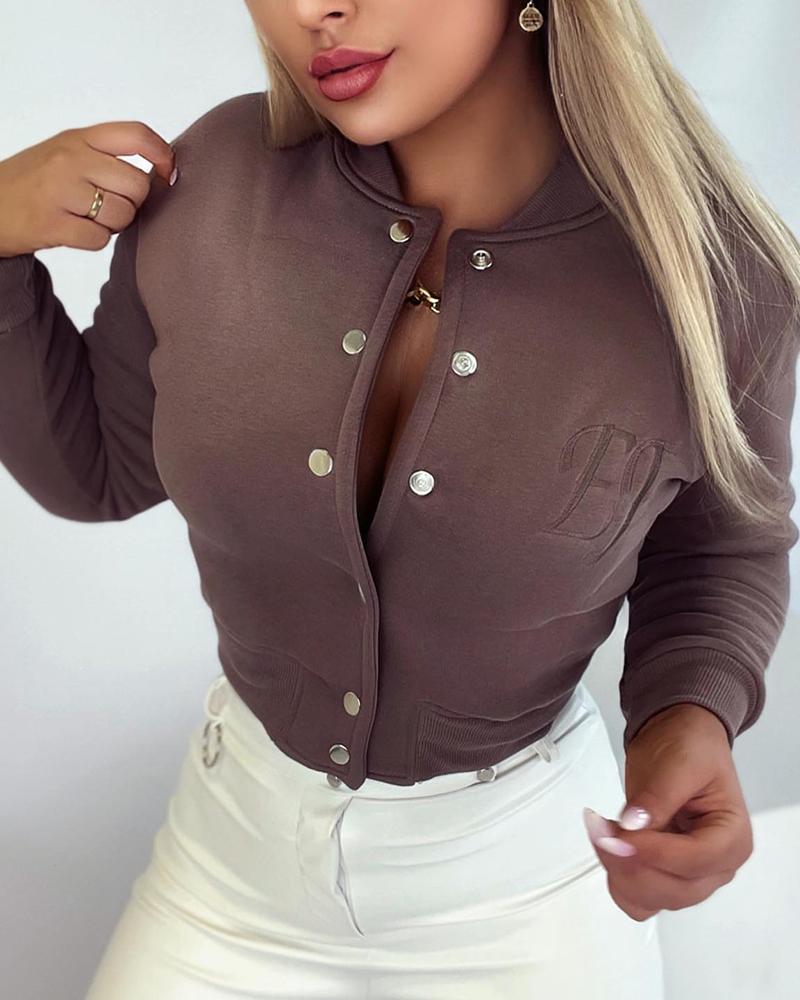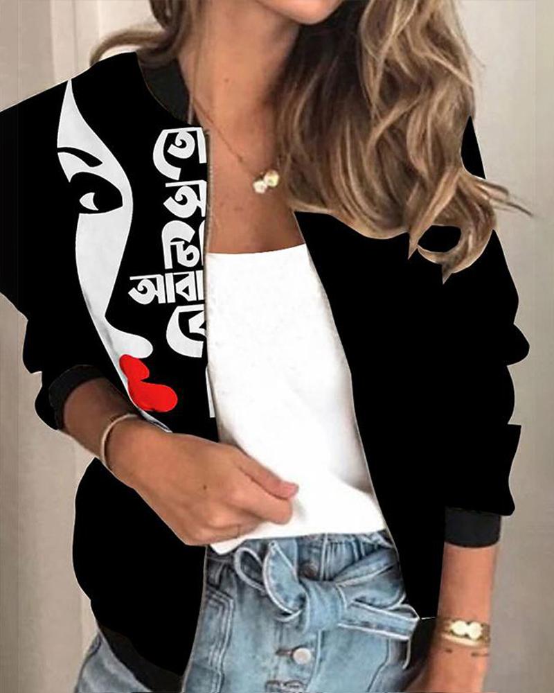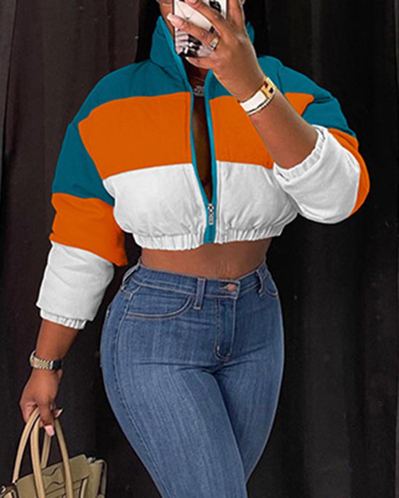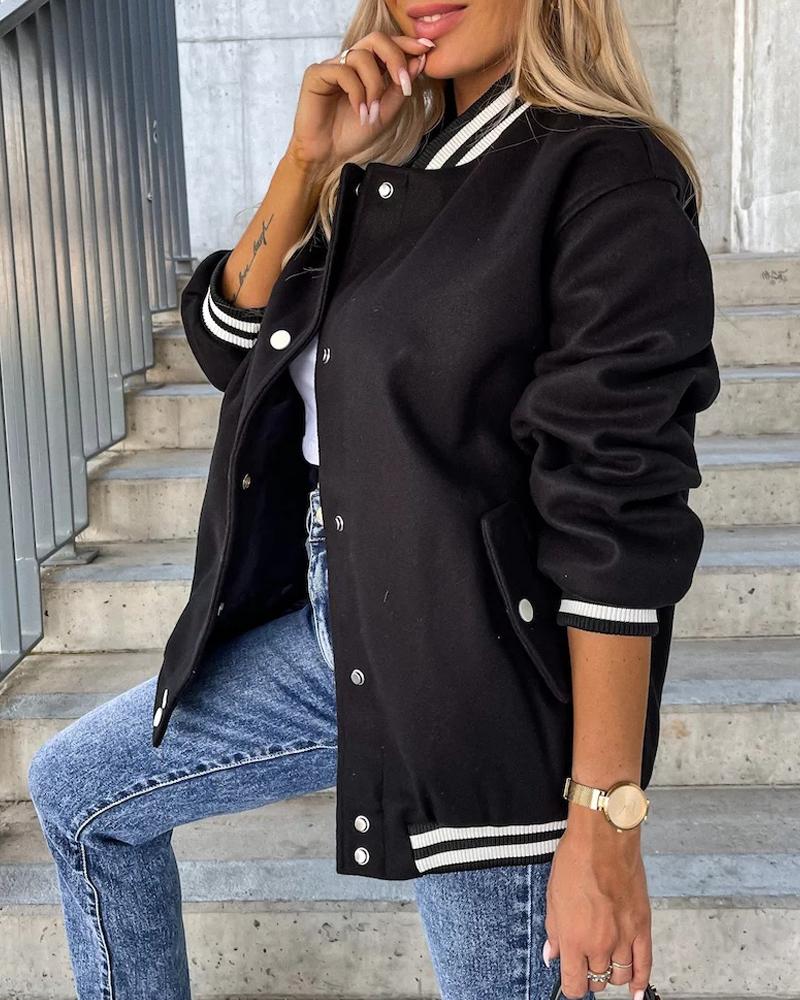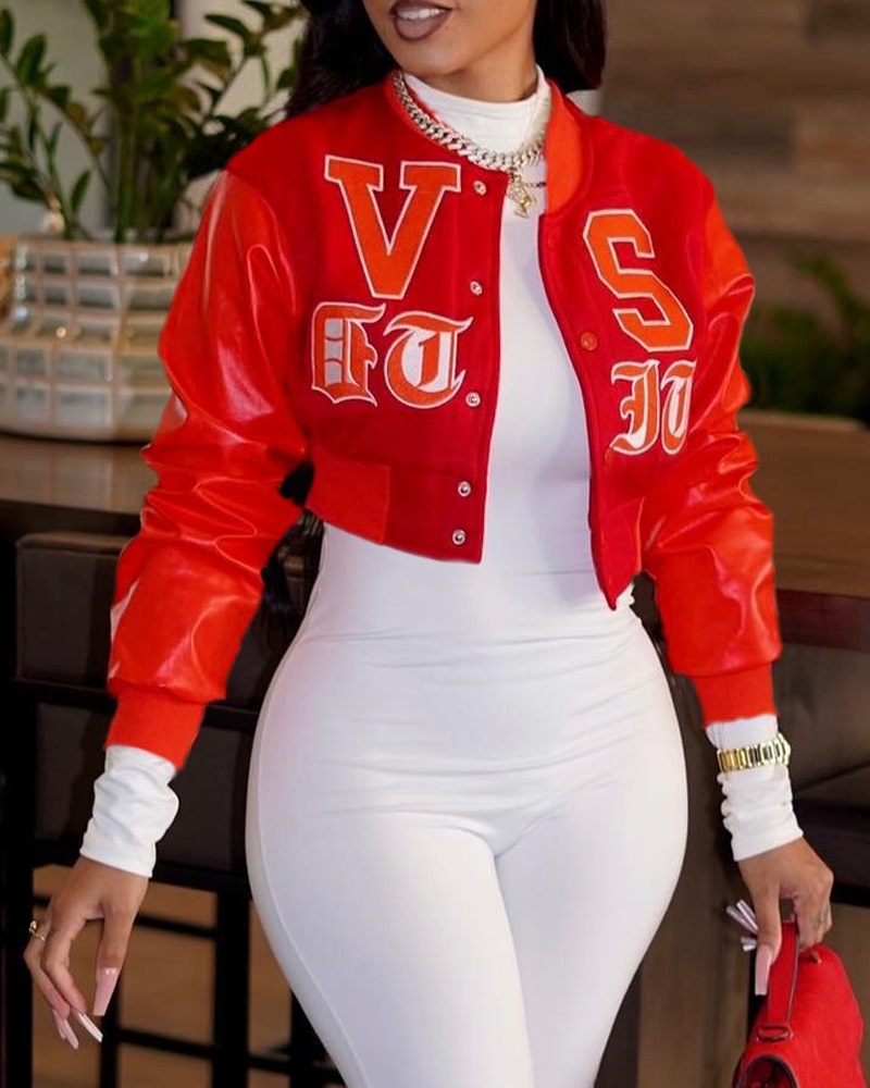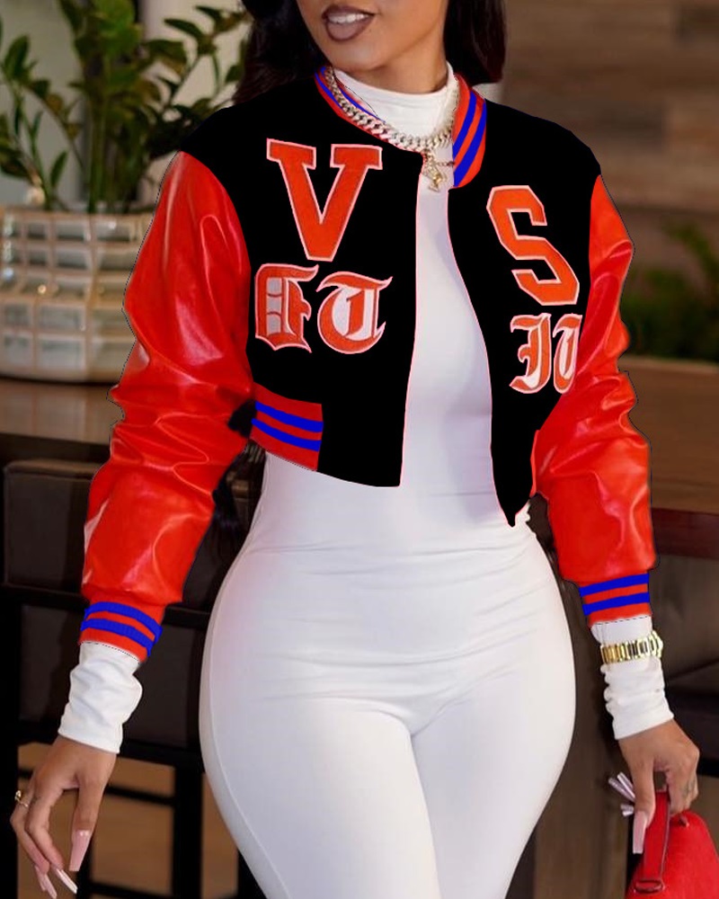 Colorblock Letter Patch Long Sleeve Bomber Jacket |