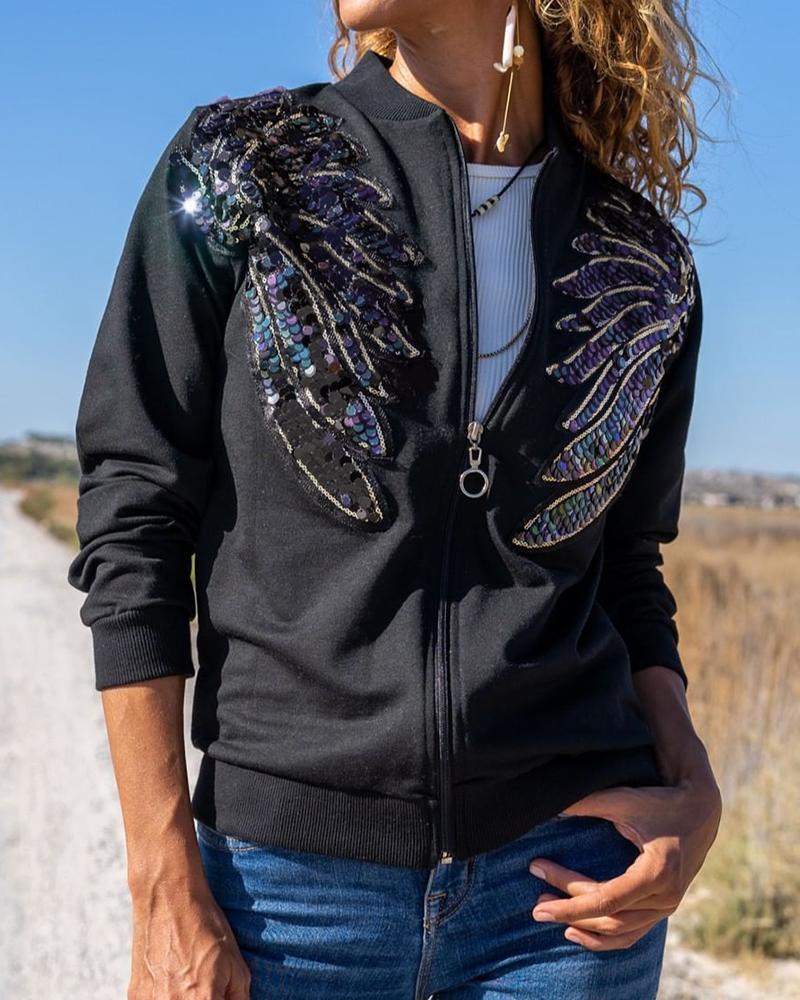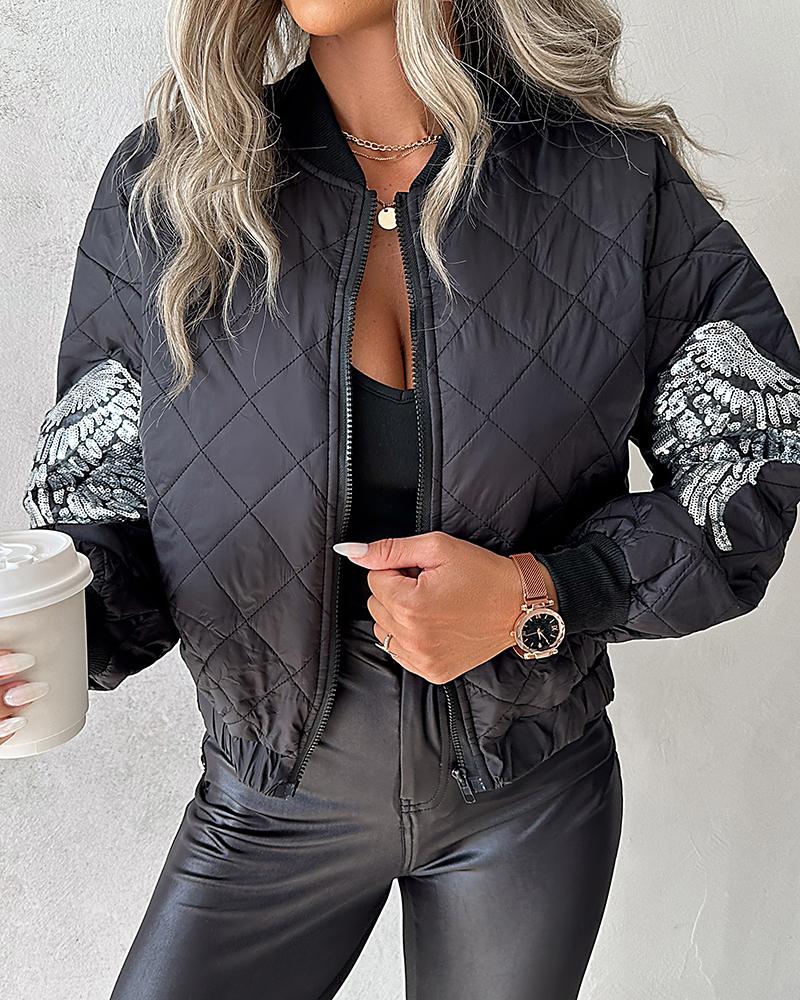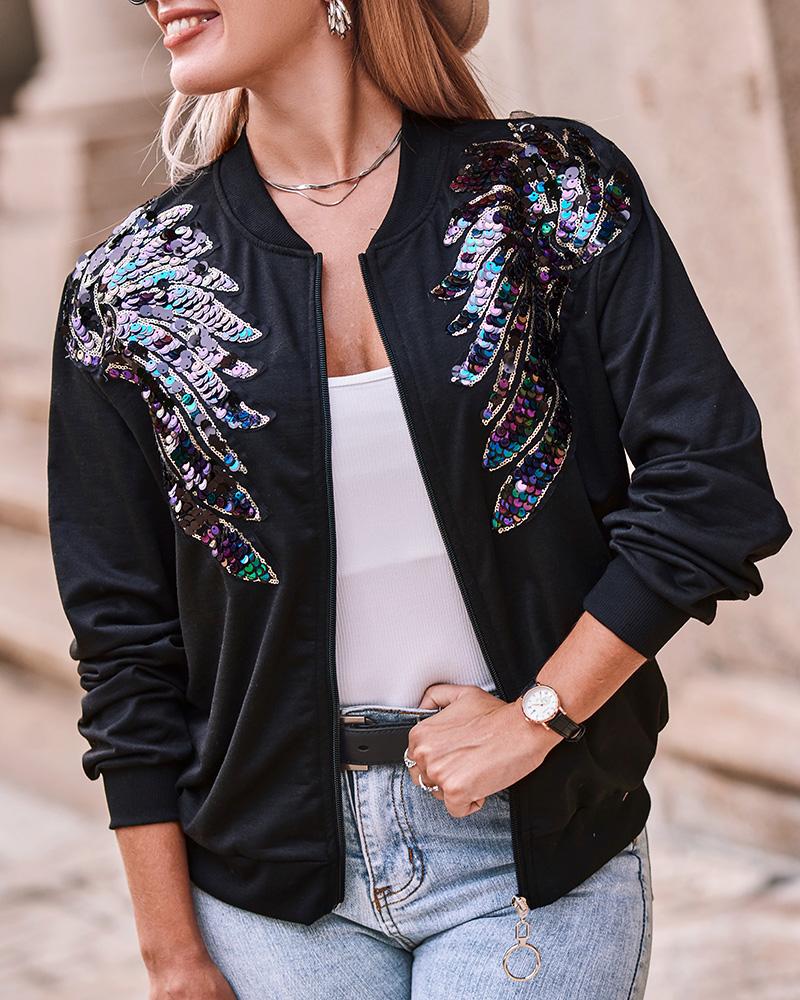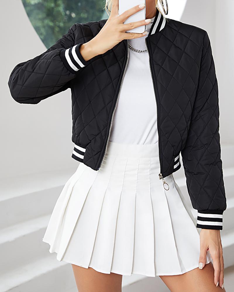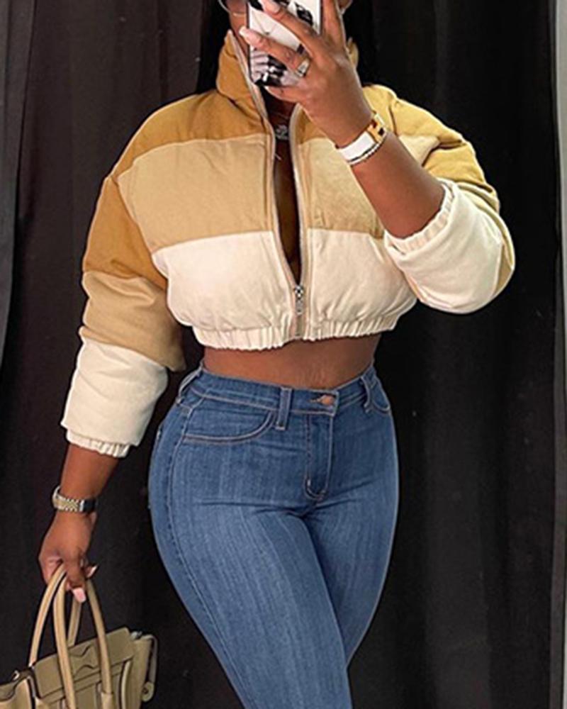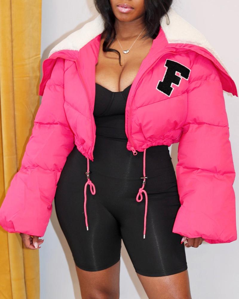 Colorblock Letter Patch Long Sleeve Bomber Jacket |
