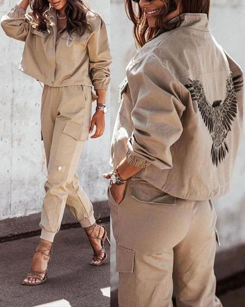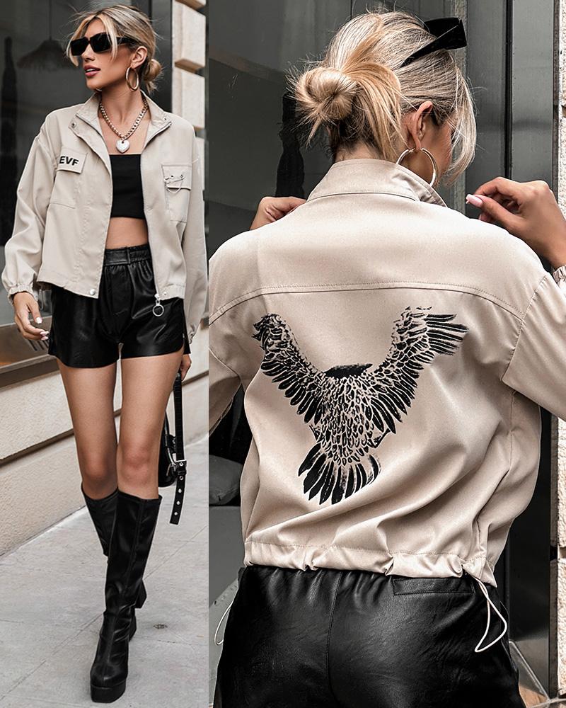 Letter Patch Ripped Raw Hem Crop Denim Coat |