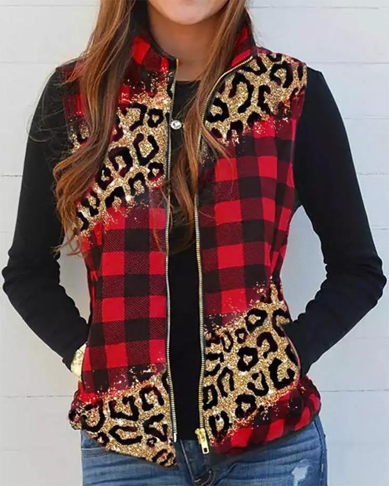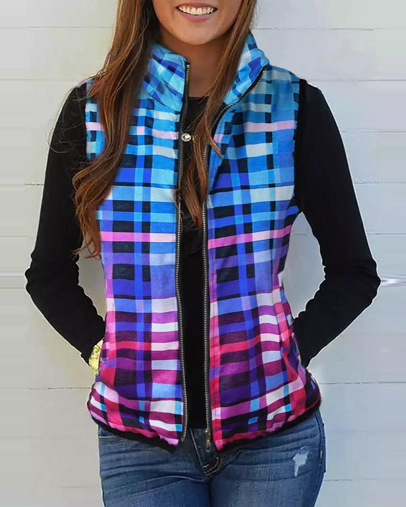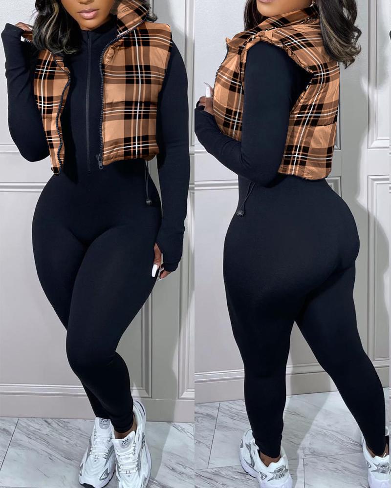 Plaid Print Zip Up Gilet Puffer Jacket |